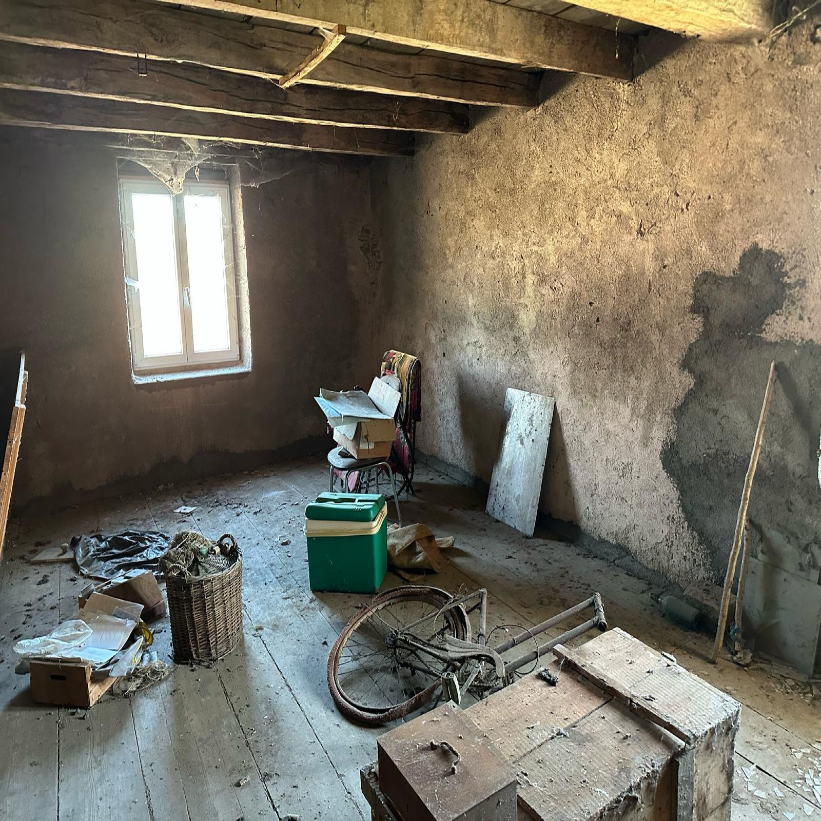 Solène est heureuse de vous présenter cette charmante ferme à rénover, sur son terrain de 2582 m2, elle comprend :