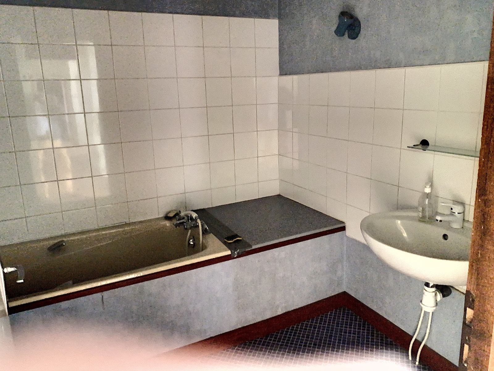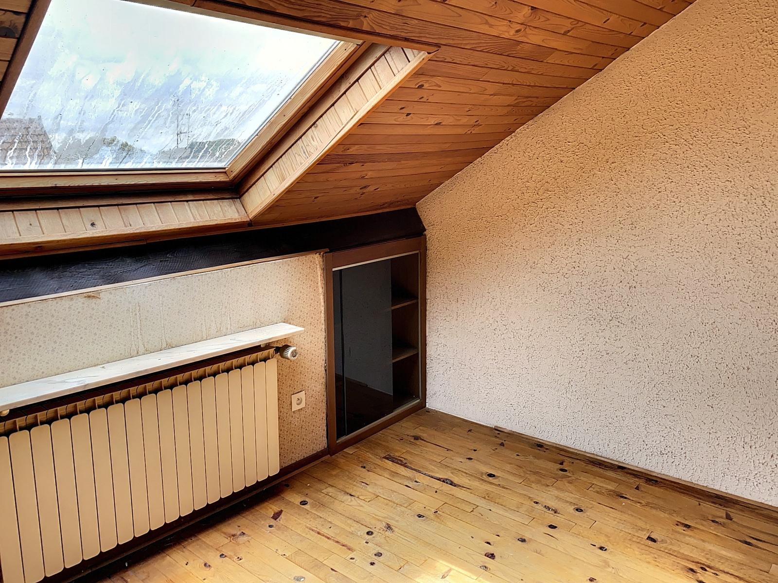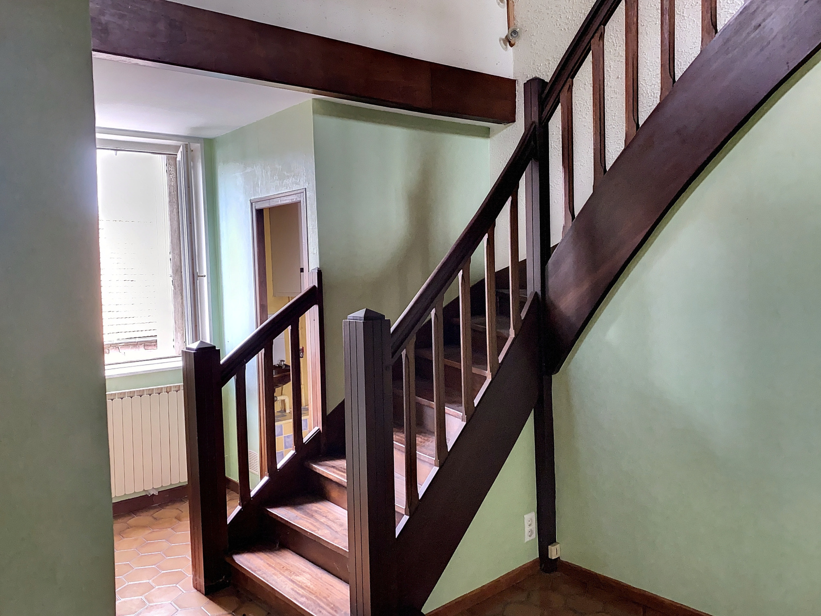 Au 1er niveau : une entrée avec placard, une cuisine semi-équipée, un salon/salle à manger, un wc avec lave-mains, 2 chambres, une salle de bains.