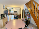 Une entrée, cuisine ouverte sur salon / séjour avec accès terrasse couverte. A l'étage : 2 chambres, salle de bains/wc.