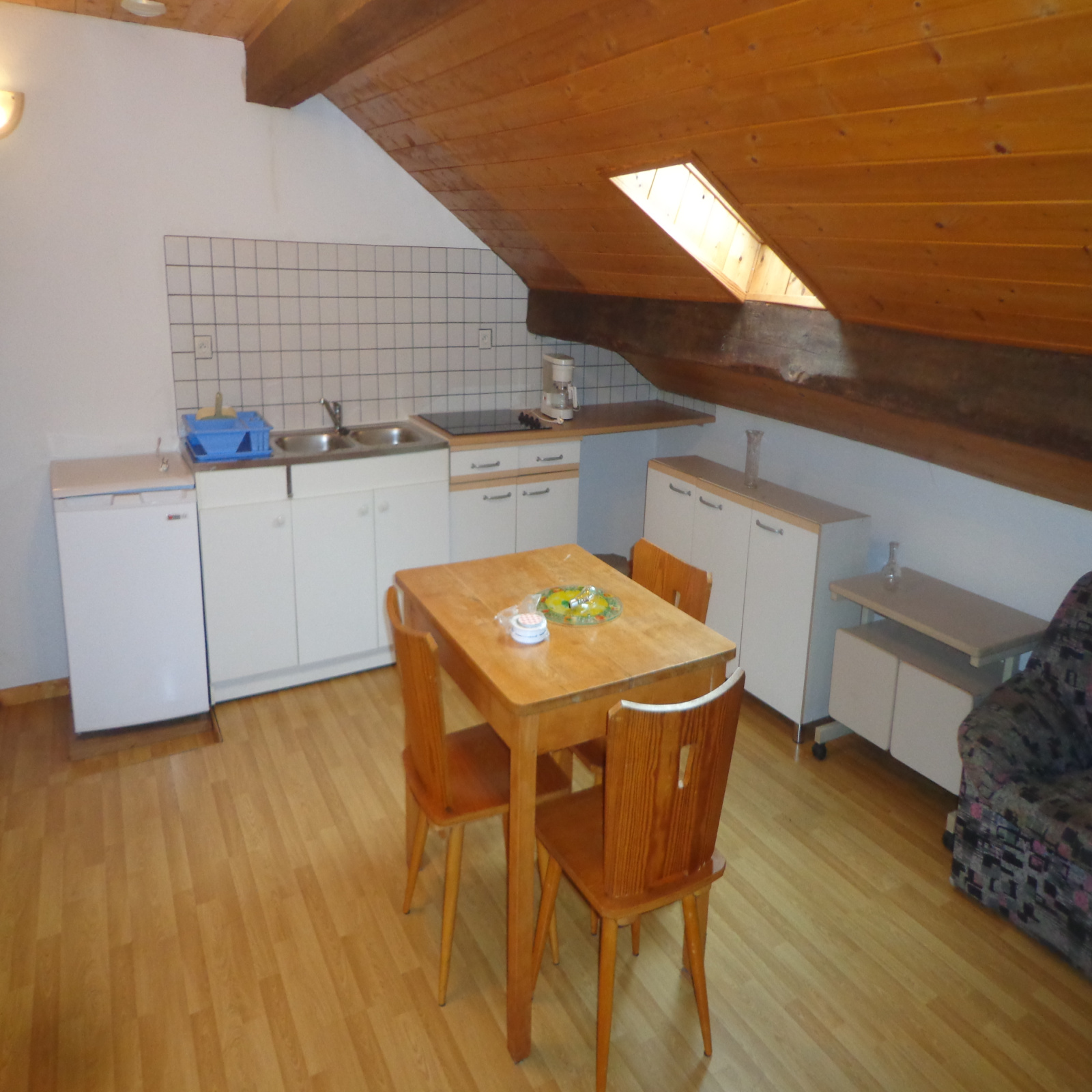 Le logement du 2ème étage (libre) entrée sur palier du 1er étage comprend une pièce avec évier et plaque de cuisson (13 m² env), une chambre, salle d'eau avec wc.