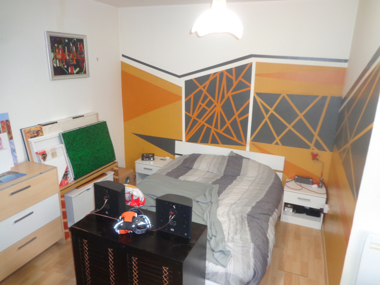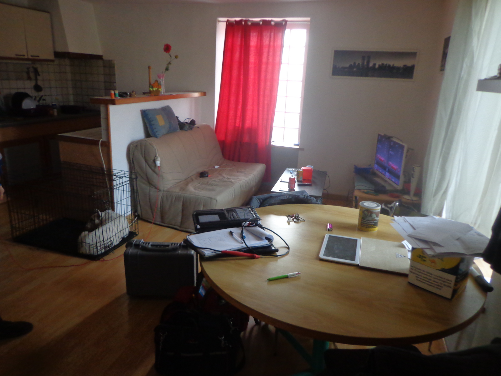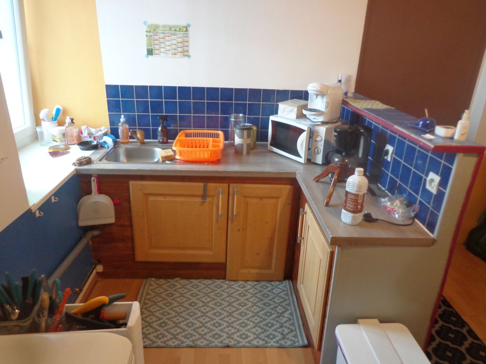 Le logement du rez-de-chaussée (loué) comprend une pièce de vie avec coin cuisine (12.4 m² env), une chambre (14 m² env), salle d'eau avec wc.
