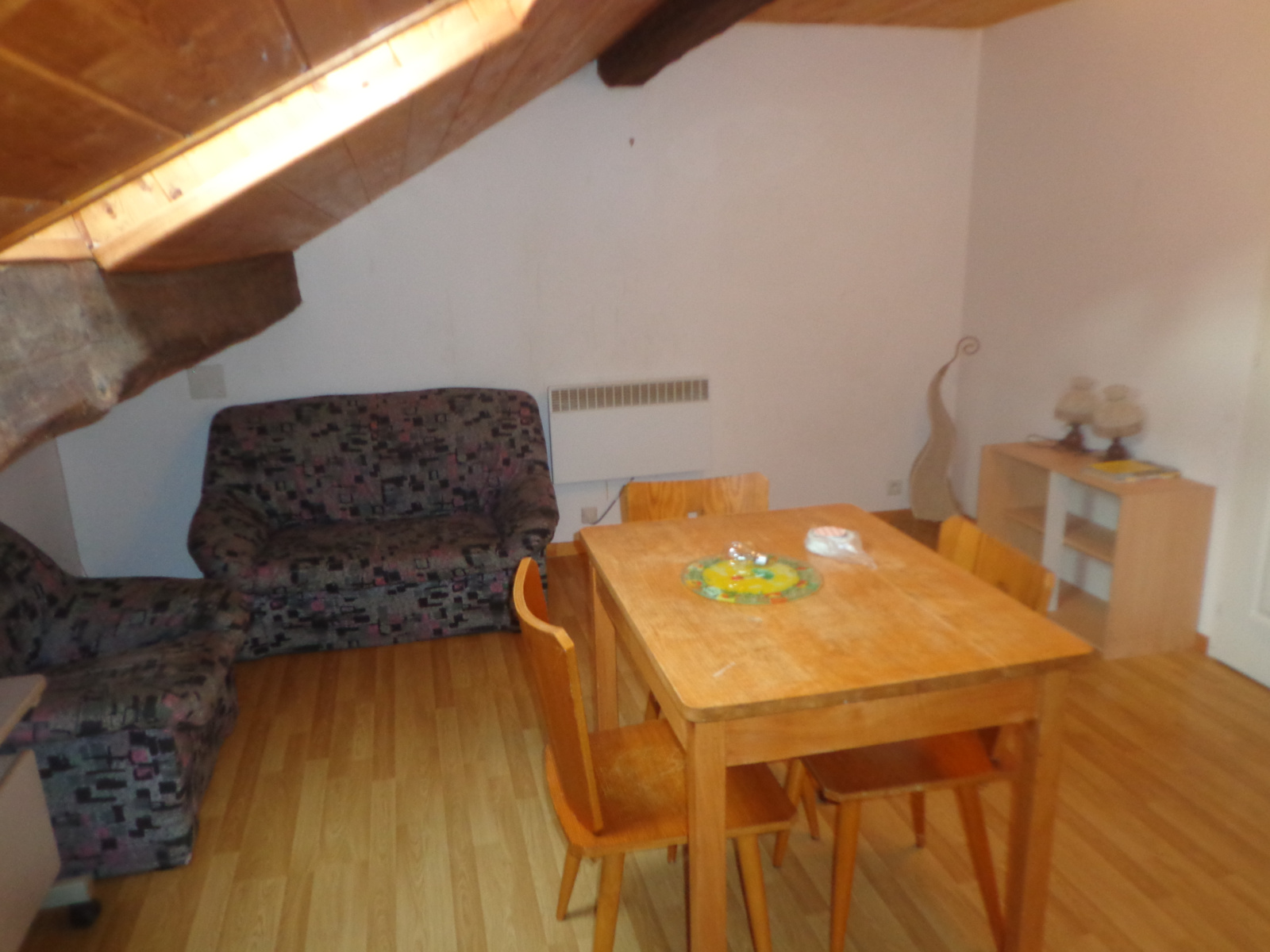 Le logement du 1er étage (loué) comprend un séjour avec coin cuisine (21 m² env), chambre (11 m² env), salle d'eau avec wc.
