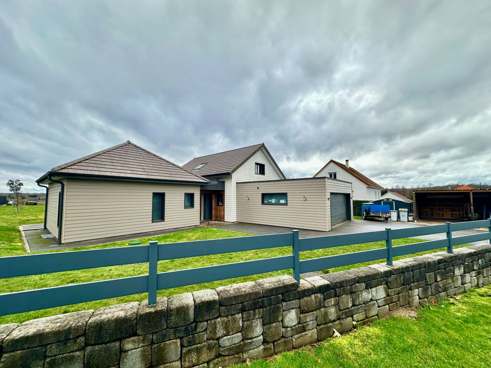 Chaufferie / buanderie (7 m2 env), garage une voiture (41 m2 env), carport 2 voitures, abri de jardin.