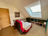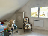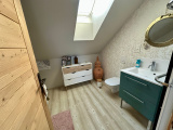 A l'étage : mezzanine/coin lecture (6 m2 env), 2 chambres (12 et 12 m2 env), salle de bains (4 m2 env avec baignoire balnéo et wc suspendu).