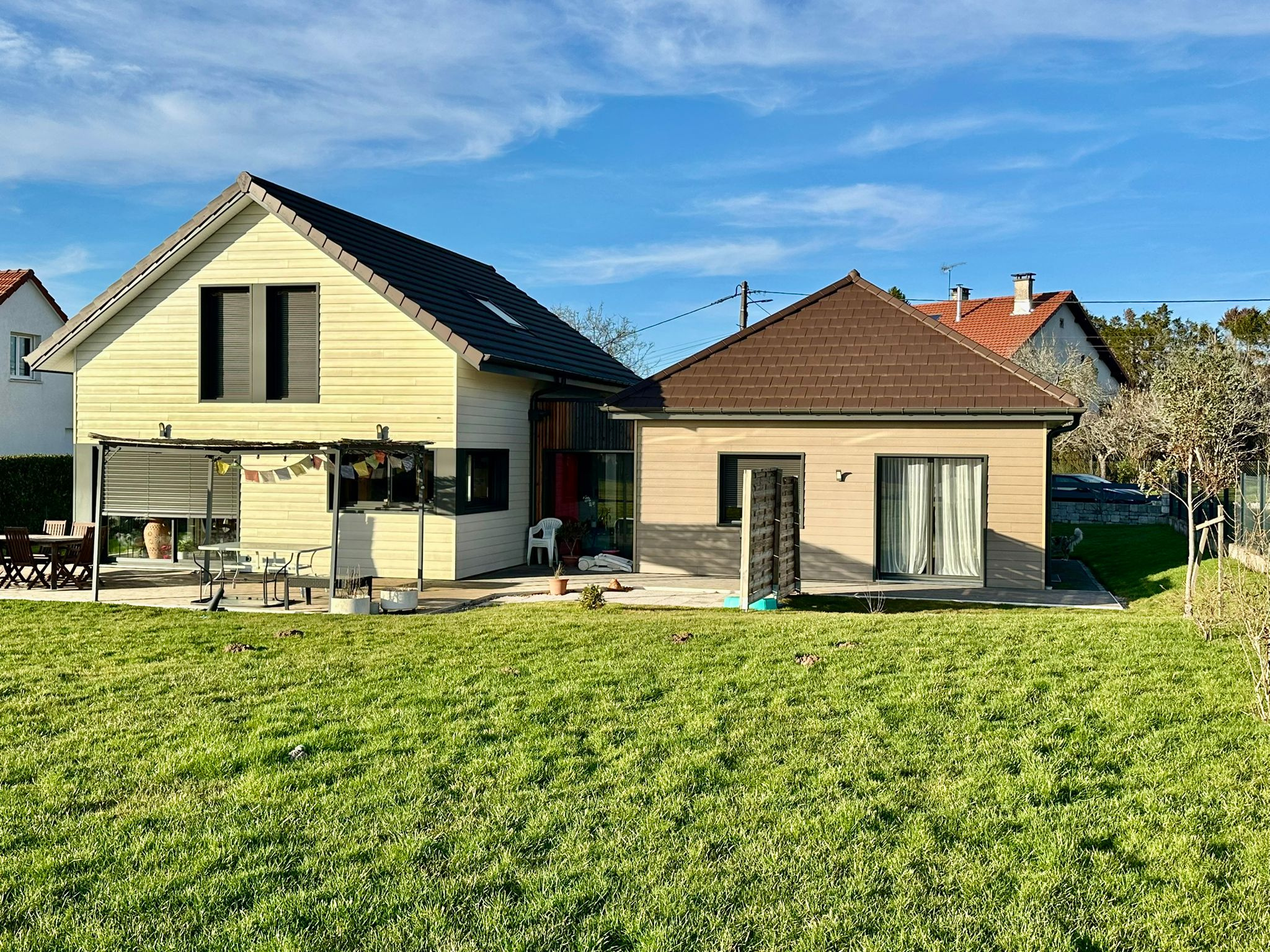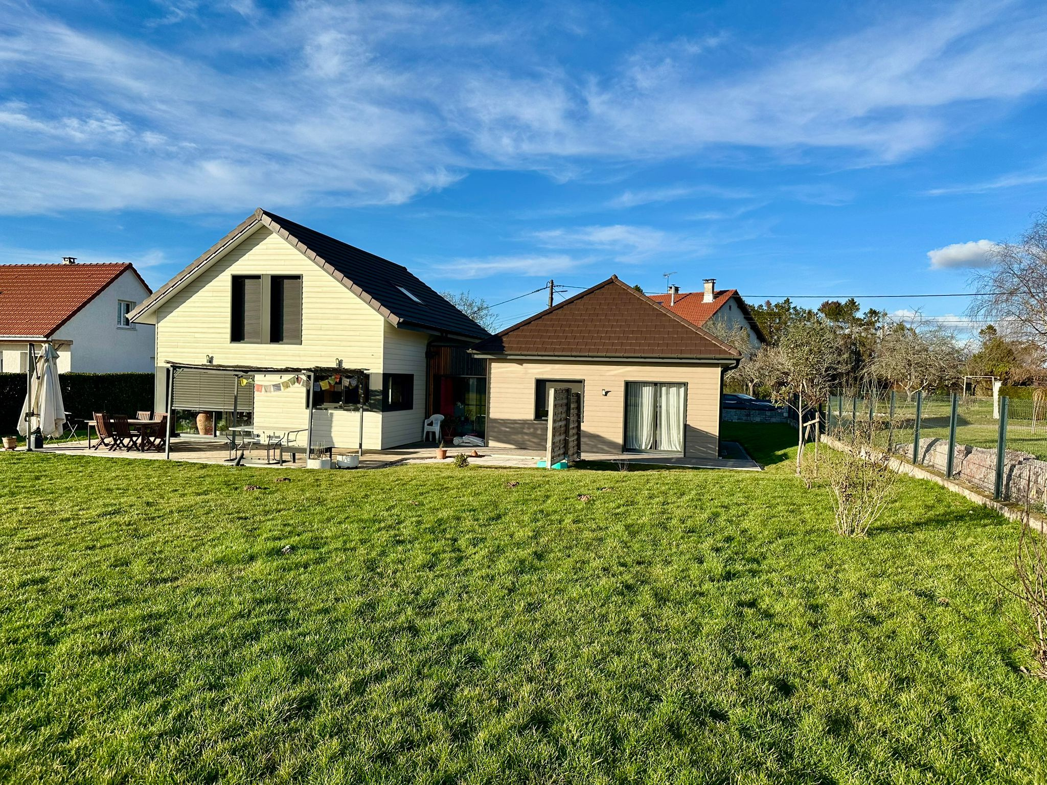 Aurélien est heureux de vous faire découvrir cette jolie maison de 2020, ossature bois, sur son terrain clos de 1344 m2, elle comprend :