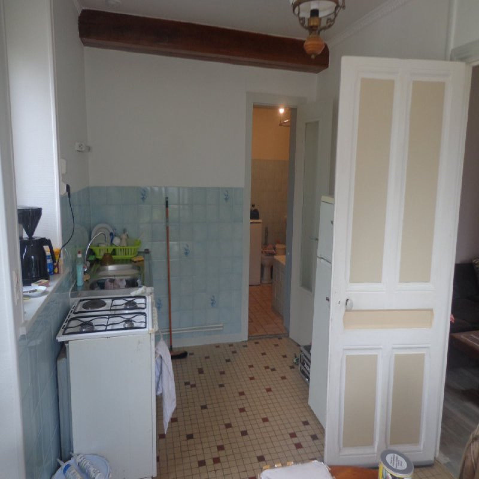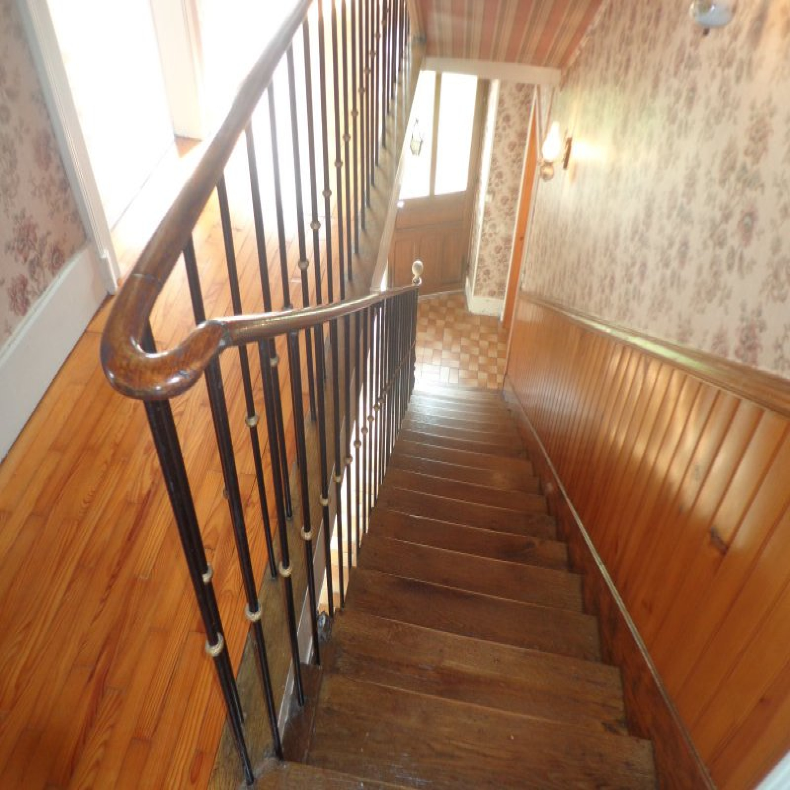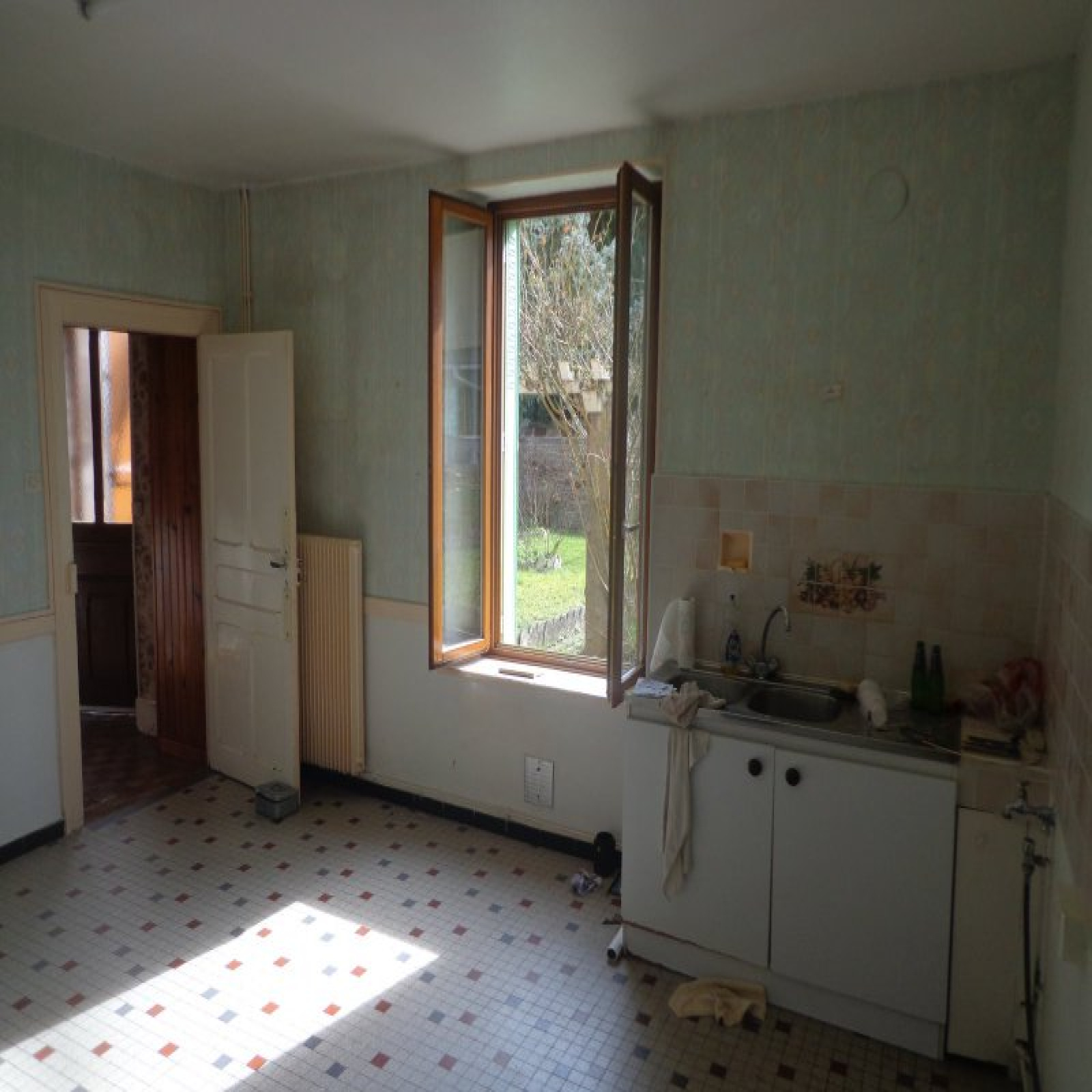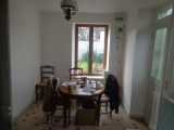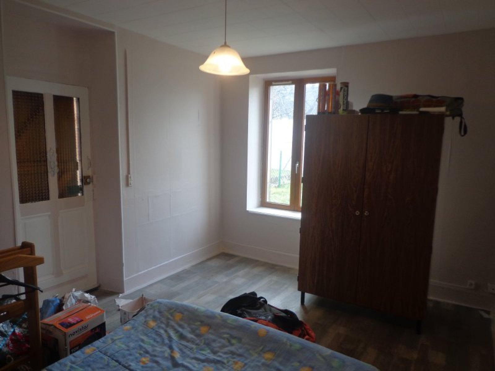 Un appartement (actuellement loué 300 euros/mois) comprenant une entrée sur véranda, cuisine, salon, une chambre, salle de bains avec wc. Garage. Chauffage : poêle à bois.