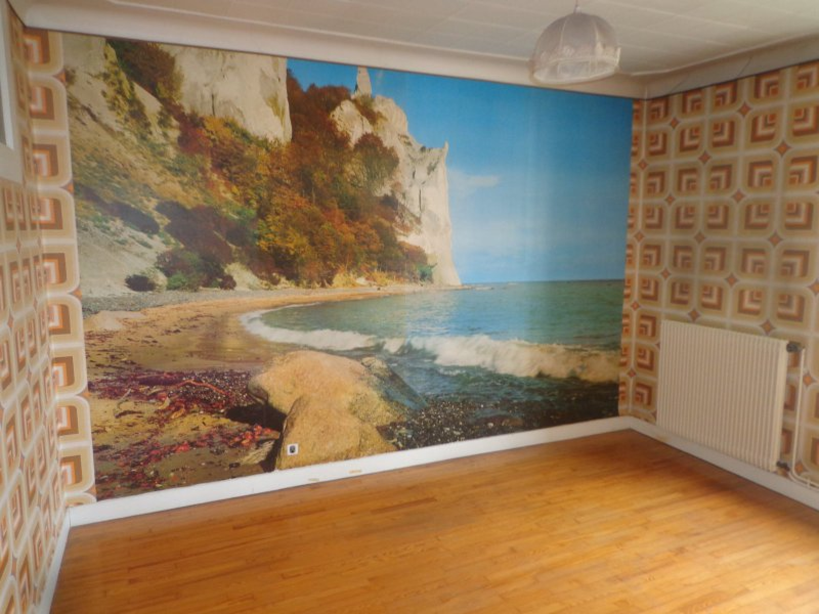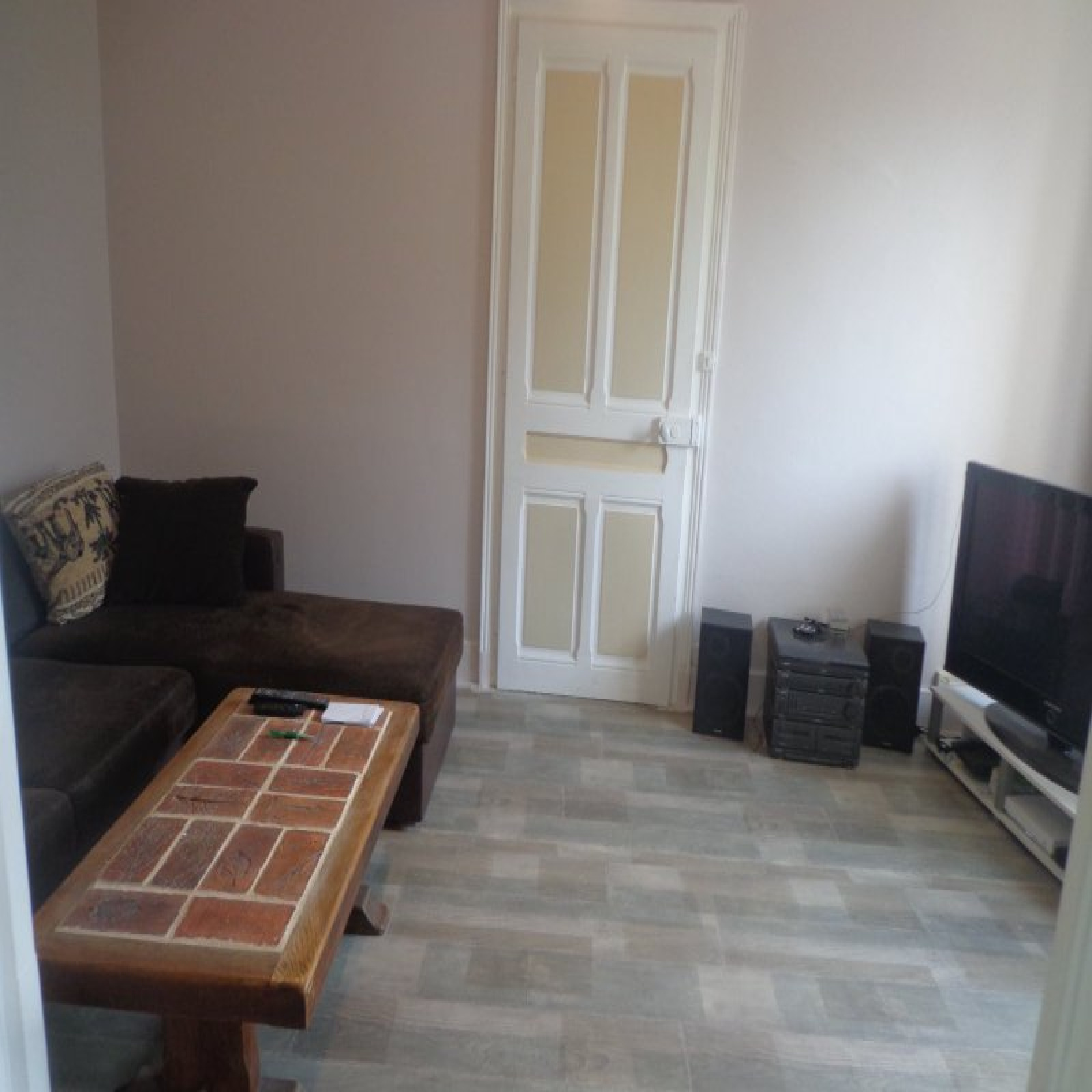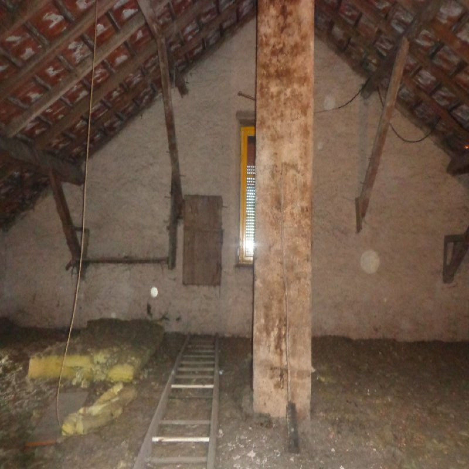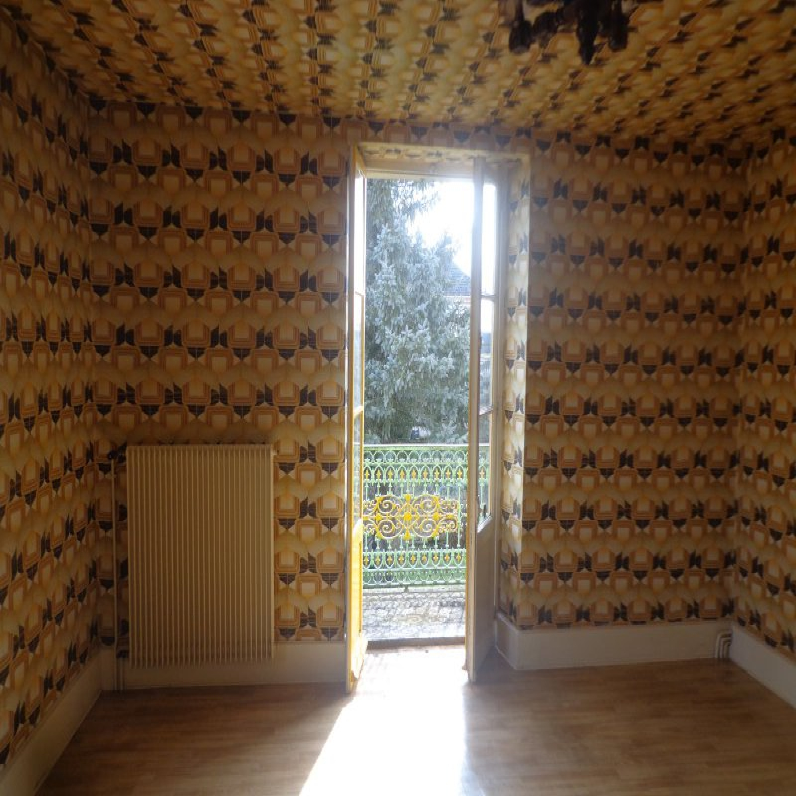 Un appartement (actuellement loué 300 euros/mois) comprenant une entrée sur véranda, cuisine, salon, une chambre, salle de bains avec wc. Garage. Chauffage : poêle à bois.
