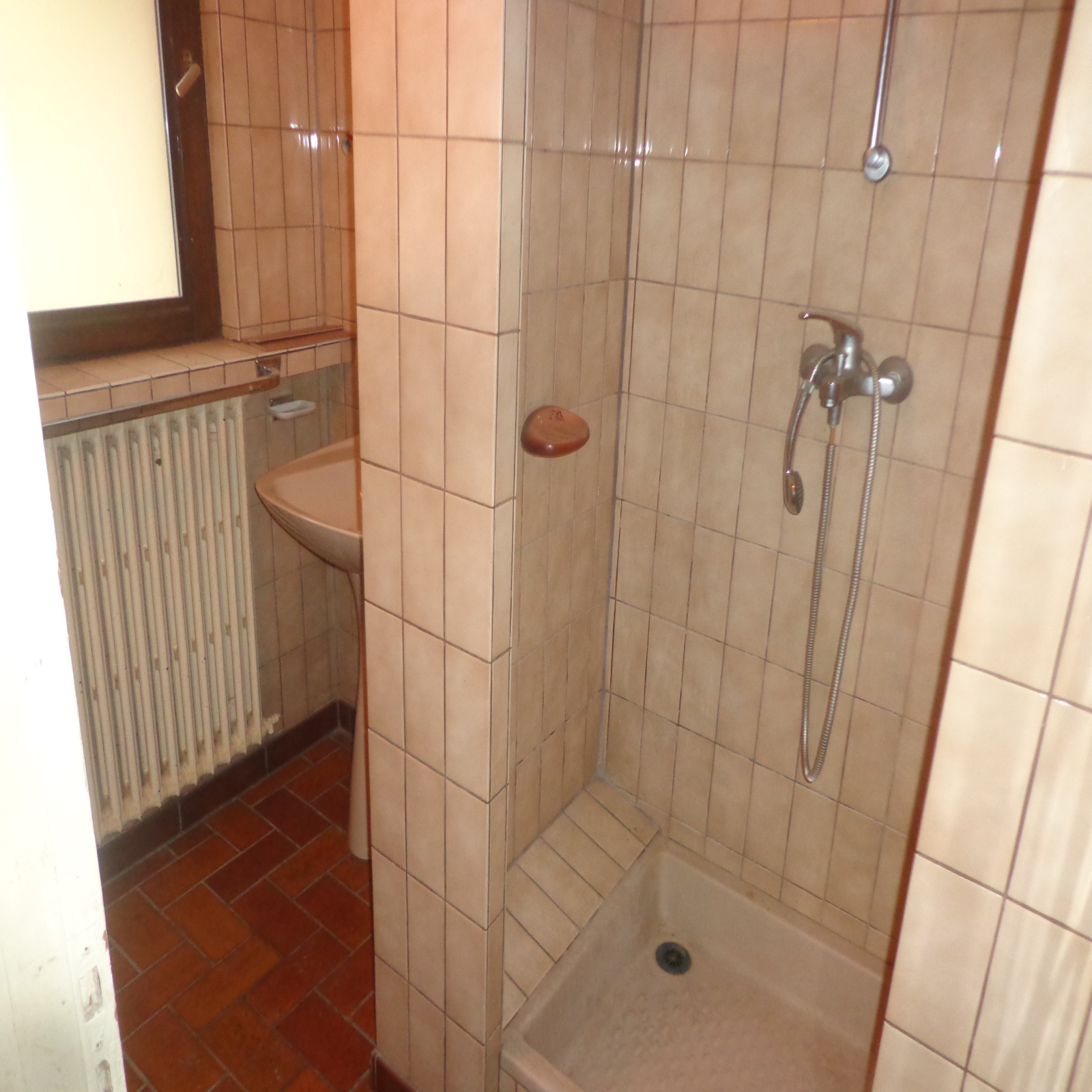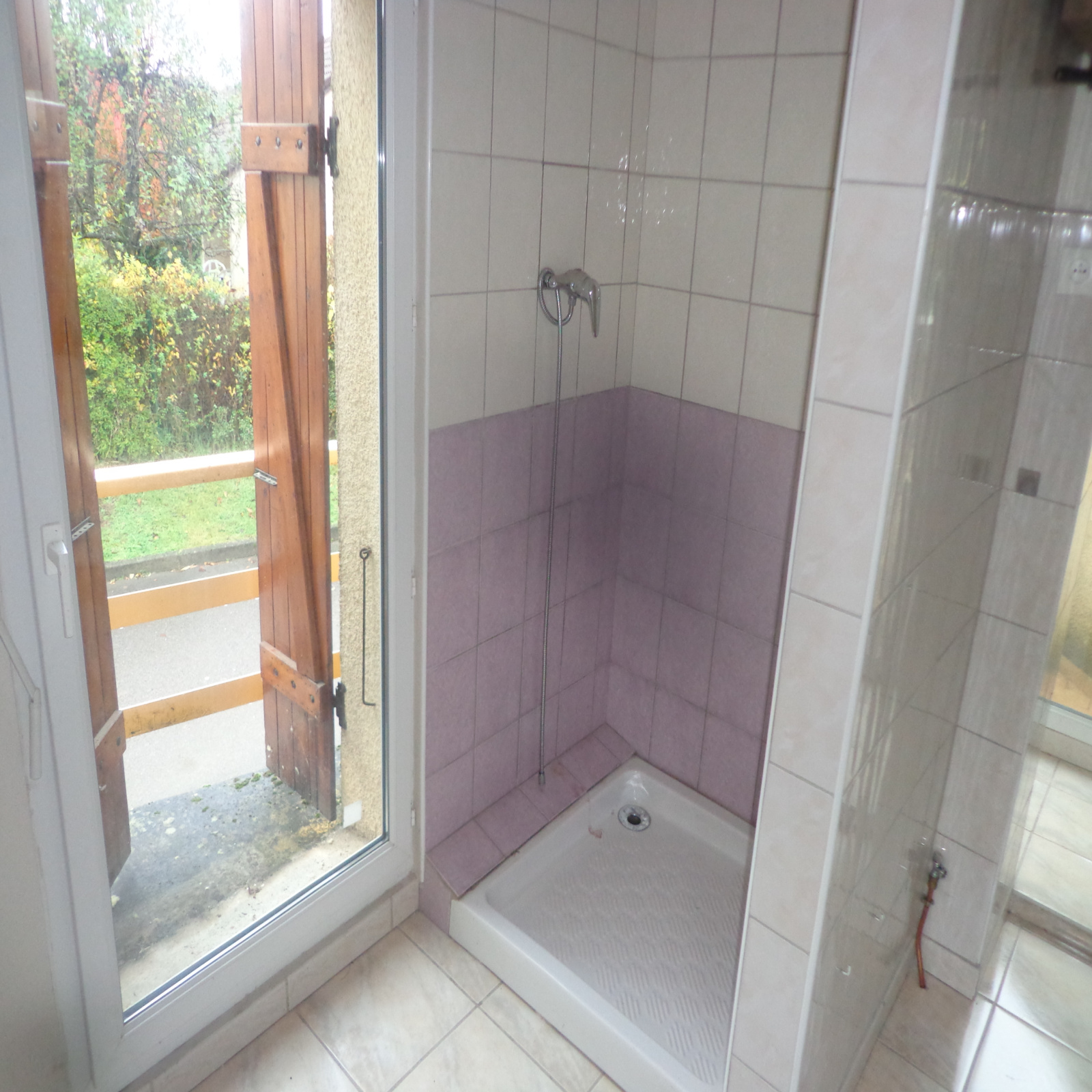 Le 2ème logement une pièce (14 m² env) avec kitchenette, douche et wc, petit balcon.