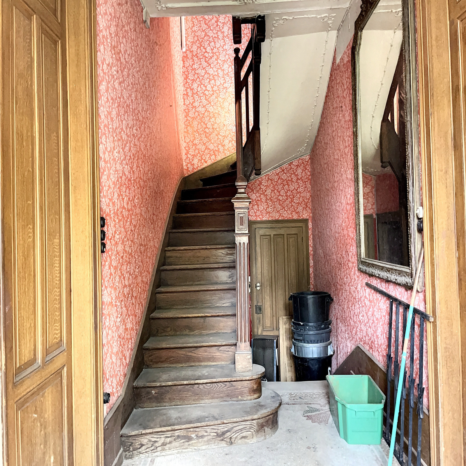 Au rez-de-chaussée : entrée sur escalier (6 m2), salle à manger (27 m2 env), salon (27 m2 env).