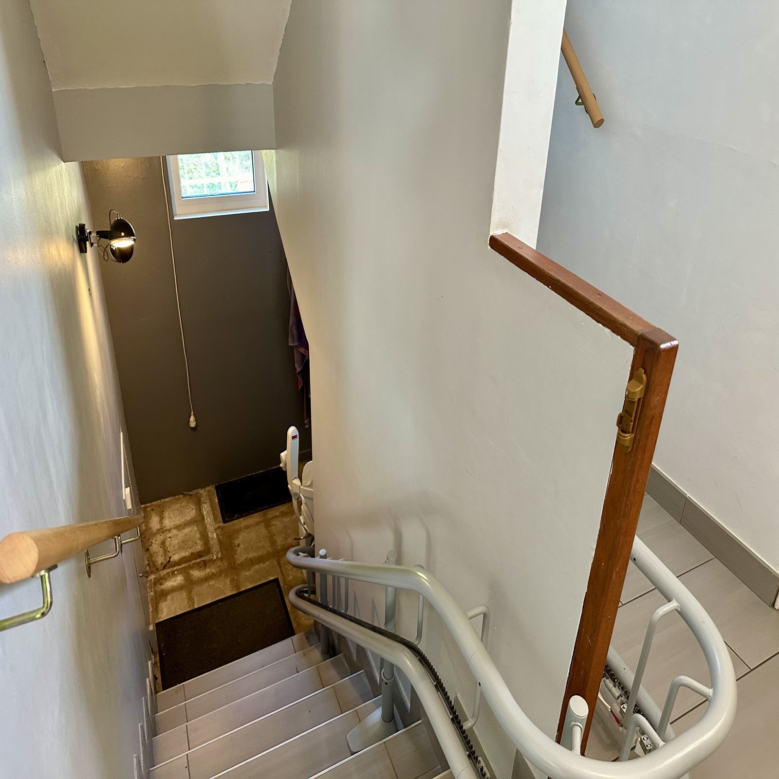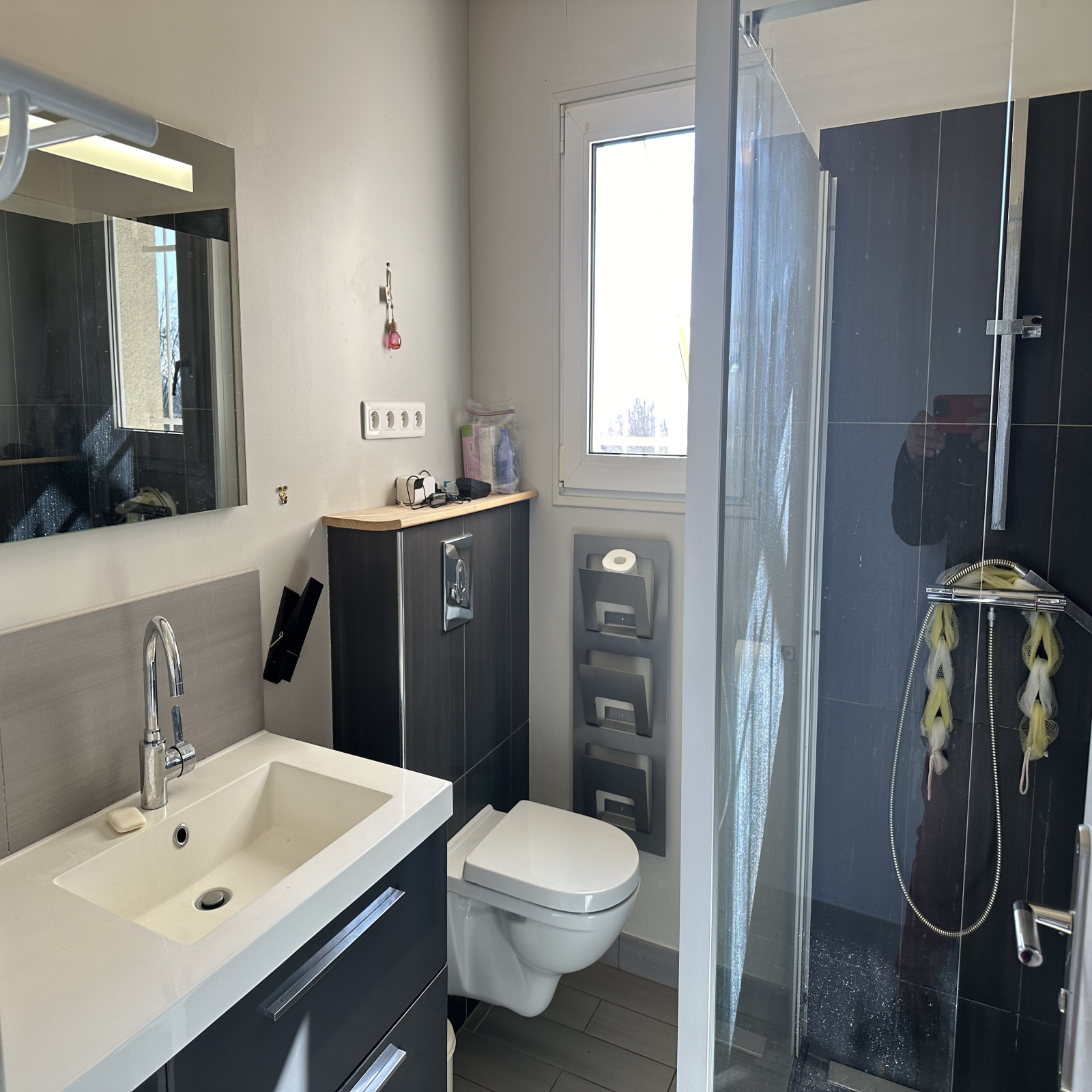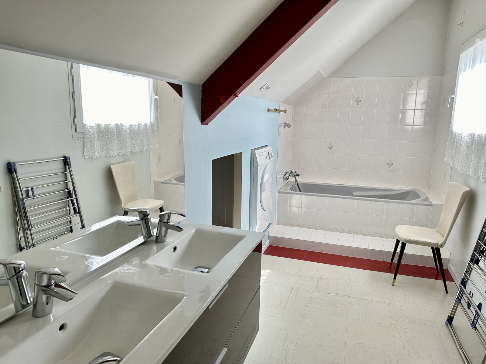 En demi-niveau : salle de bains/ buanderie (8 m2 env).