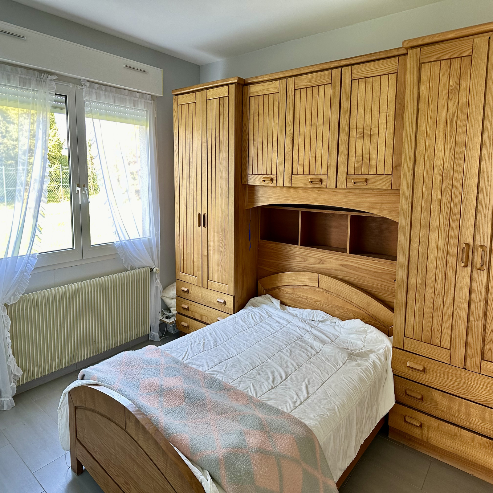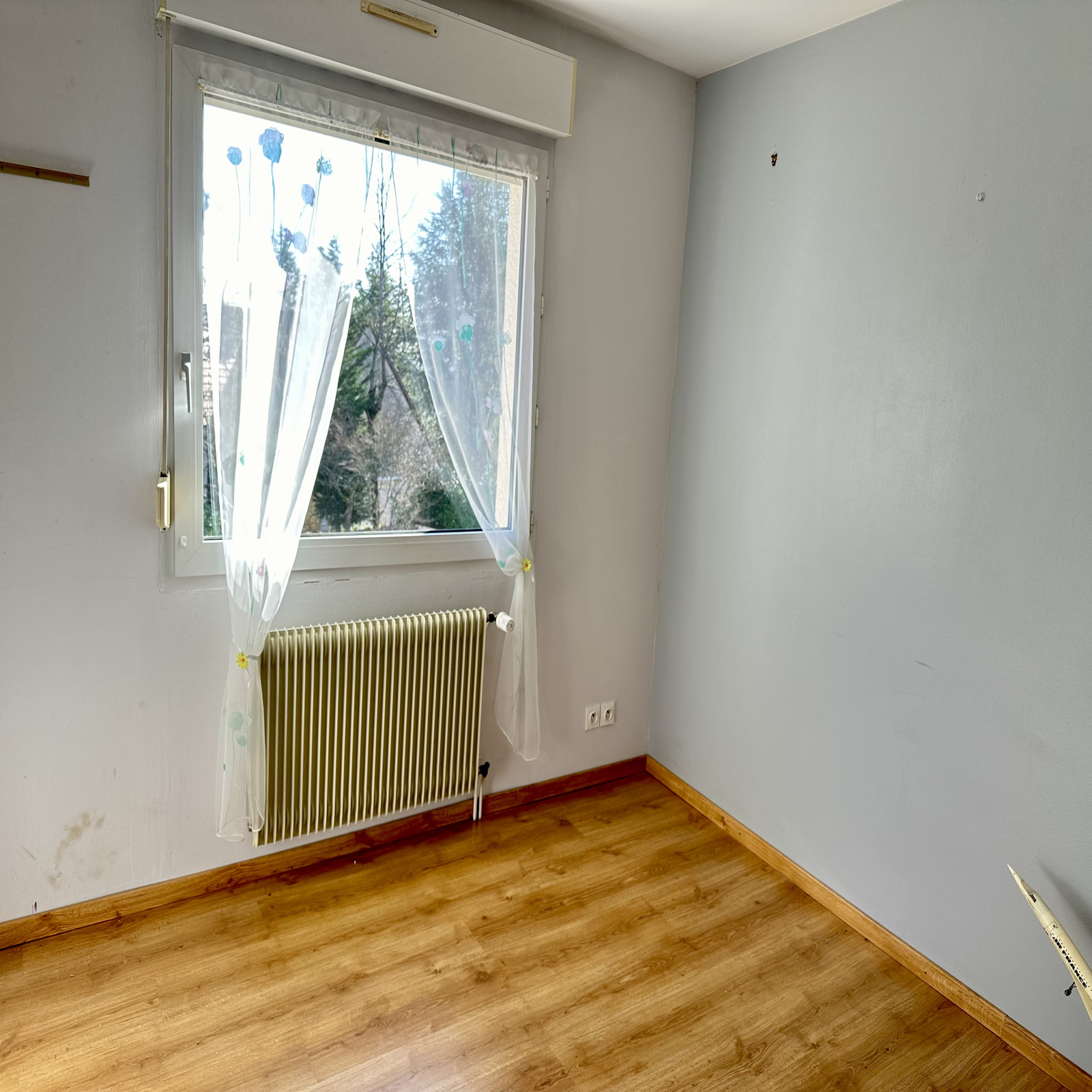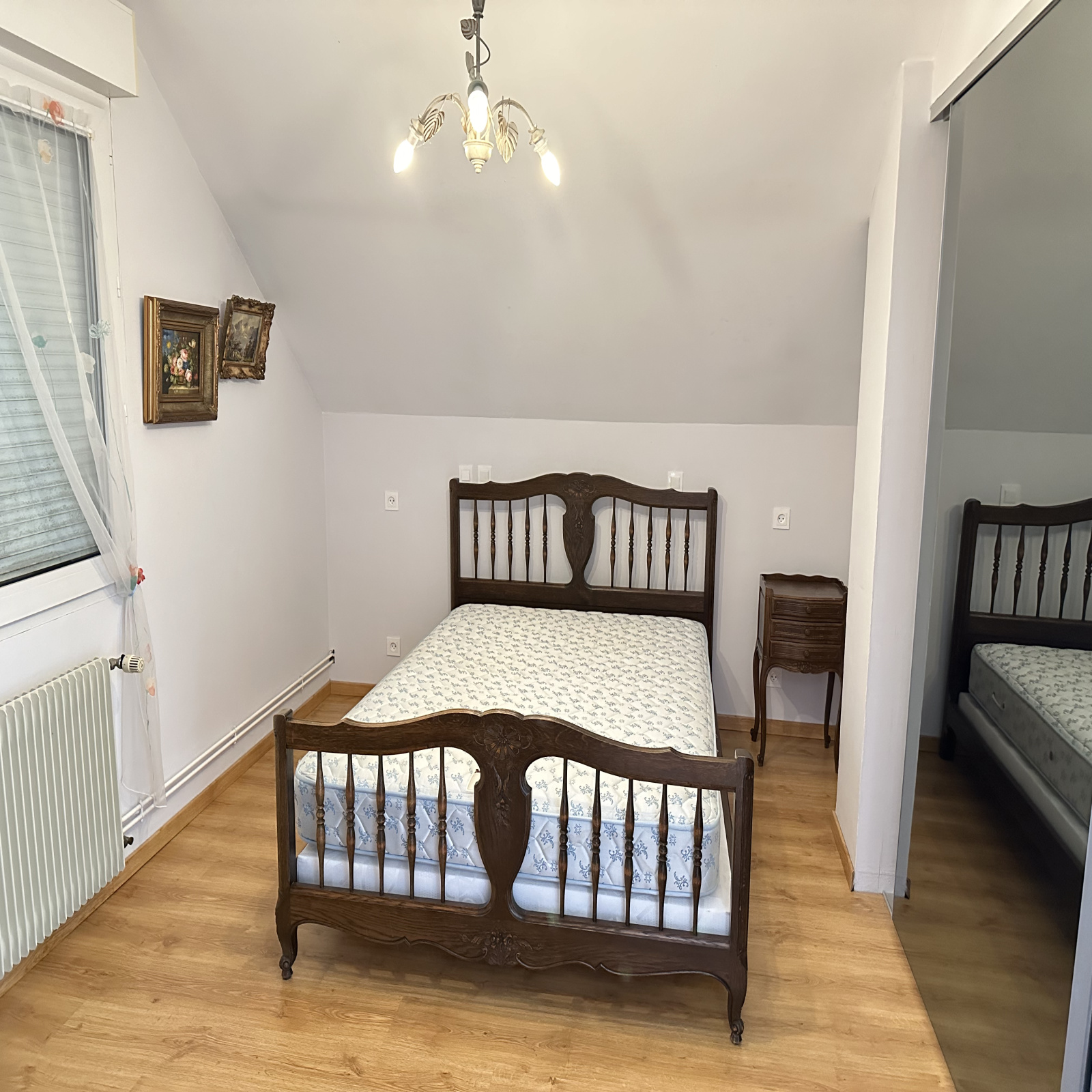 En demi-niveau : 3 chambres dont 2 avec placard et une avec balcon (11, 12 et 13 m2 env), w.c.