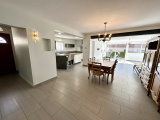 Au rez-de-chaussée : entrée avec placard, cuisine équipée (16 m2 env) ouverte sur salon/séjour (42 m2 env), une chambre (12 m2), w.c.