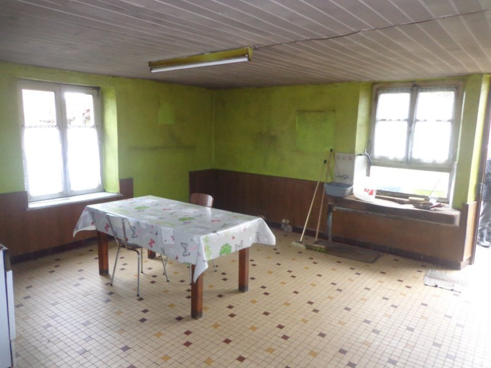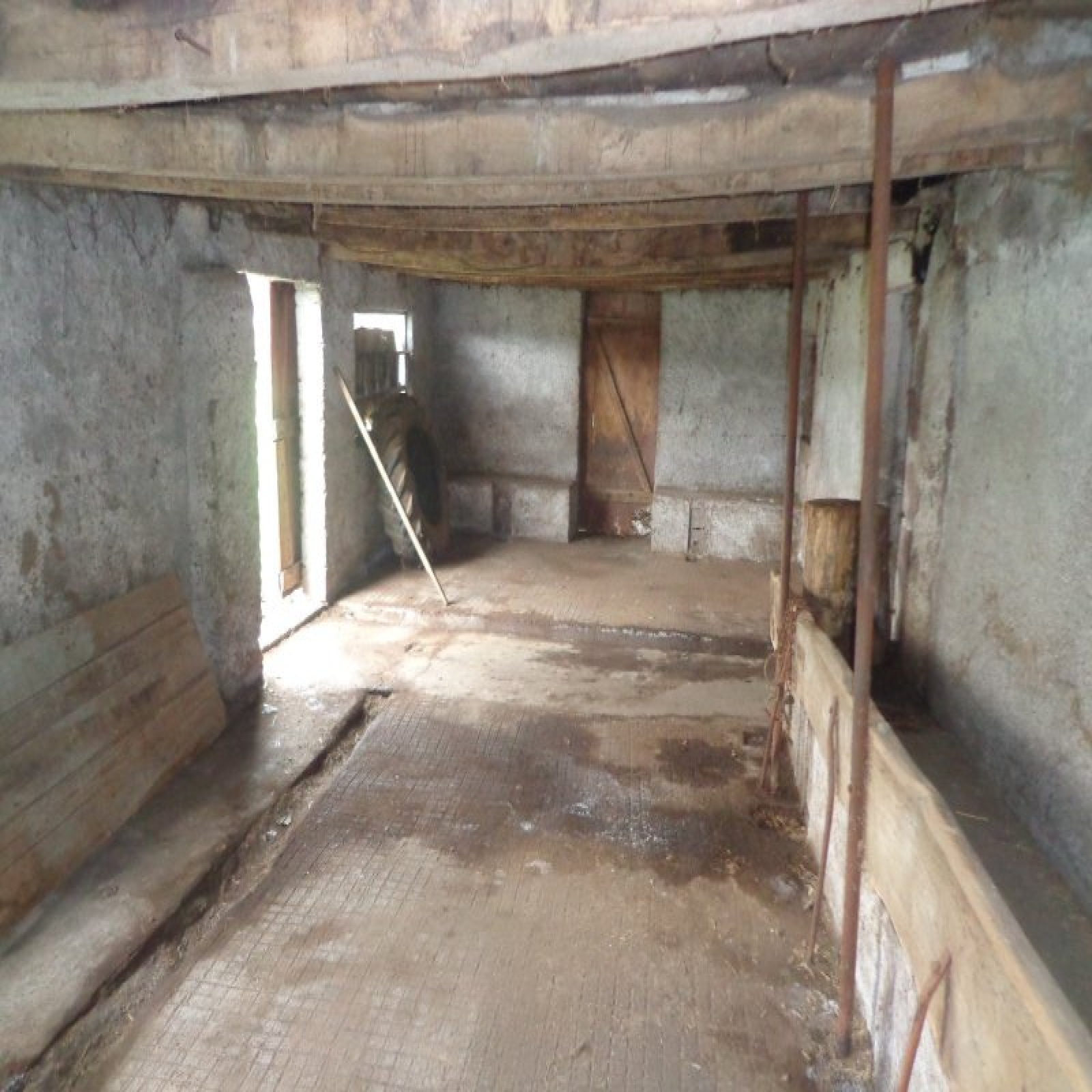 Au rez-de-chaussée : entrée sur ancienne cuisine (avec fumoir), une pièce avec conduit de cheminée, wc.