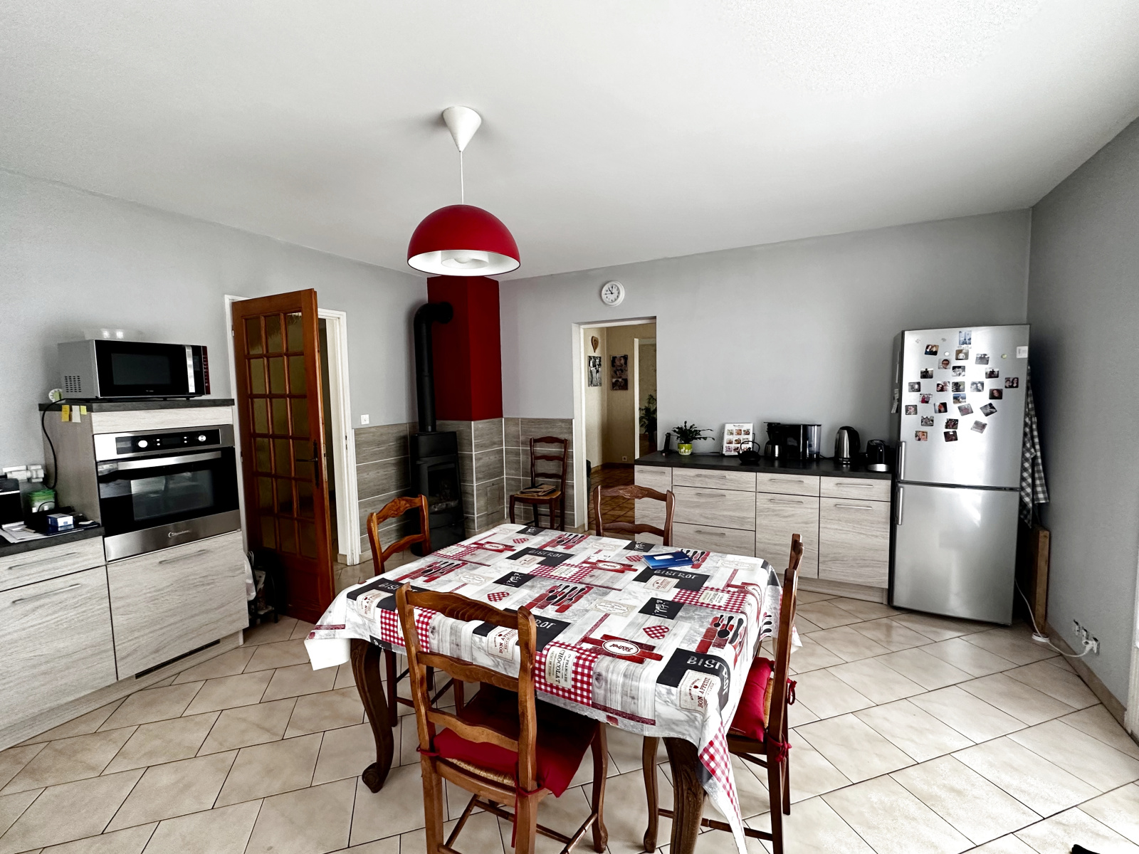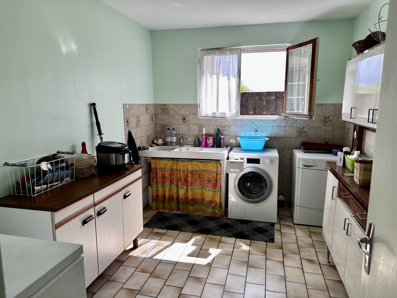 Au rez-de-chaussée : une entrée/dégagement, cuisine indépendante avec poêle à bois et accès terrasse,. salle à manger/séjour d'environ 45 m². W.C indépendant, salle de bains, buanderie, local technique et garage.