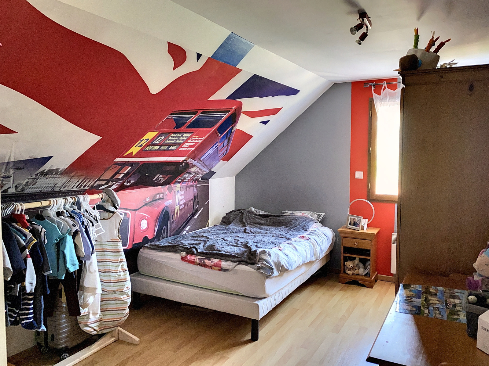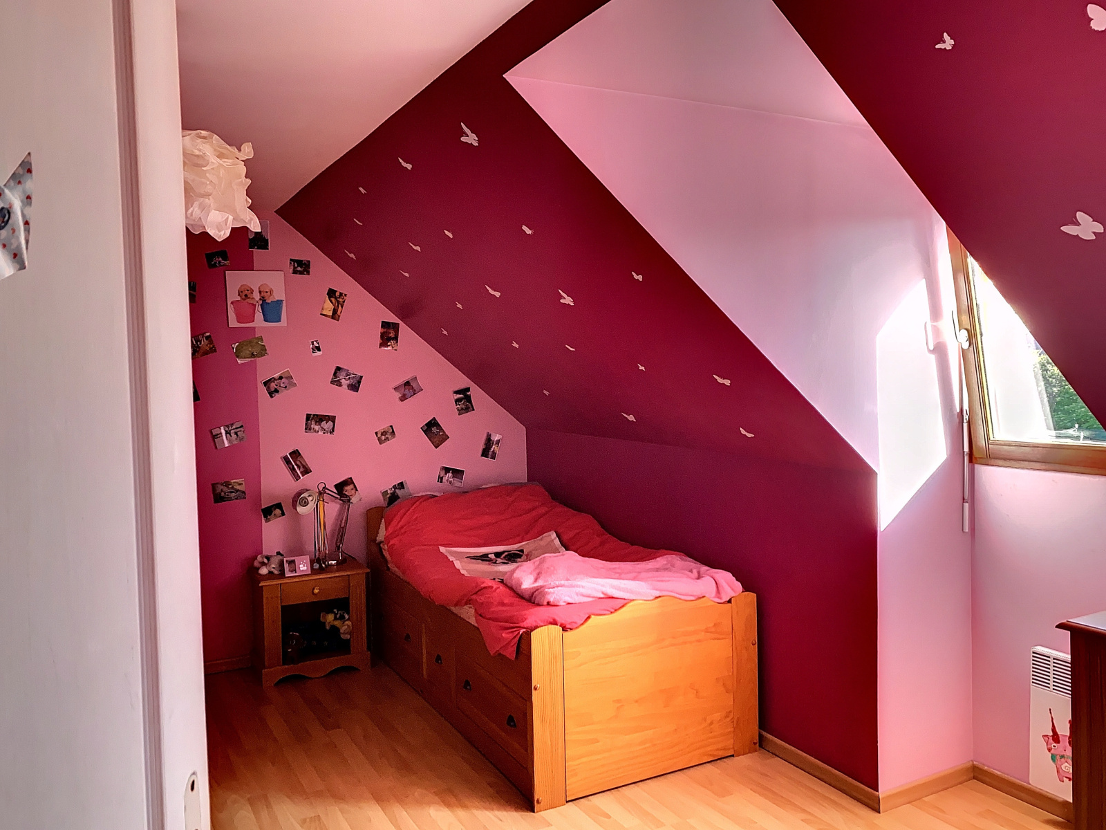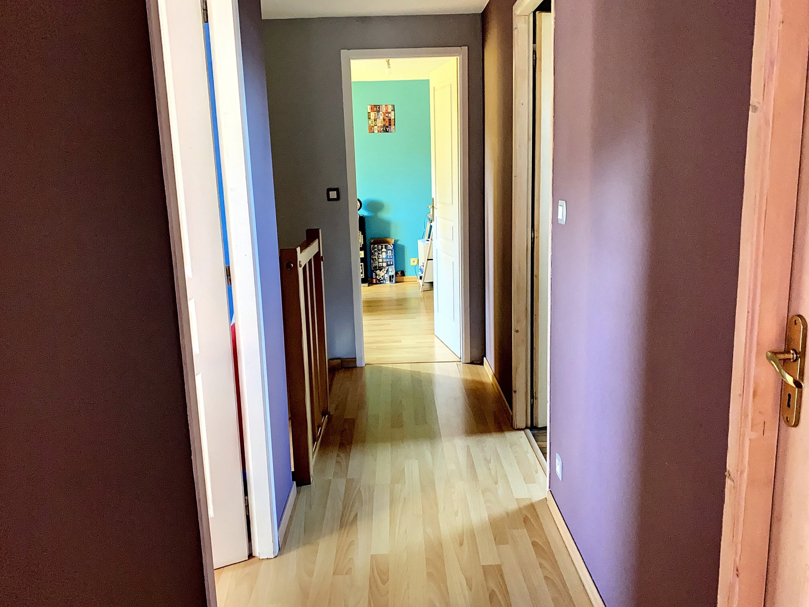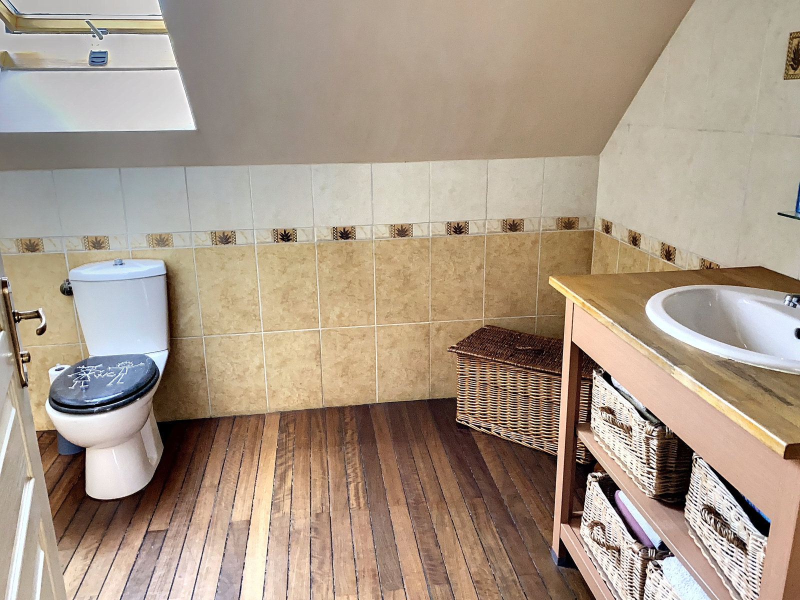 A l'étage : 3 chambres (dont une avec placard), salle d'eau avec wc, bureau, grenier.