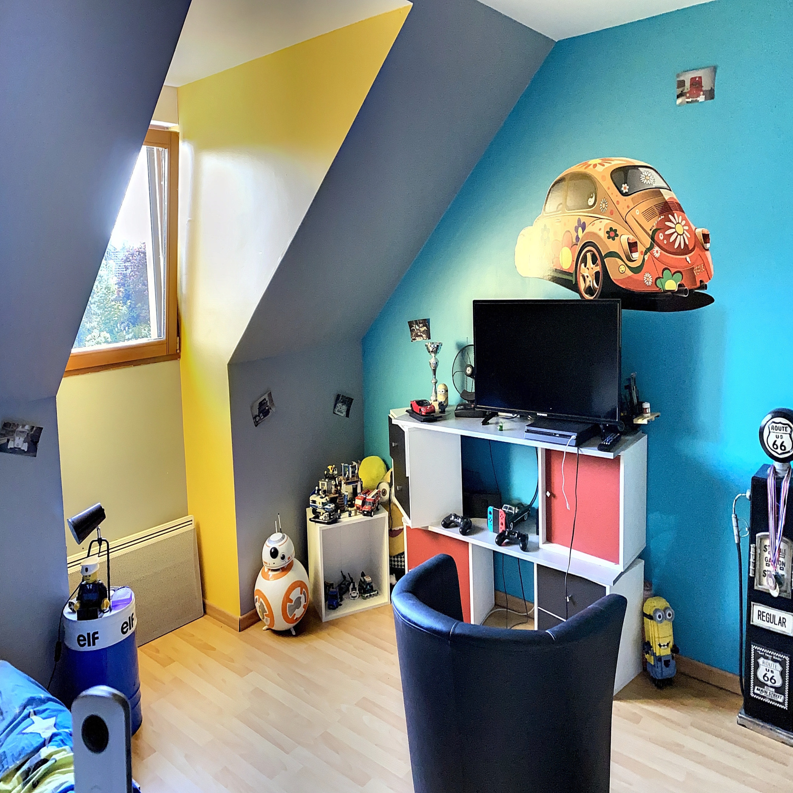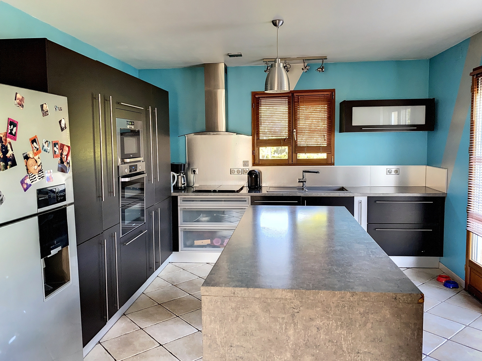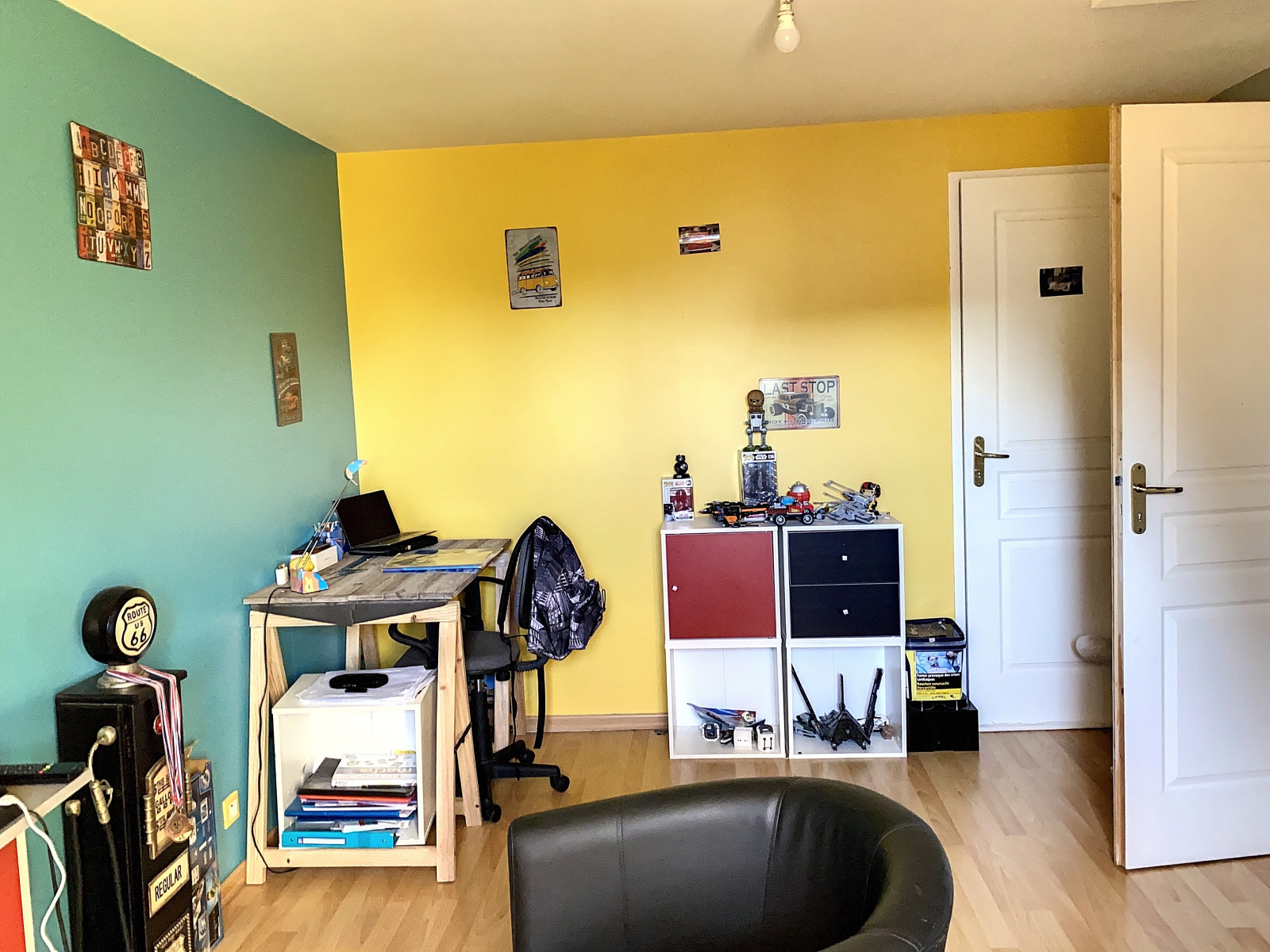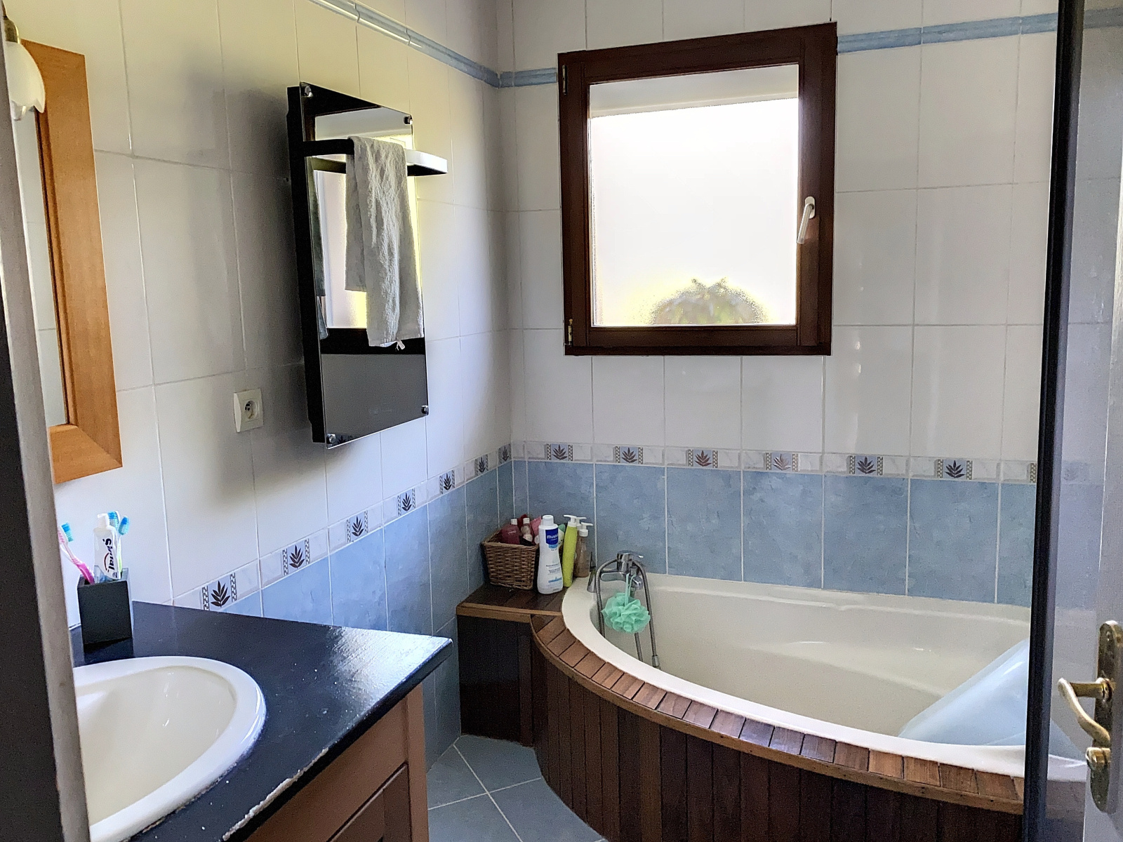 A l'étage : 3 chambres (dont une avec placard), salle d'eau avec wc, bureau, grenier.