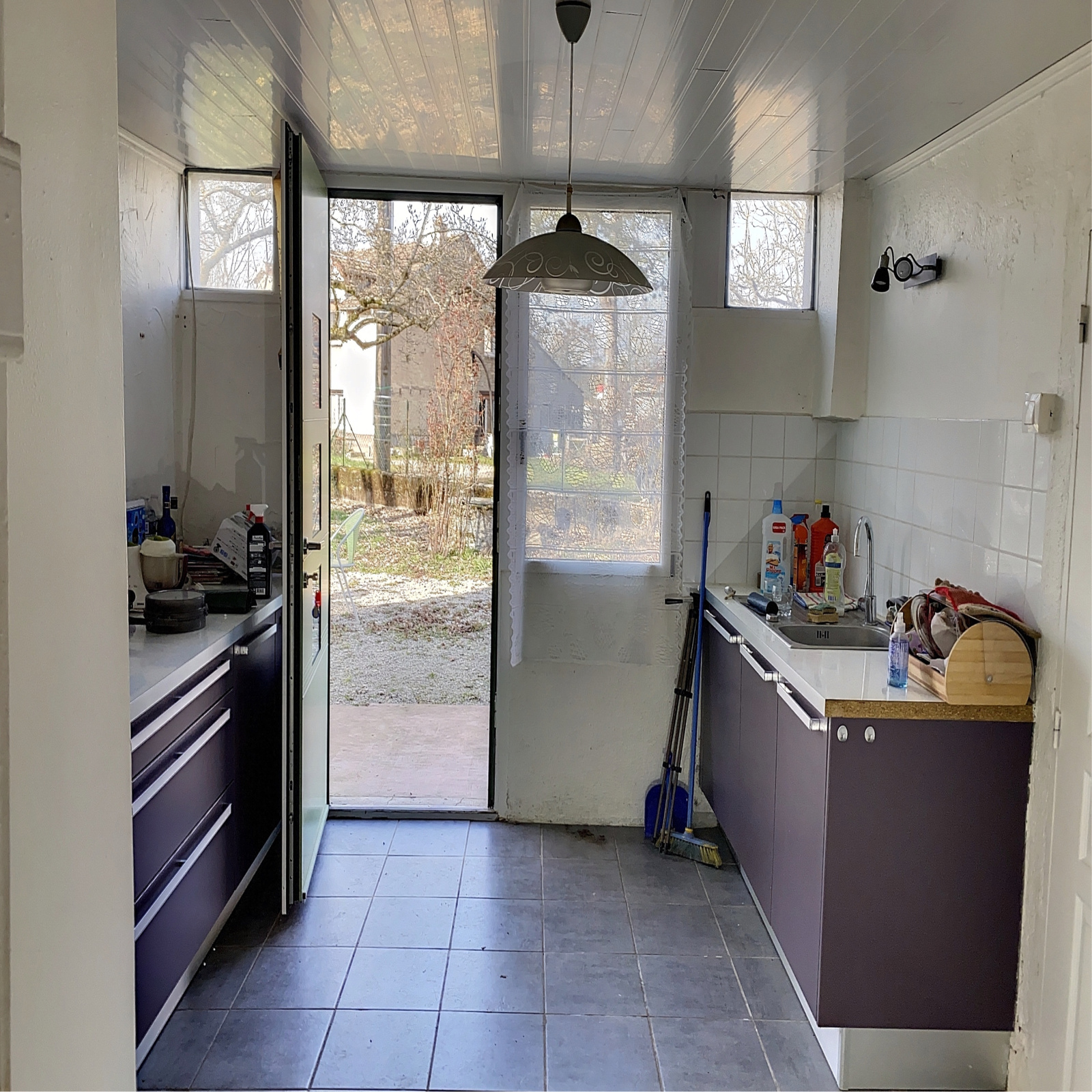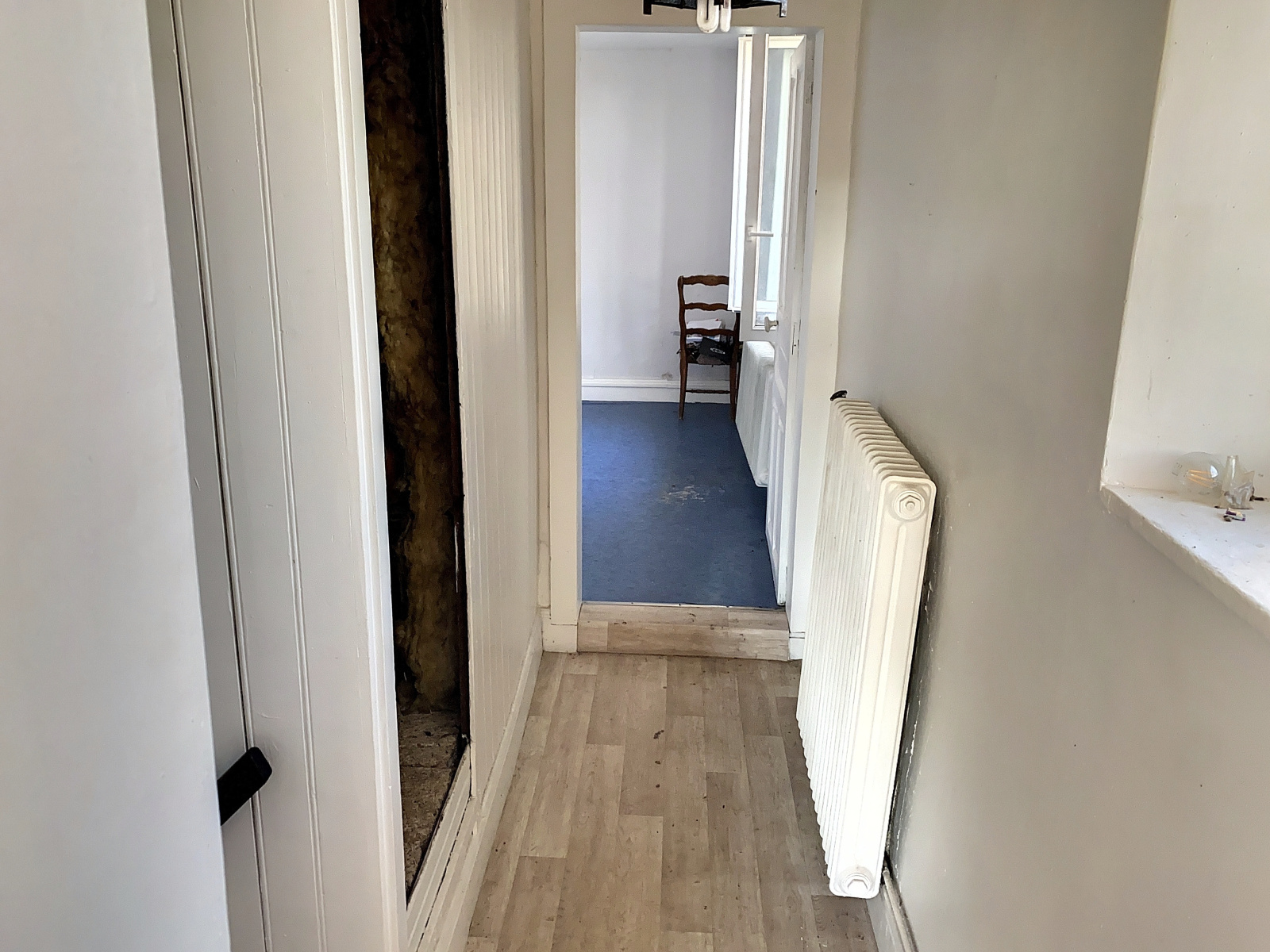 Au rez de chaussée : cuisine aménagée, salle de bain avec wc, salle à manger / salon avec insert et accès exterieur.