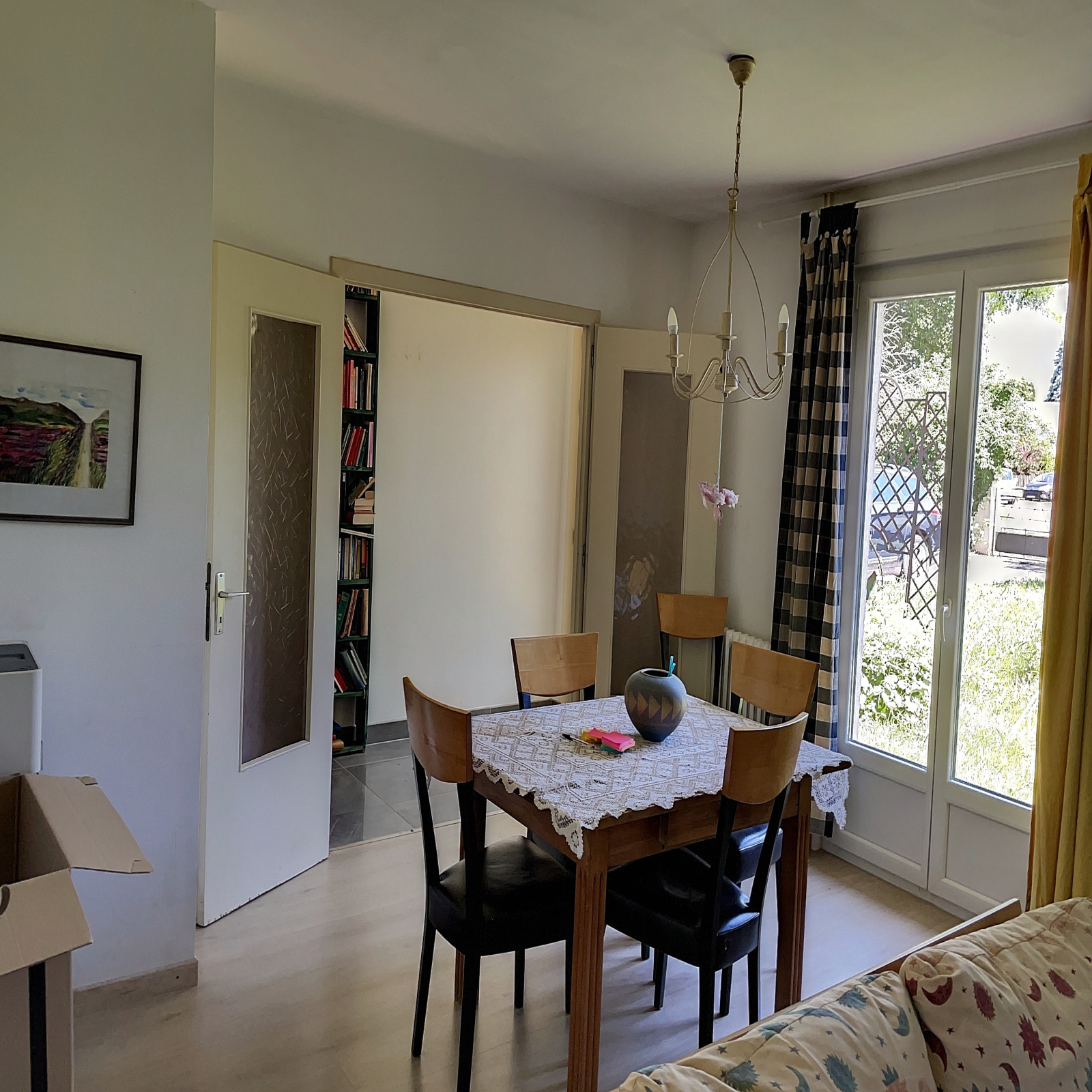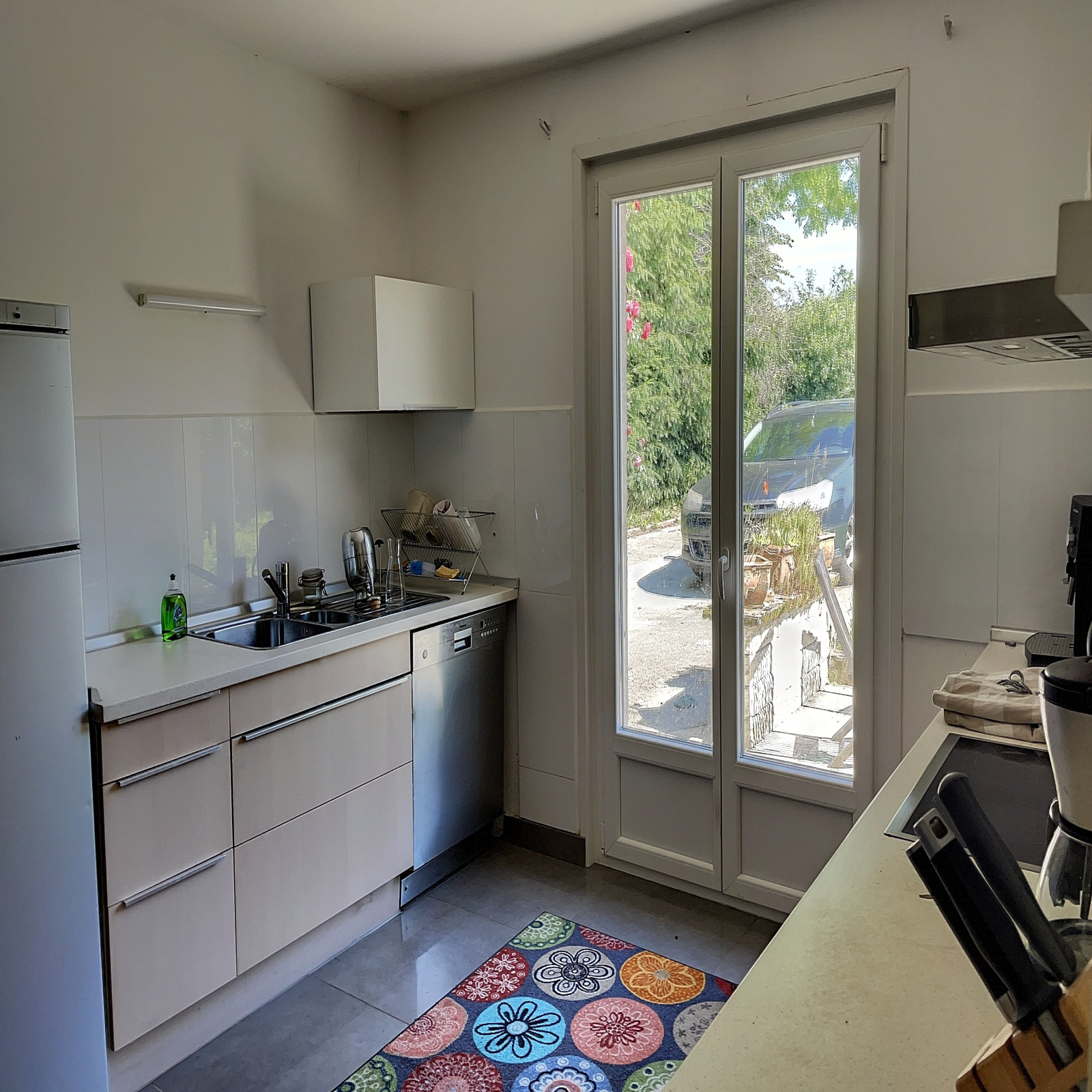 Entrée, cuisine équipée, salle à manger / salon, 2 chambres, salle d'eau, wc, cellier.