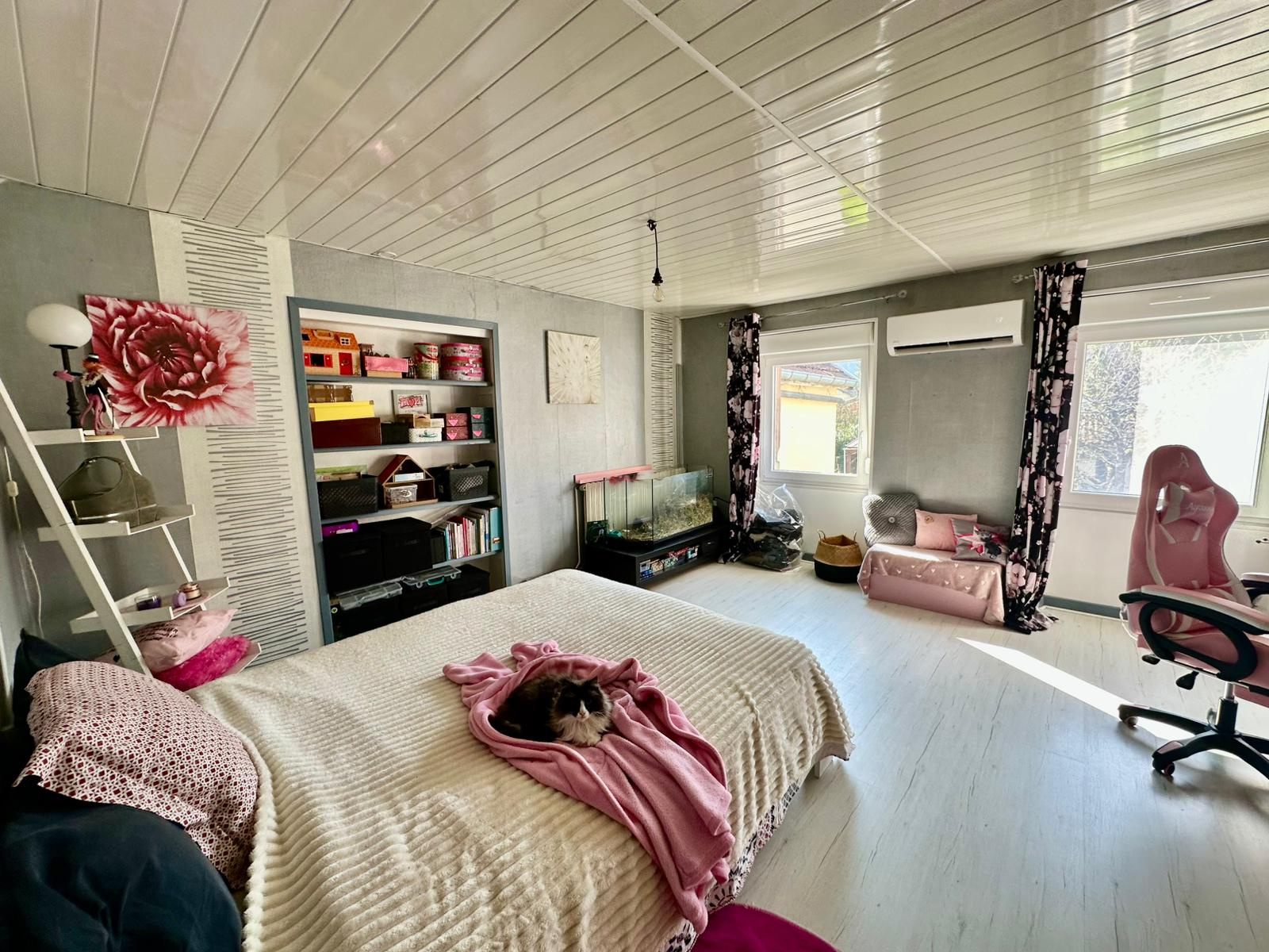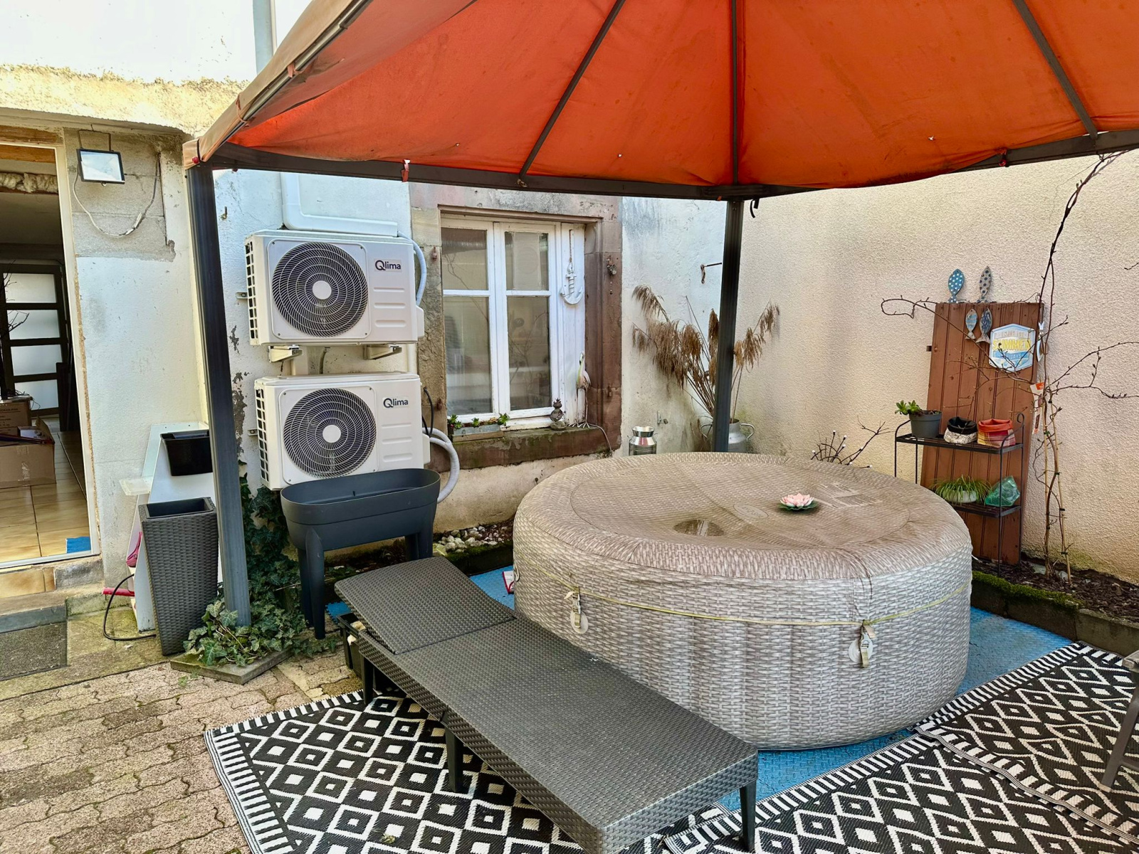 Chauffage : aérothermie + poêle à bois.