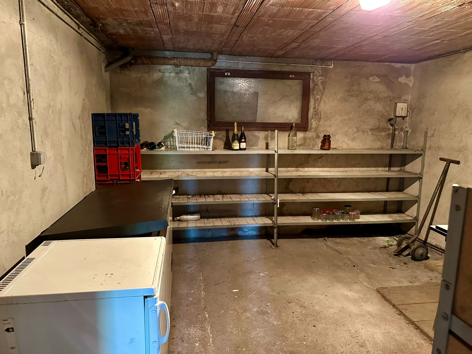 Au rez-de-chaussée : entrée sur sous-sol, une pièce (15 m2 env), dégagement (4 m2 env), chaufferie (14 m2 env), garage (50 m2 env), cave (14 m2 env).