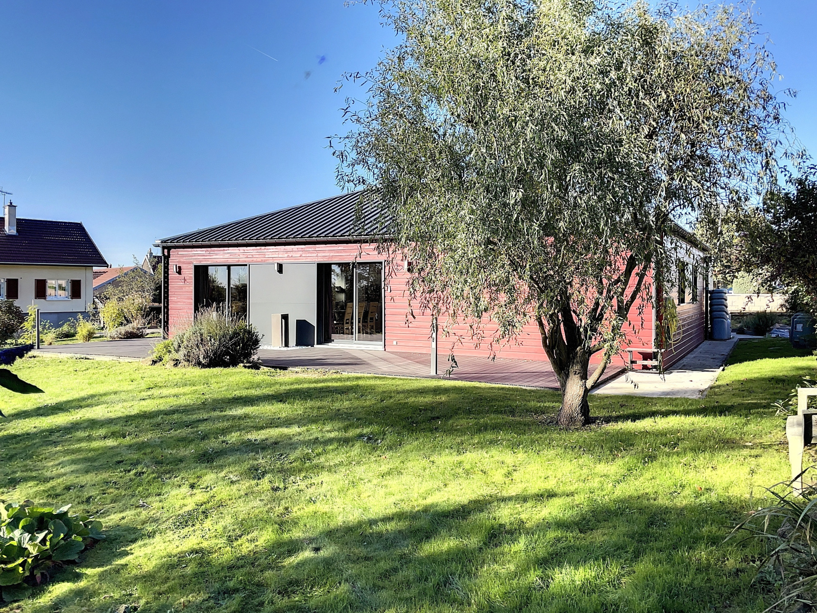 Nos Agents Solène Boucard et Hélène Valette vous invitent à découvrir cette charmante villa de 2012 BBC, de plain pied au calme total, sur 1233m² environ de terrain avec de très belles prestations. Elle se compose comme suit sur 110m² environ : Entrée avec rangements, wc suspendus, salle d'eau avec douche italienne, grande pièce de vie de 44m² environ avec cuisine Cuisinella entièrement équipée ouverte sur le séjour avec accès sur la terrasse par les baies vitrées qui apportent une grande luminosité, 3 chambres de 12, 13 et 14m² env. Cellier/buanderie, Garage une voiture. Un garage annexe ossature bois. Maison ossature bois avec chauffage par pompe à chaleur très économique avec régulation climatique, bien isolée, chauffe eau un thermodynamique, vmc double flux. Maison bien reliée au tout à l'égout.