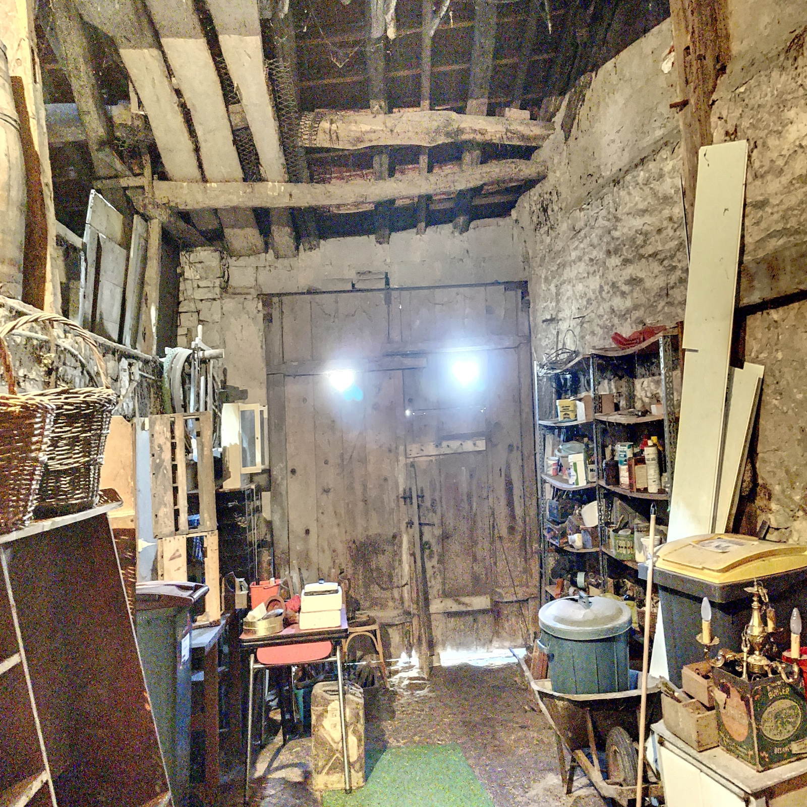 Grange (26 m² env), cave (10 m² env), cellier (16 m² env), garage avec chaufferie (18 m² env).