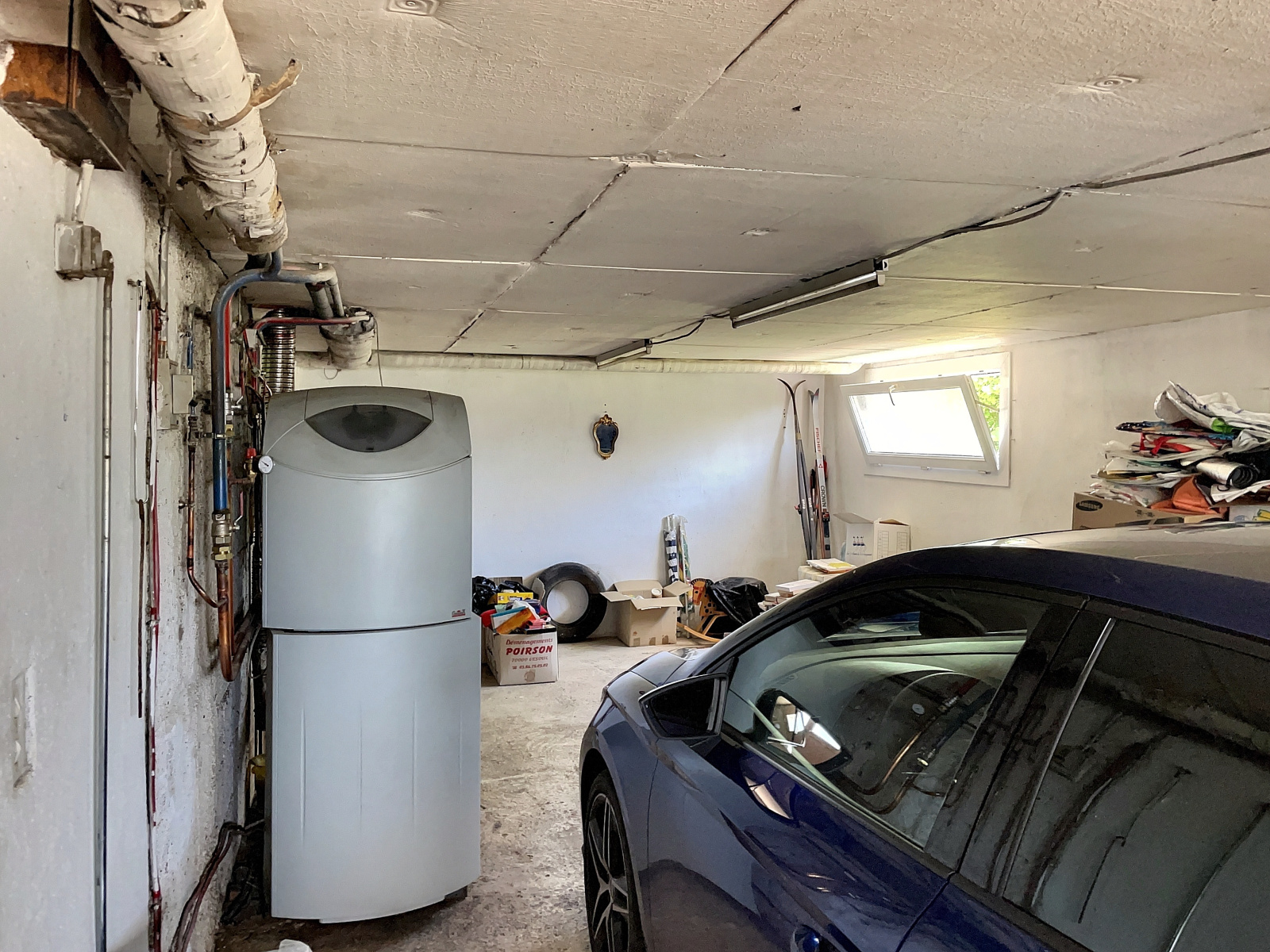 Au sous-sol: pièce à vivre carrelée, buanderie, atelier, garage pour 2 véhicules, chaufferie.