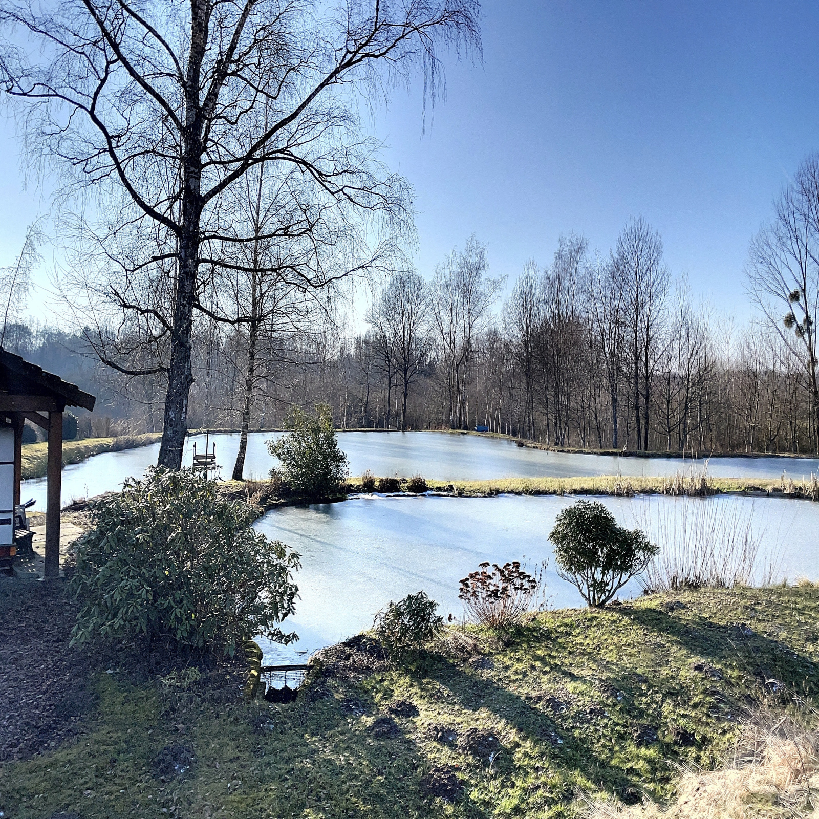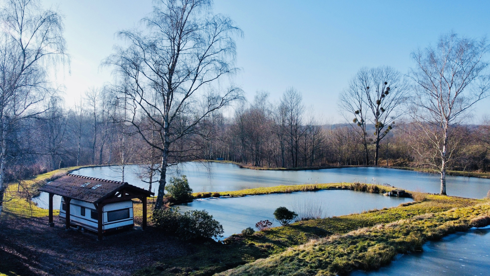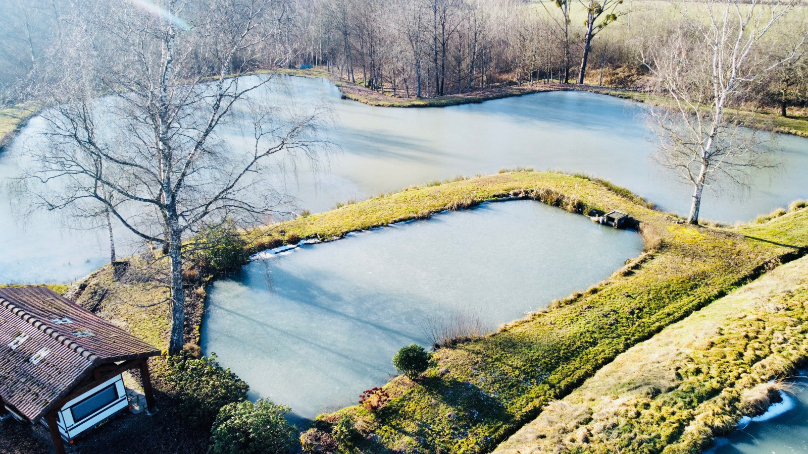 Jolie propriété comprenant 2 étangs et une caravane, sur terrain total de 73 a 40 ca :