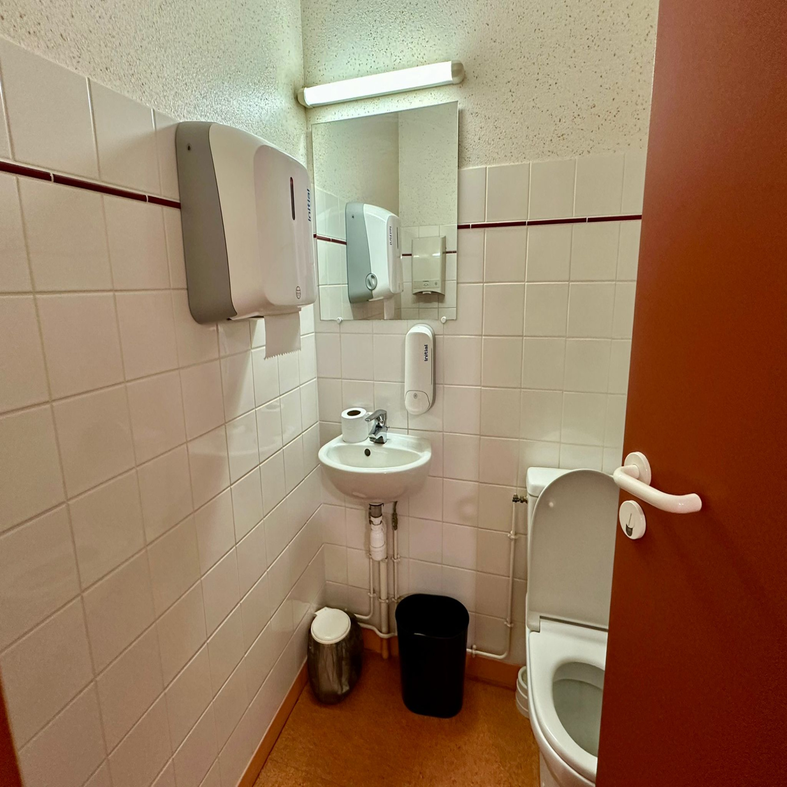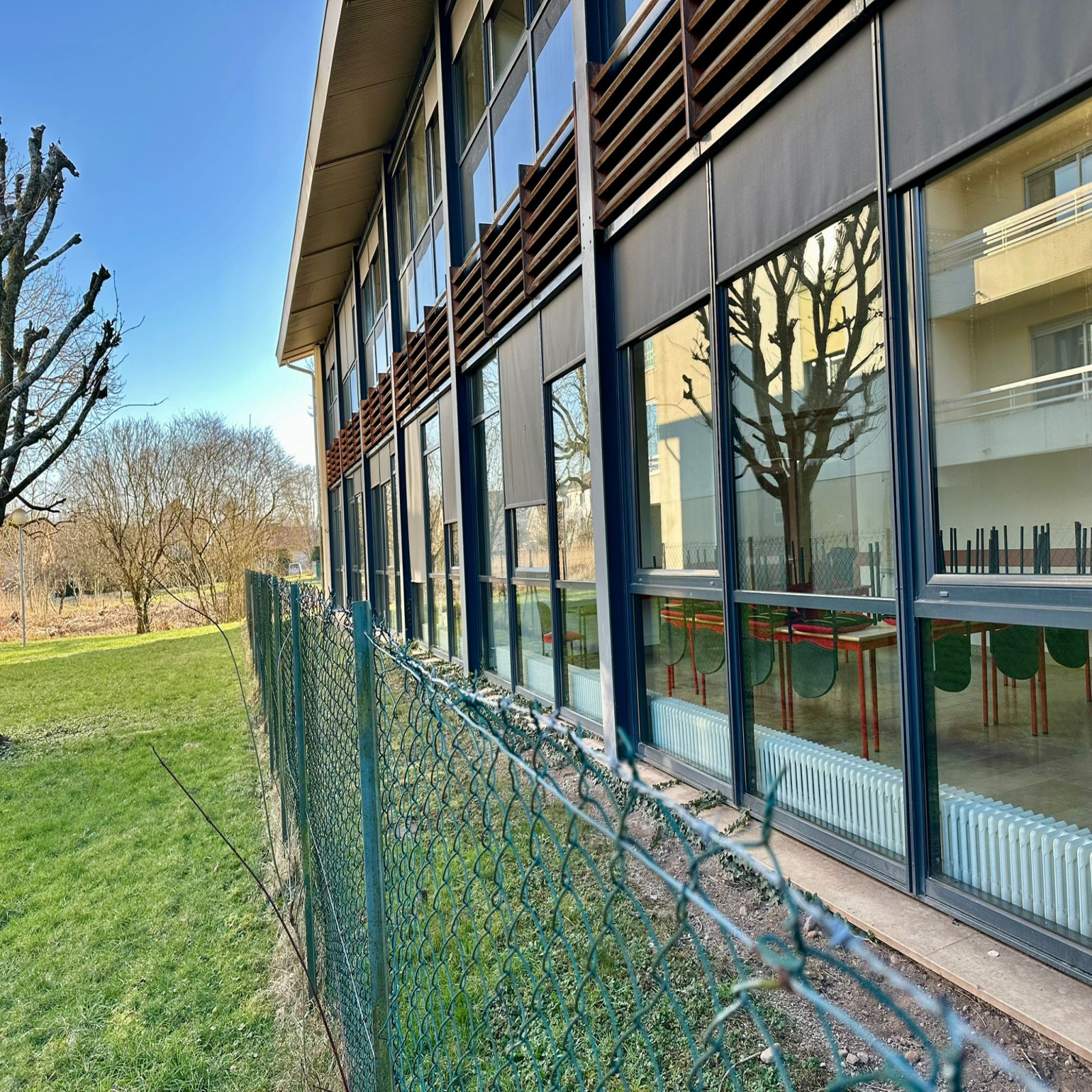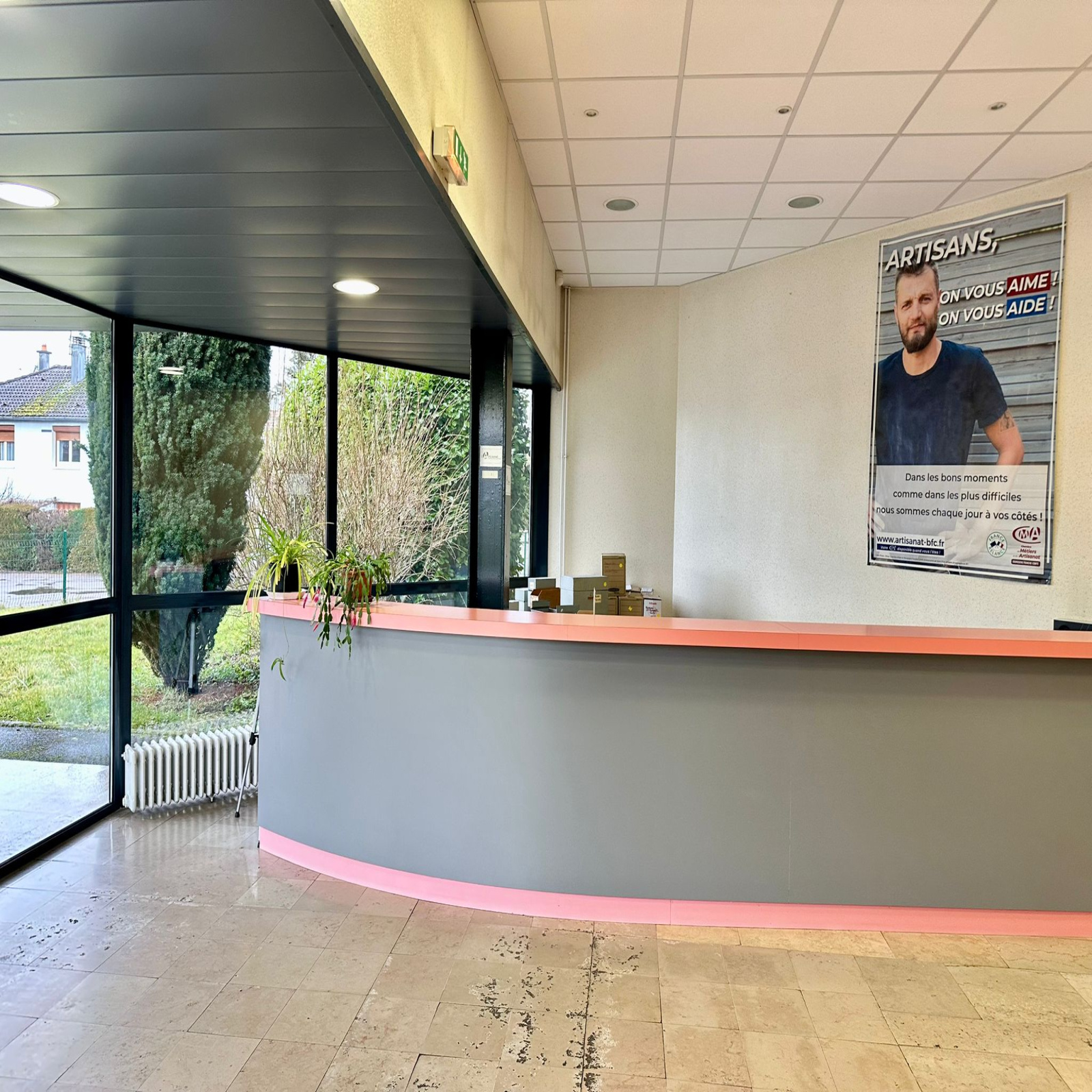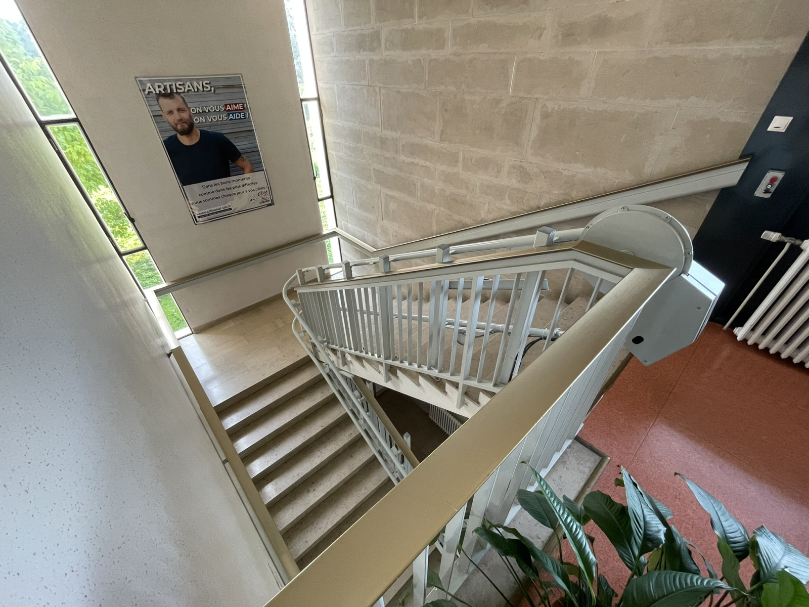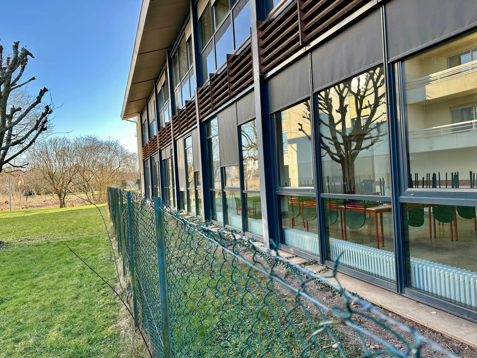 Au rez-de-chaussée : sas, hall d'entrée / acceuil (60 m2 env), remise, sanitaires (hommes, femmes, handicapés), 2 bureaux (20 m2 env) avec remise, une pièce vitrée (17 m2 env), 2 salles de réunion (38 m2 env), salle d'archivage (11 m2 env), local électrique, dégagement.