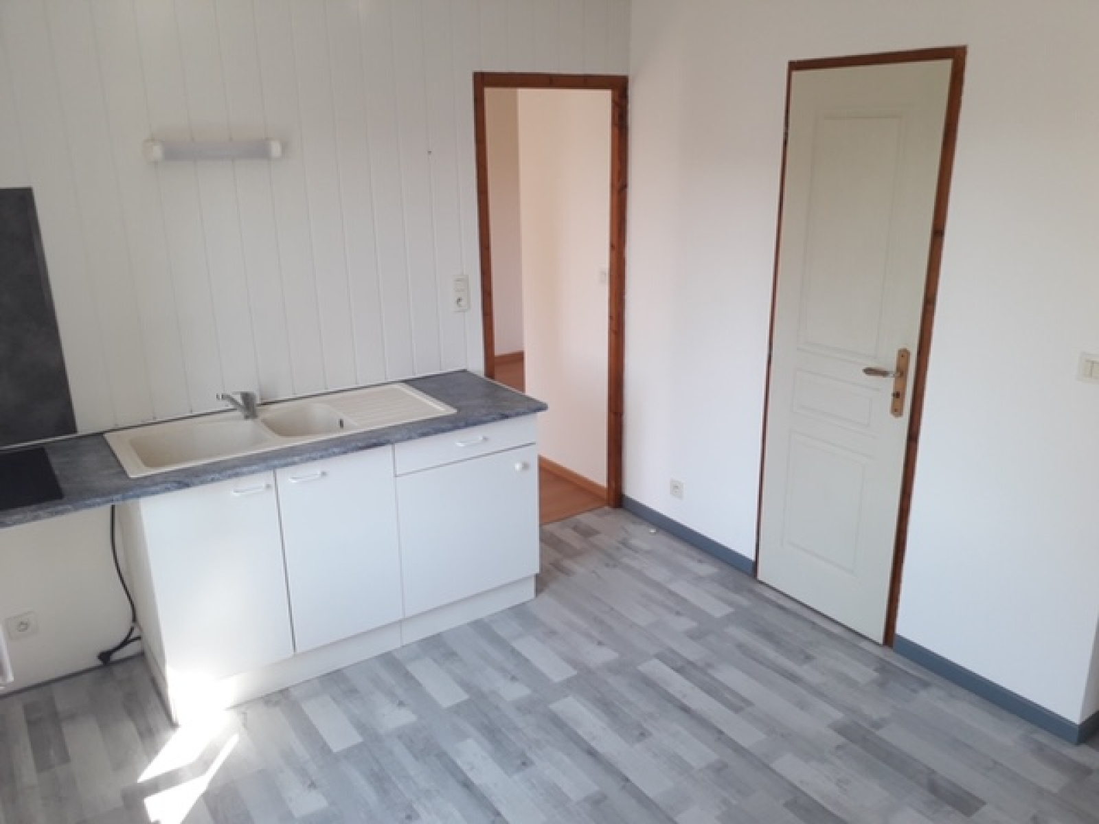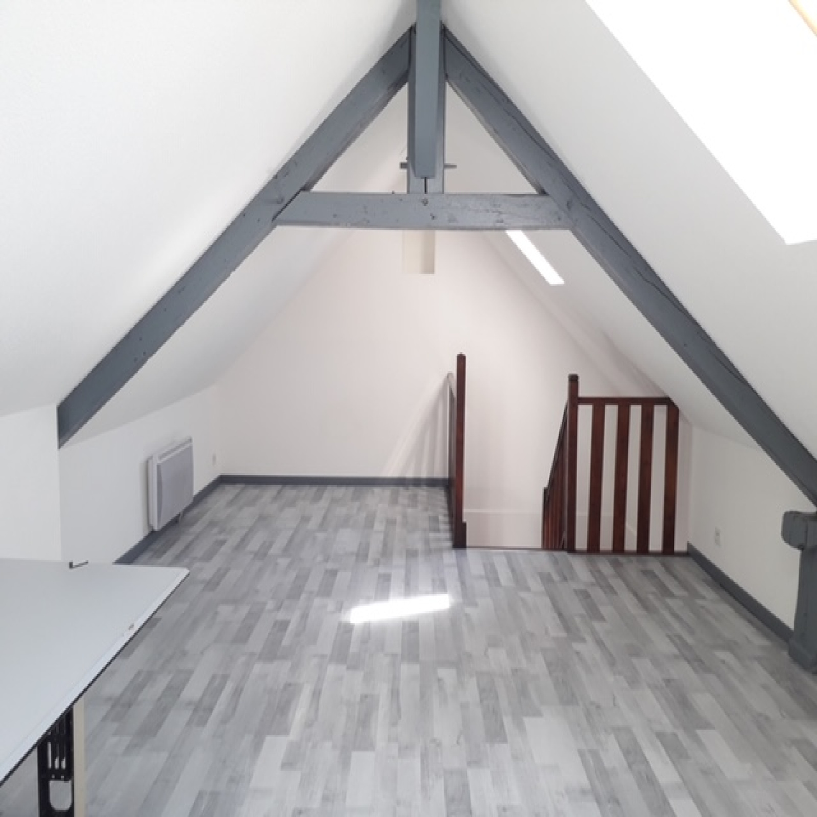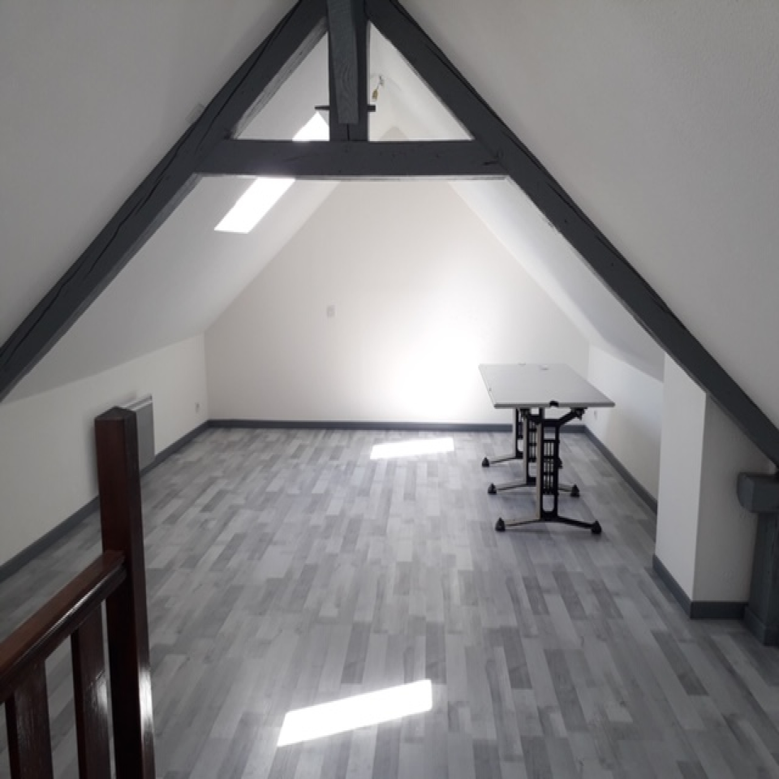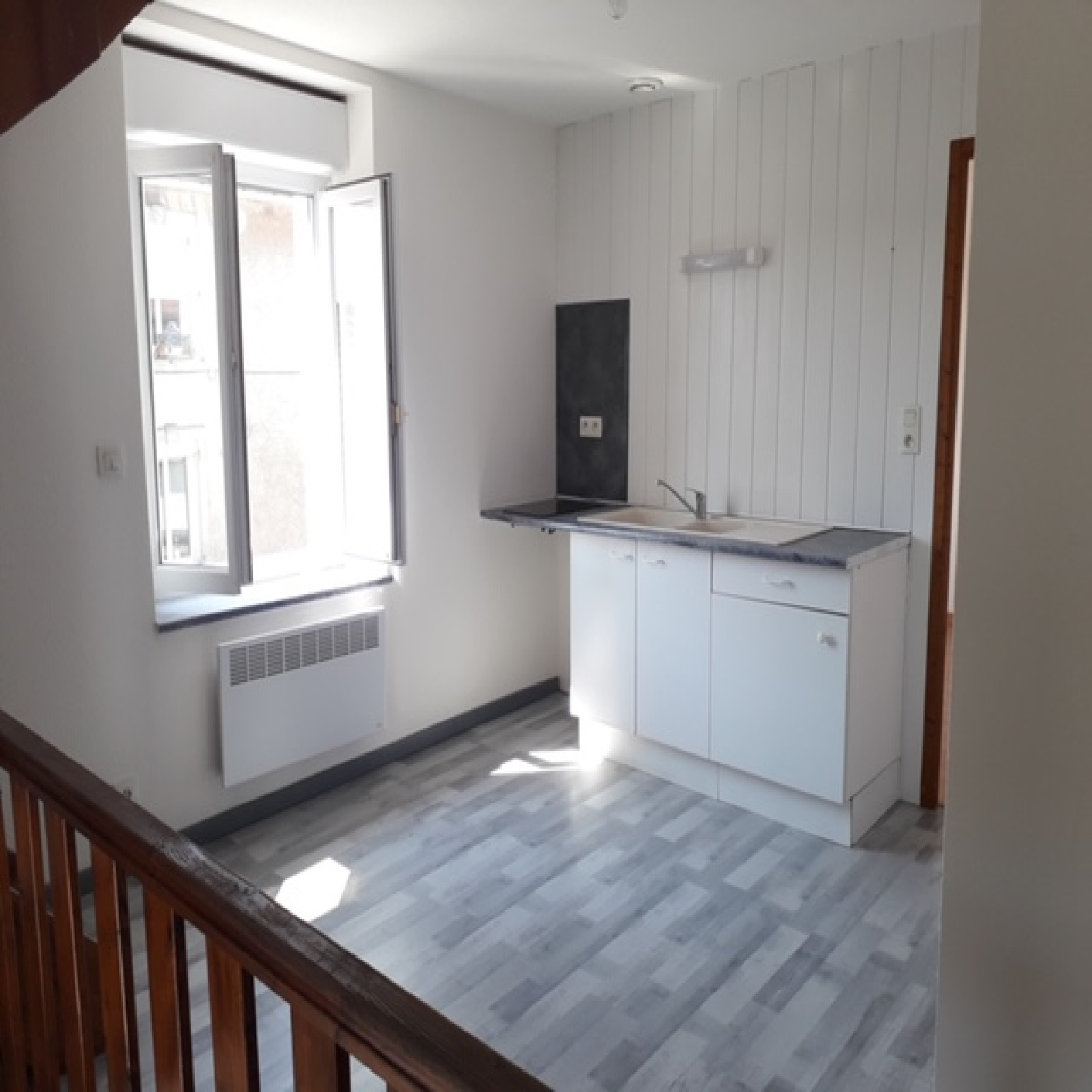 A l'étage : un appartement T2 en duplex (état neuf) comprenant une cuisine, séjour, salle de bains avec wc au 1er niveau ; une chambre à l'étage. Loyer 430 euros + 10 euros de charges (Loué)