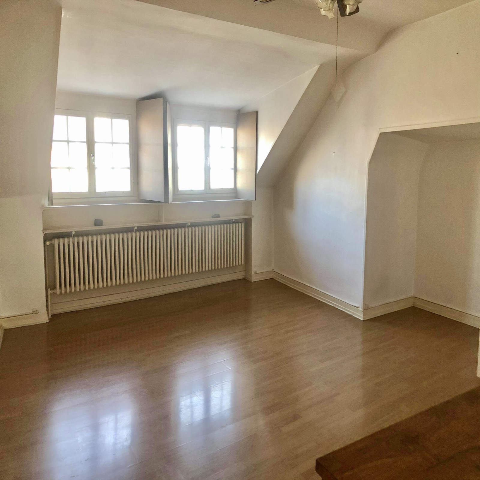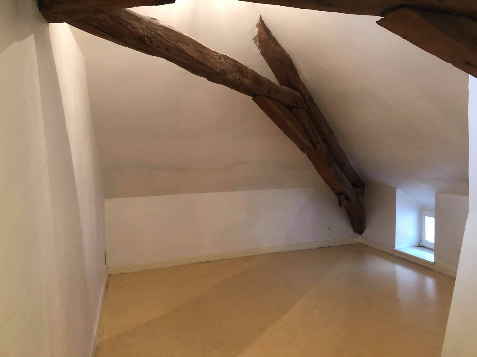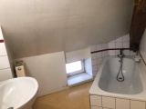 Au 2ème étage un T2 en duplex (libre, était loué 270 euros + 30 de charges) avec une cuisine, séjour, au dessus : salle de bains avec wc, chambre.