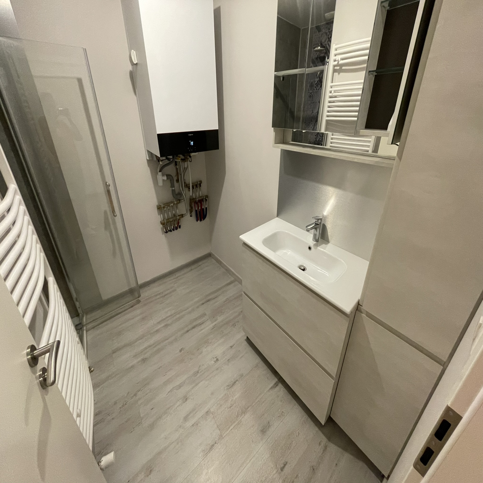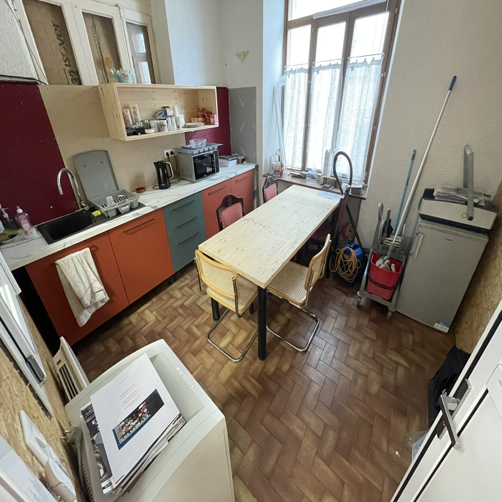 Un 1er appartement (1er étage) d'environ 62 m², composé d'une entrée/dégagement, salle d'eau, wc, buanderie, 2 chambres et cuisine/séjour. Loué 580€/mois hors charges.