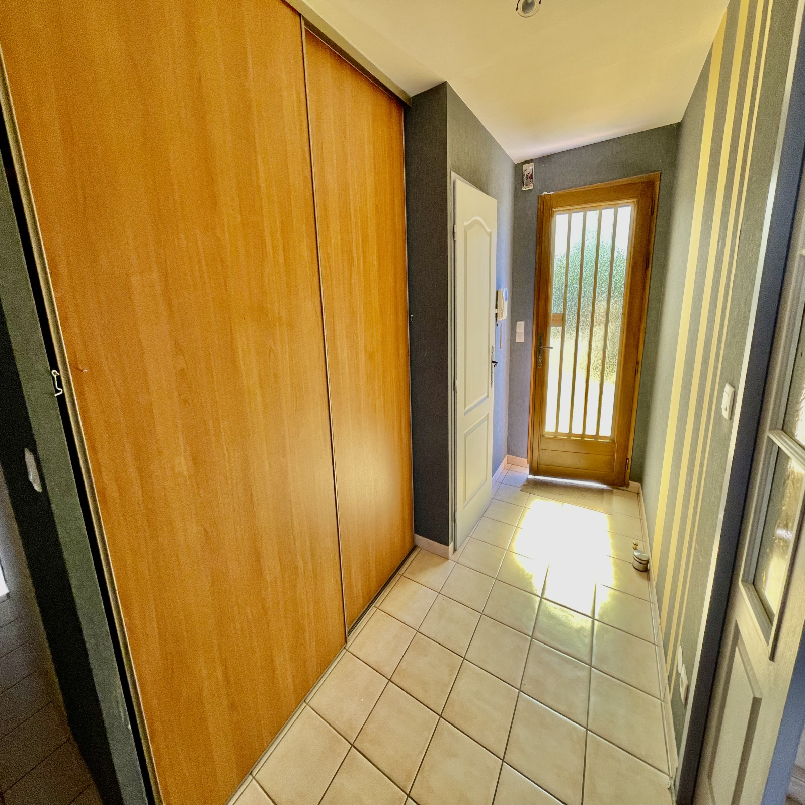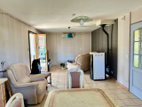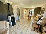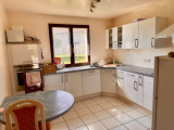 Entrée avec placards (6m2 env), salle à manger / salon (28 m2 env) avec poêle pellets, climatisation et accès terrasse, cuisine équipée (11m2 env), 3 chambres (10 m2 env), wc, salle de bains (6m2 env)