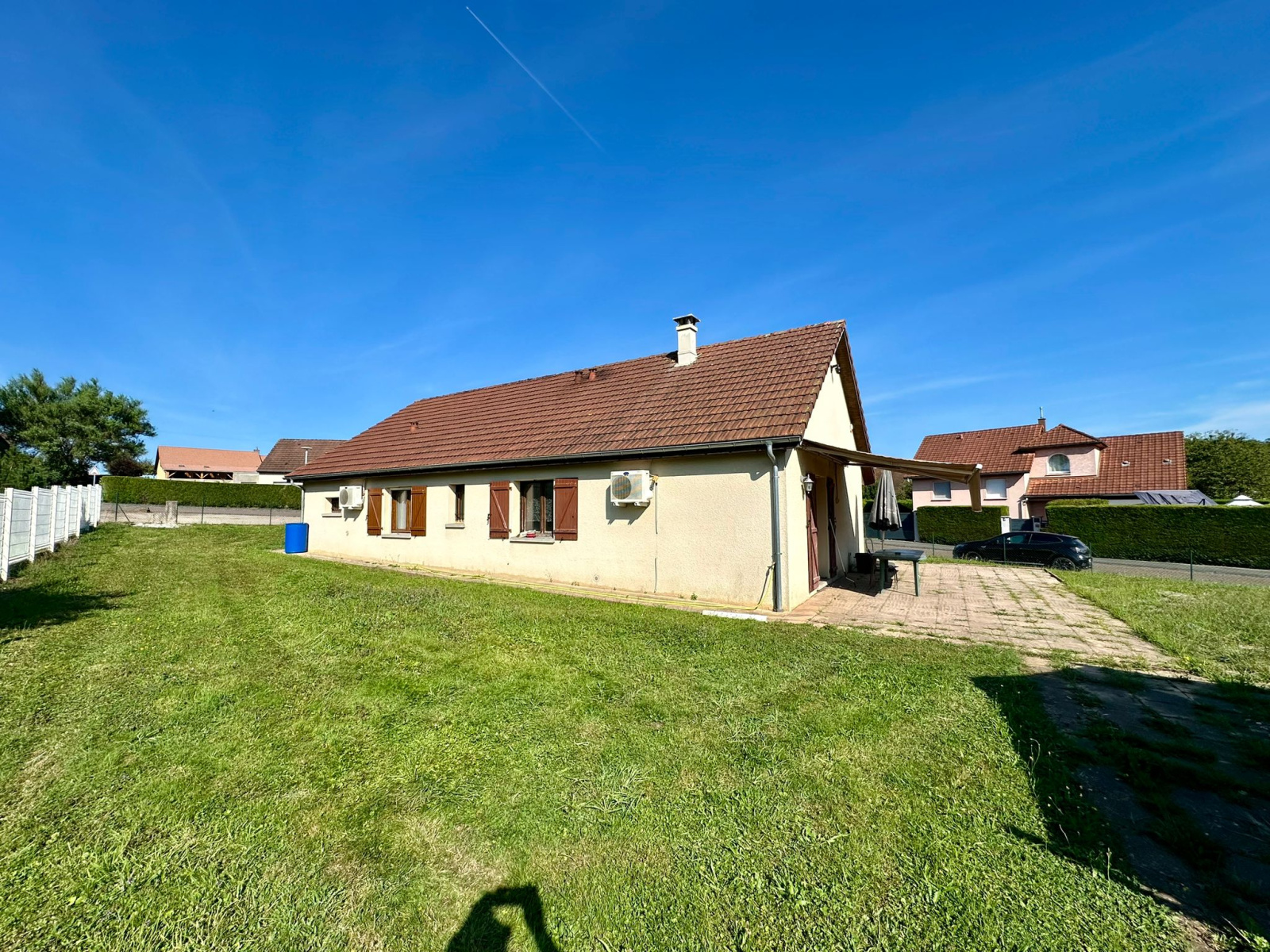 Solène est heureuse de vous présenter cette maison de plain-pied, sur son terrain clos de 8,37 ares comprenant :