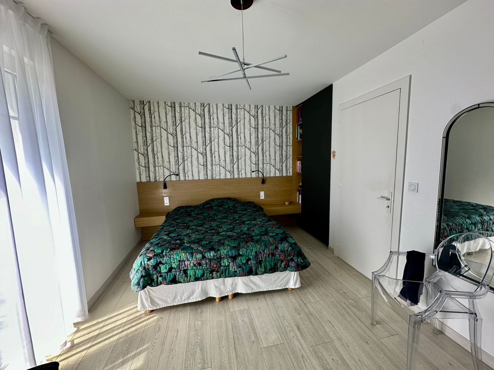 Au rez-de-chaussée : entrée (12 m2 env), cuisine équipée (18 m2 env), salon/séjour (40 m2 env) avec poêle à pellet, 2 chambres (11 et 16 m2 env) dont une avec dressing, salle de bains (6 m2 env), w.c.
