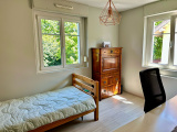 A l'étage : dégagement, une chambre (17 m2 env) avec balcon, une pièce (8 m2 env) avec point d'eau et placard, une chambre (11 m2 env) avec placard, une chambre (18 m2 env). Grenier en 3 parties.