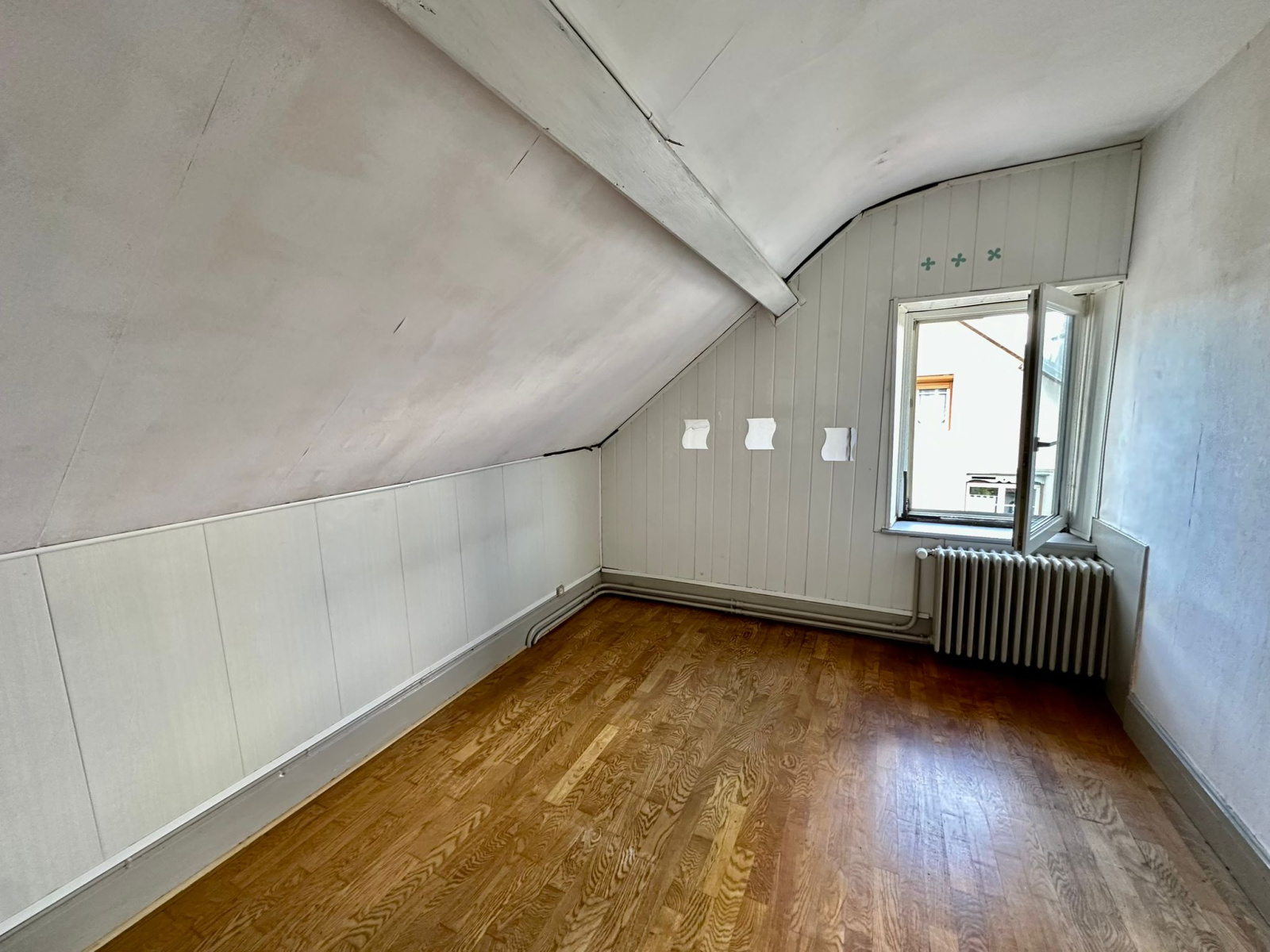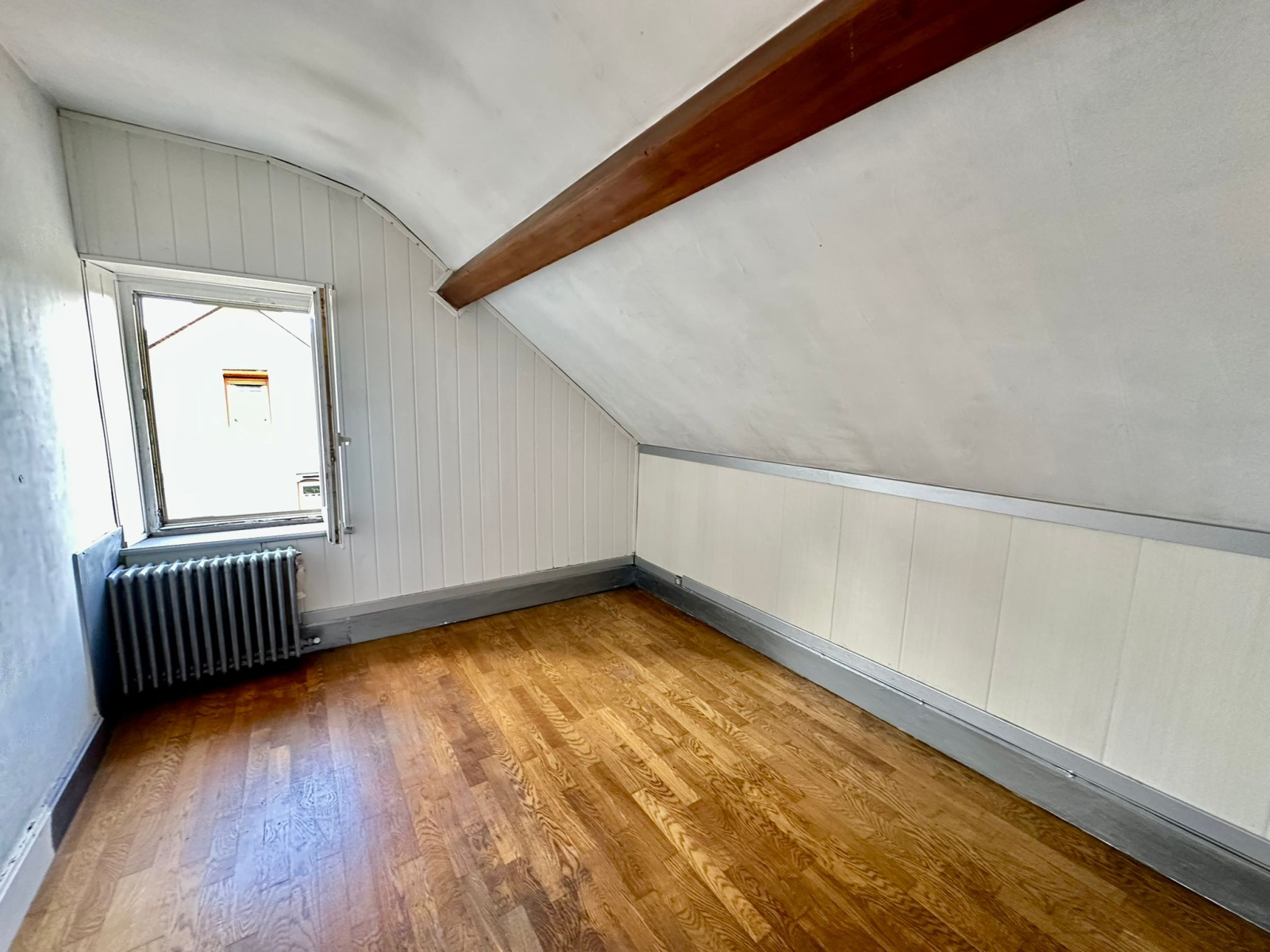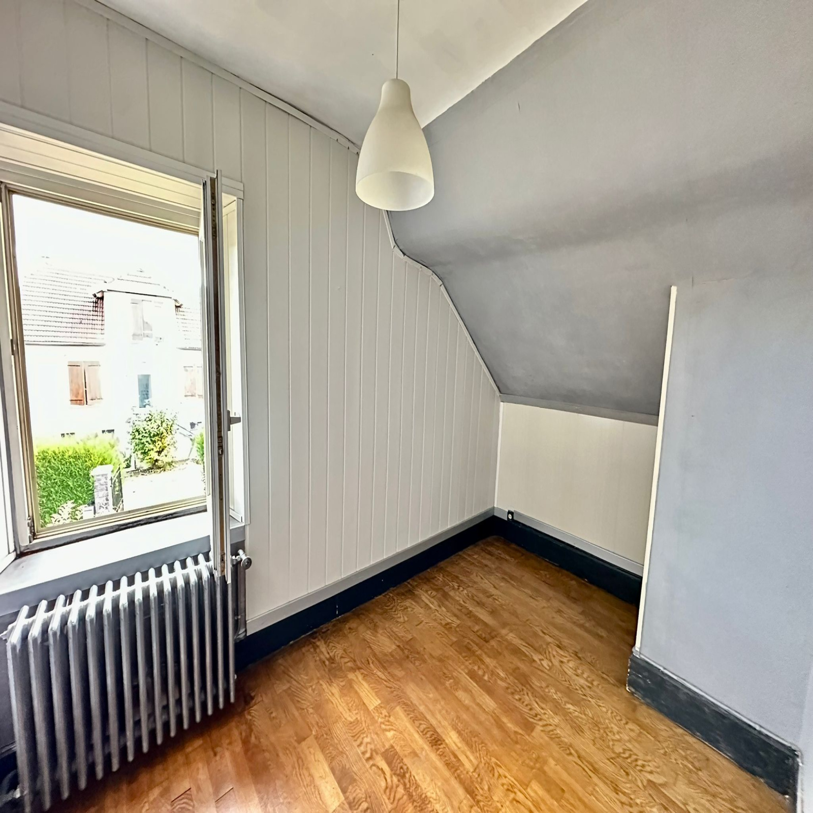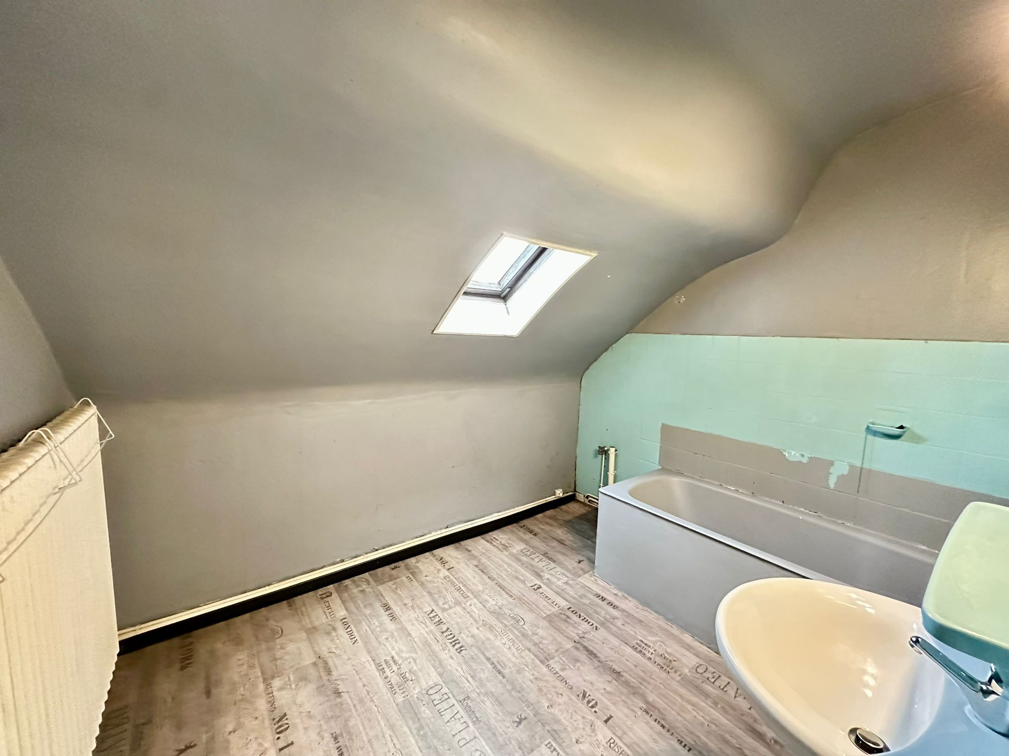A l'étage : 2 chambres (9 et 9 m2 env), bureau (5 m2 env), salle de bains (3 m2 env)