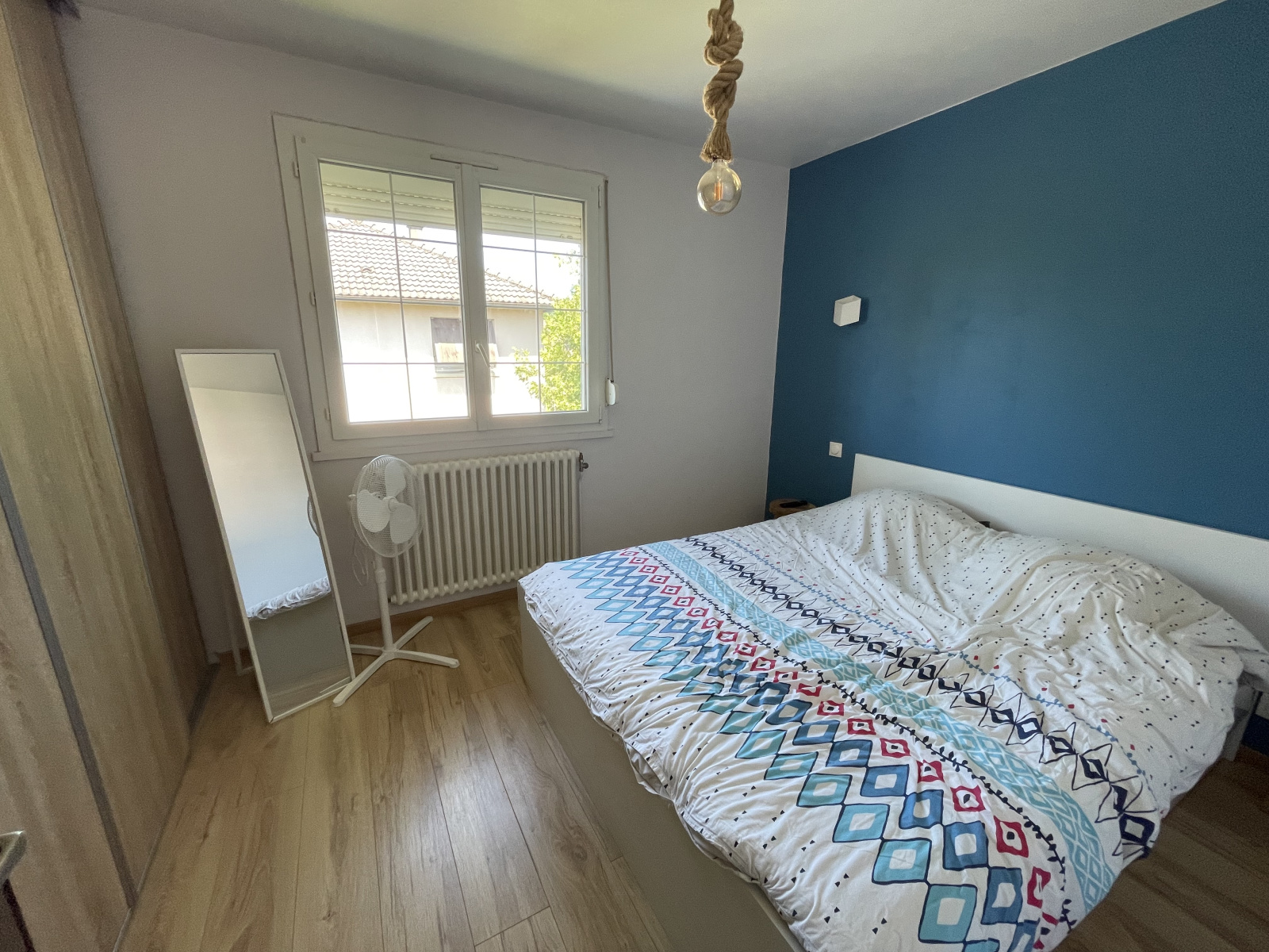 Au rez-de-chaussée : entrée, cuisine équipée ouverte sur salon/séjour, 3 chambres, salle d'eau, w.c.