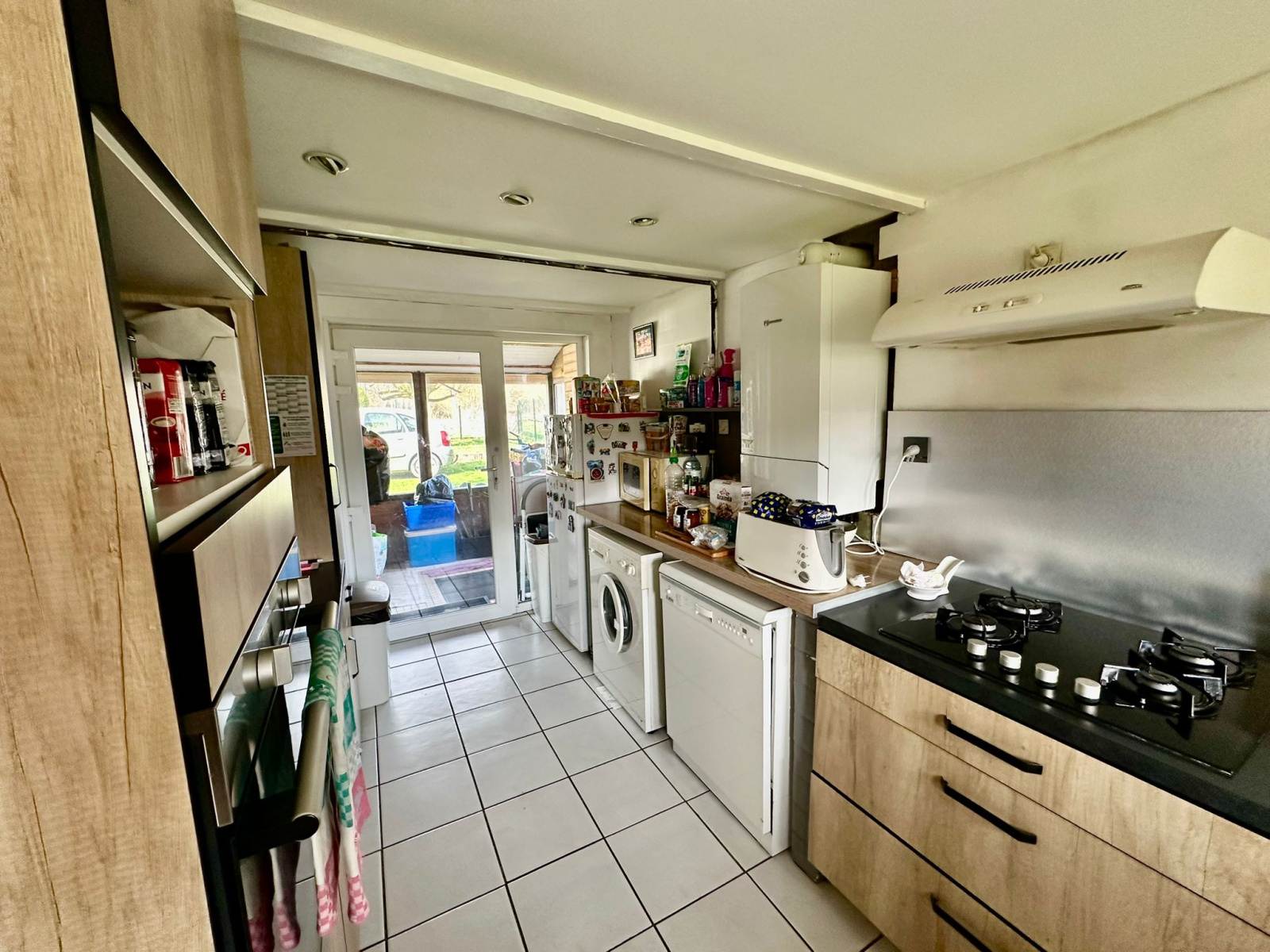 Au rez-de-chaussée : entrée, wc, cuisine équipée, véranda.