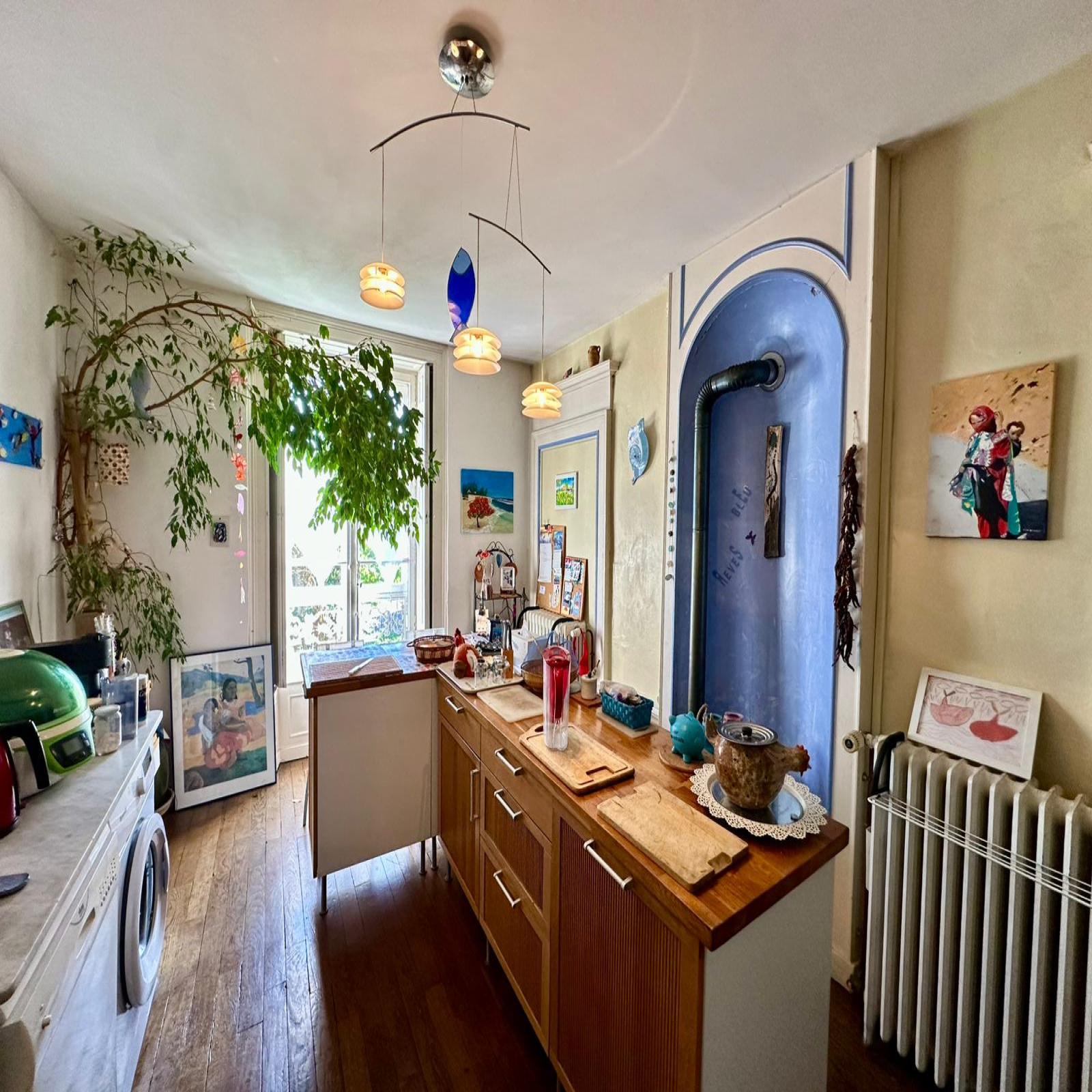 Un appartement de 110 m2 environ (actuellement loué 500 Euros depuis le 17 octobre 2012), 1er étage, composé d'un séjour (22 m2 env), un bureau, cuisine (16 m2 env), deux chambres (20 et 13,5 m2 env), salle de bains (5 m2 env), wc et 2 pièces supplémentaires qui restent à aménager.