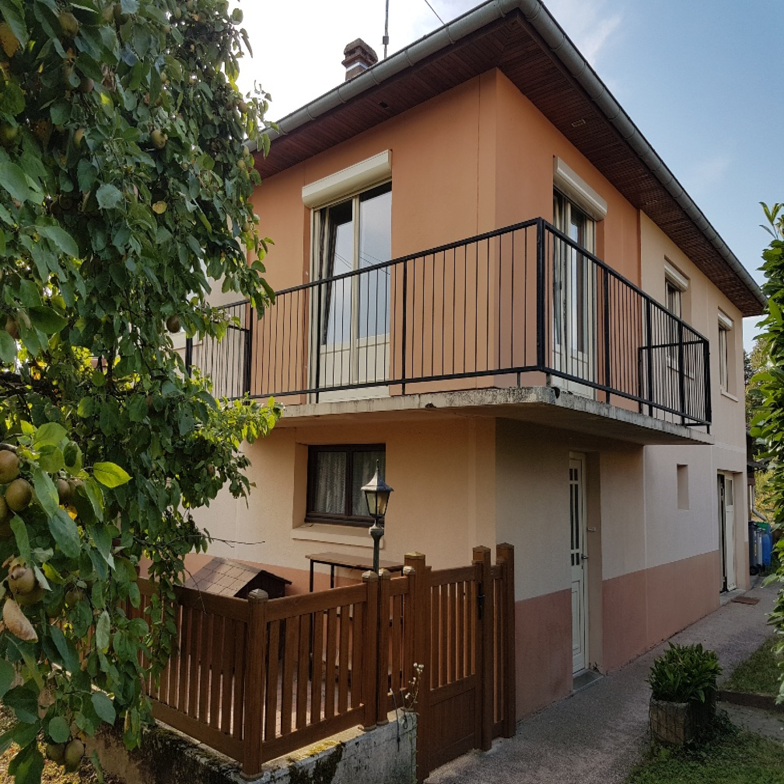 A l'étage : cuisine aménagée, salle à manger / salon (conduit de cheminée), 3 chambres, salle de bains, wc.