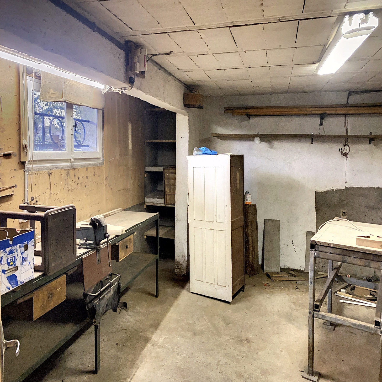 Au rez-de-chaussée : entrée, garage 1 voiture, atelier, cave, chaufferie.