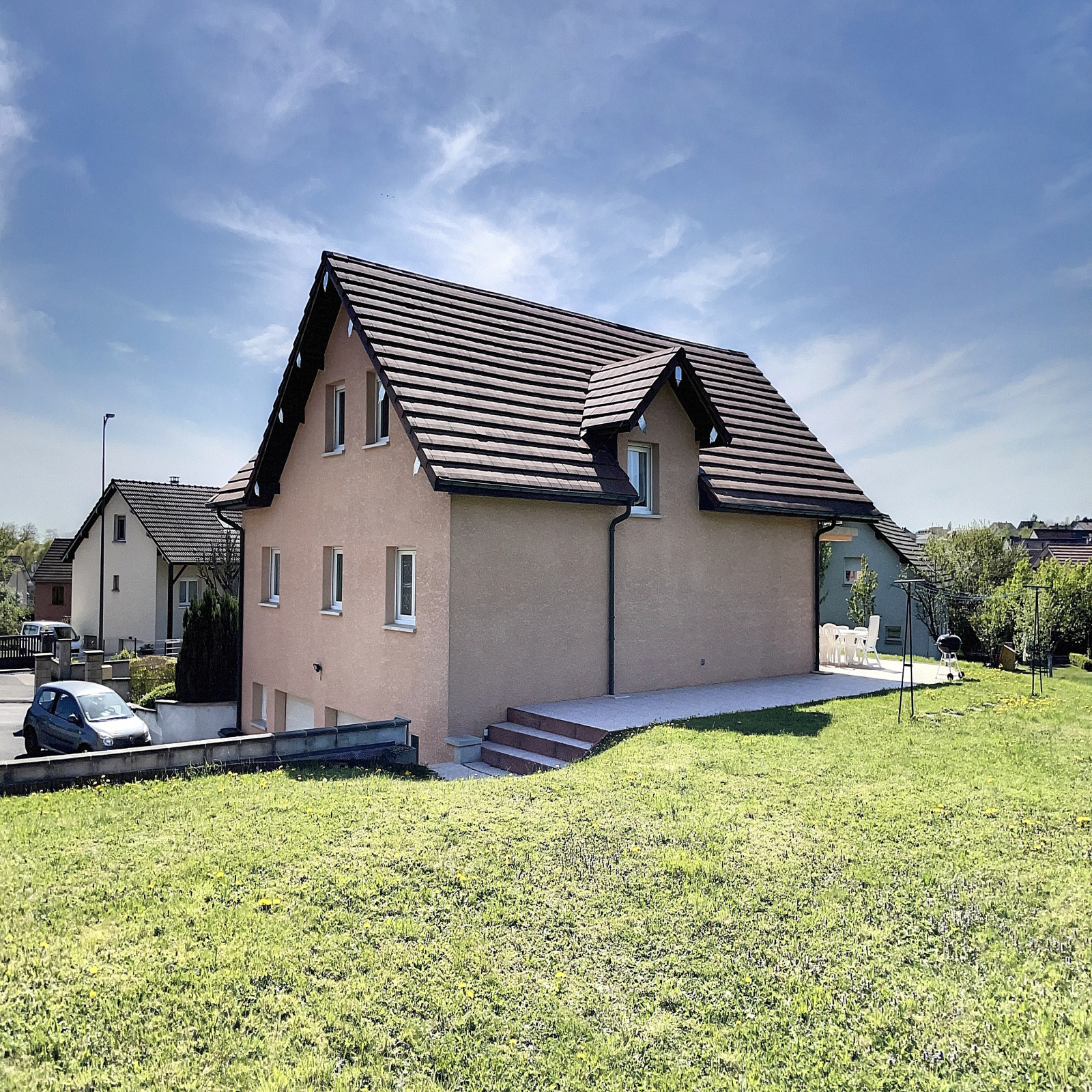 Chauffage central gaz à condensation (au sol au RDC, radiateurs à l'étage)