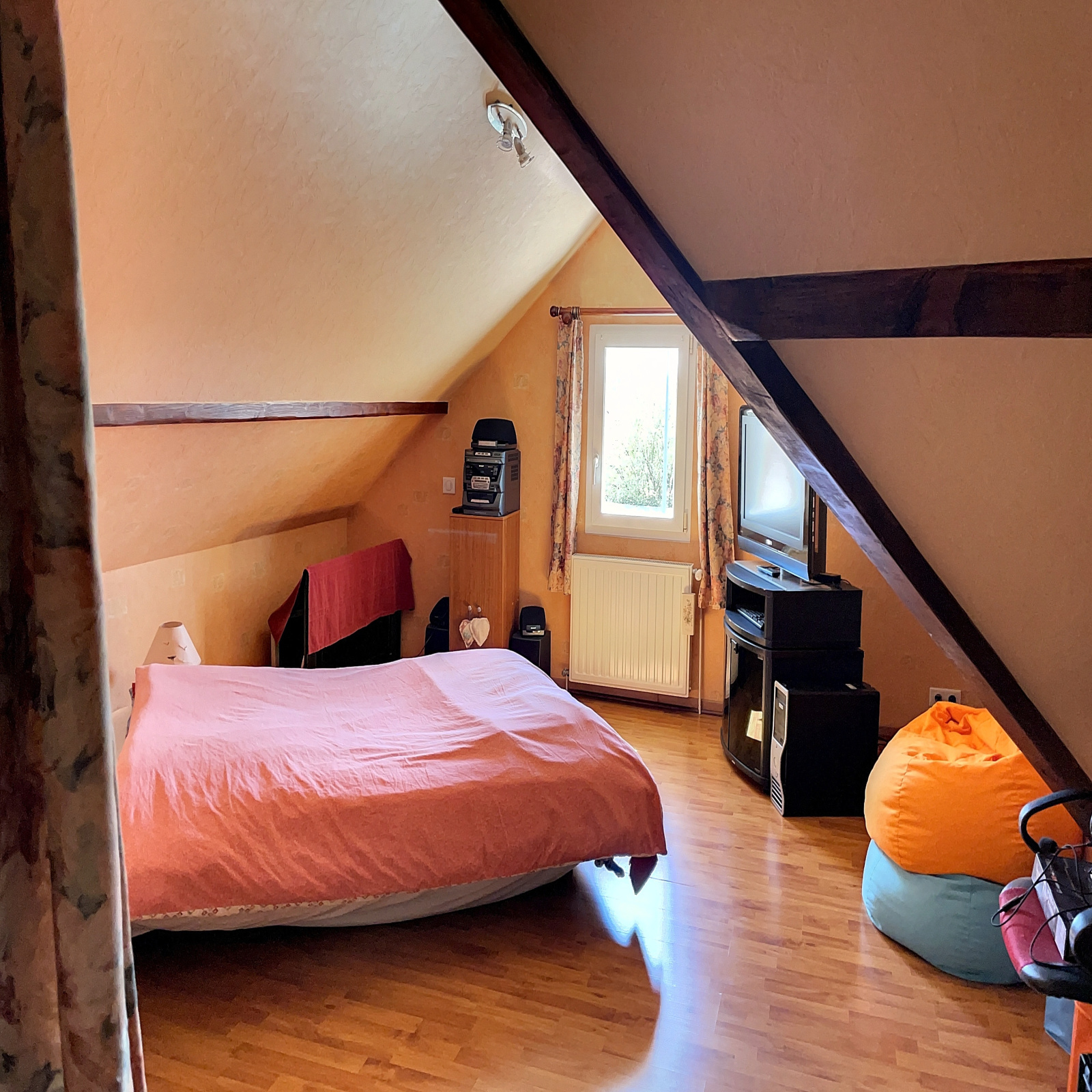 Au niveau de vie : grande entrée, cuisine équipée, vaste salle à manger / salon, une belle chambre, salle d'eau, wc.
