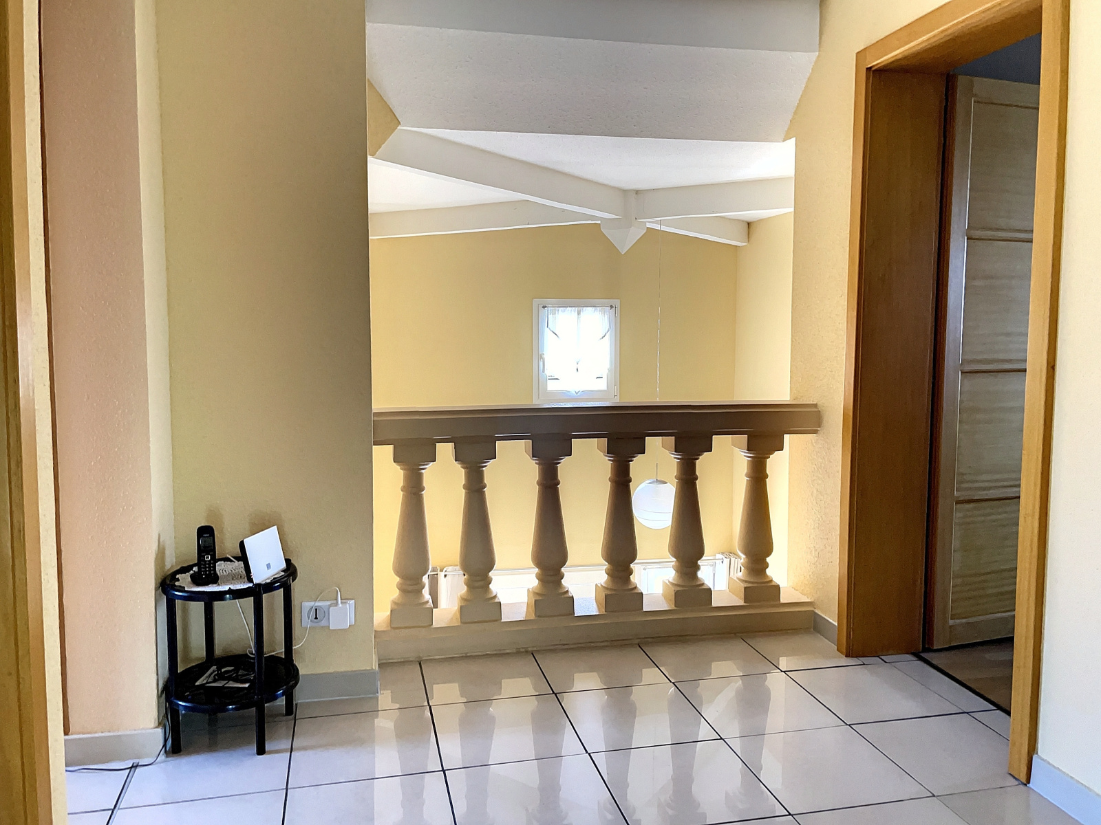 A l'étage : grand dégagement, mezzanine avec accès balcon, 4 belles chambres, salle de bains avec wc.
