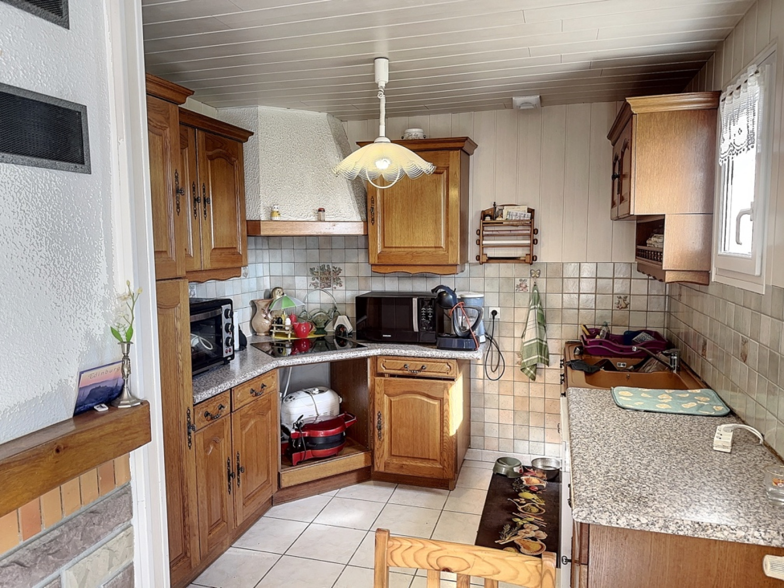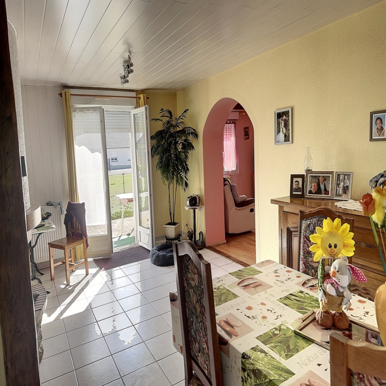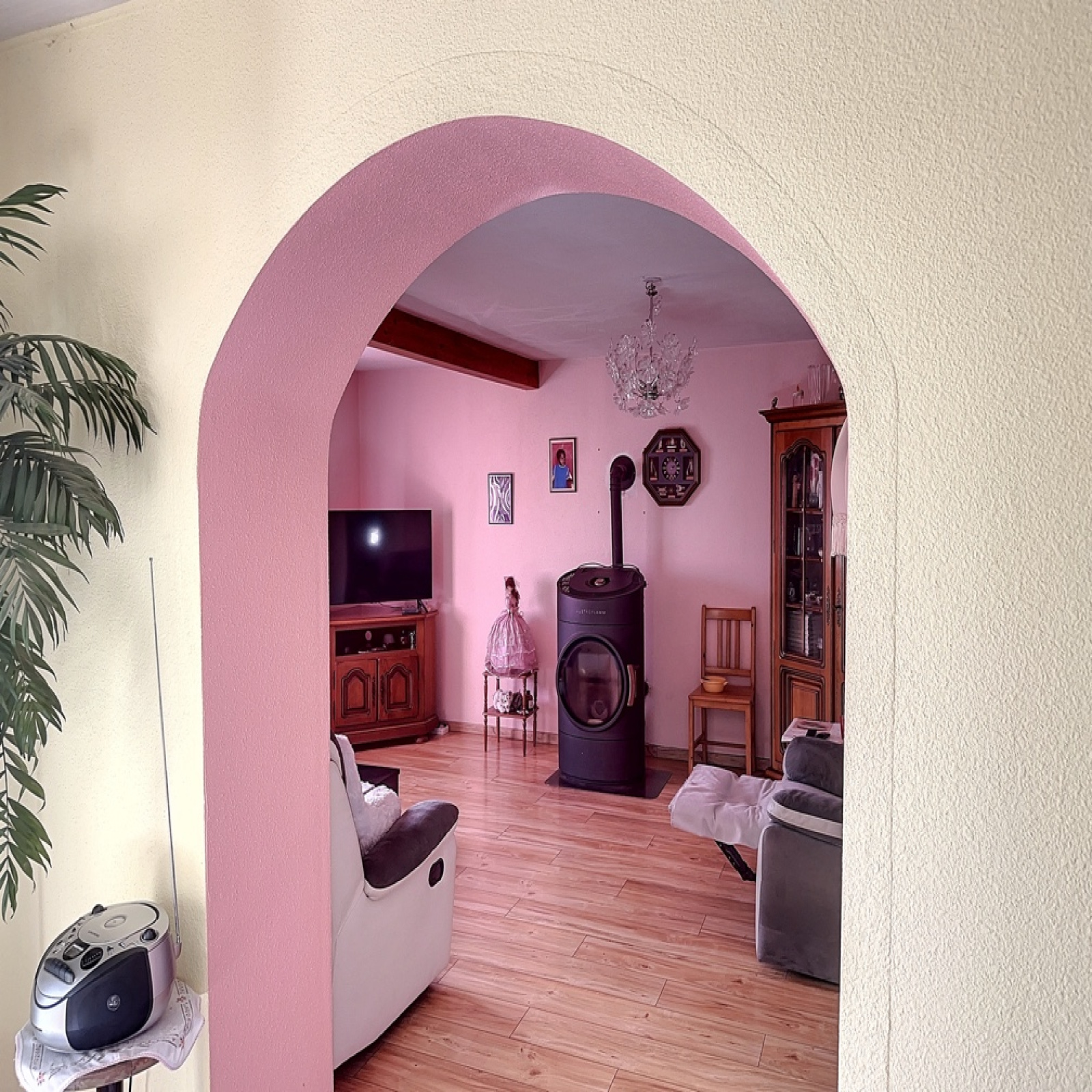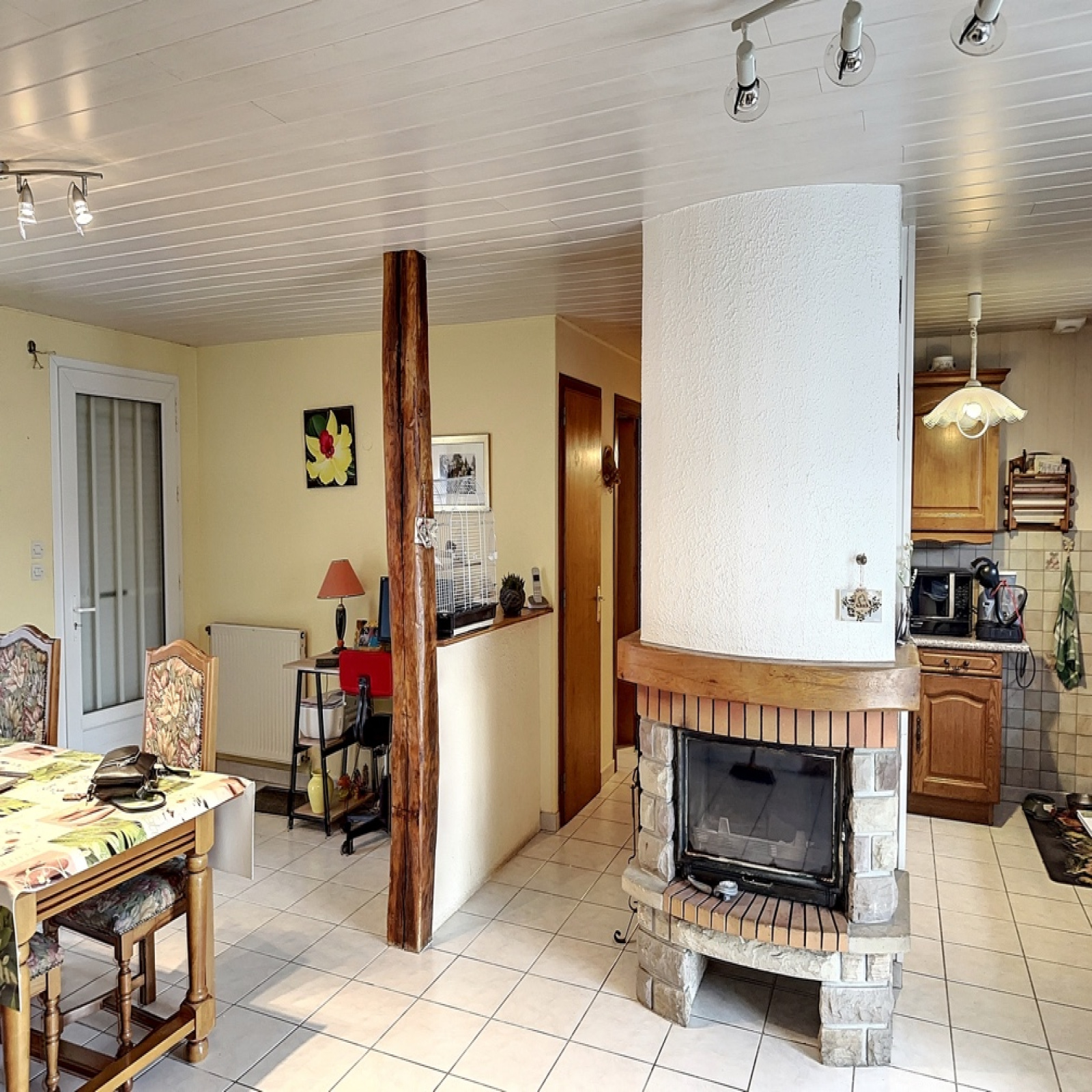 Au niveau de vie : Une entrée / salle à manger avec baies vitrées et cheminée insert bois, cuisine équipée, salon / séjour avec un poêle à pellet, 3 chambres ( 14m², 9m² et 8,7m²), salle d'eau, wc.