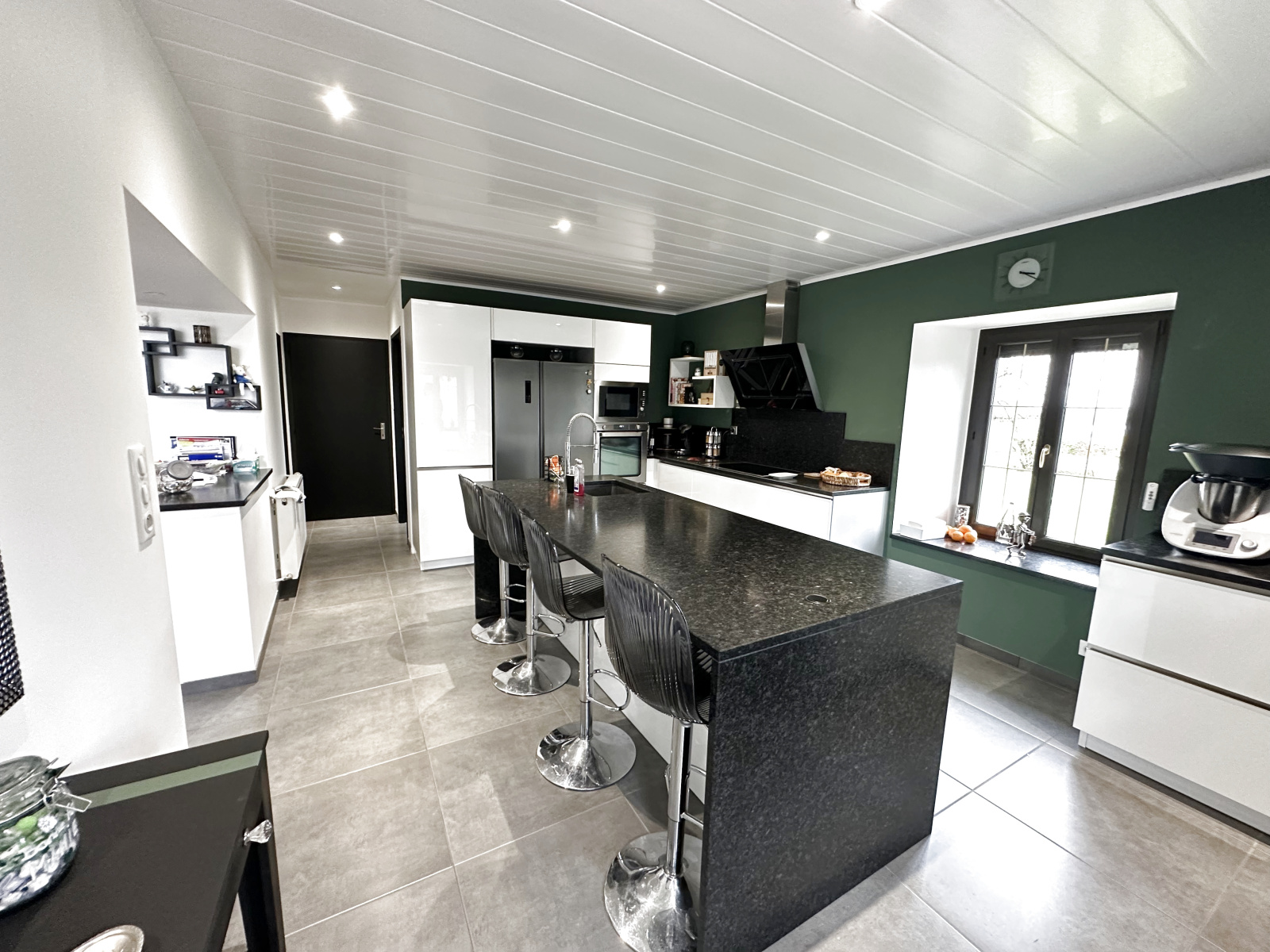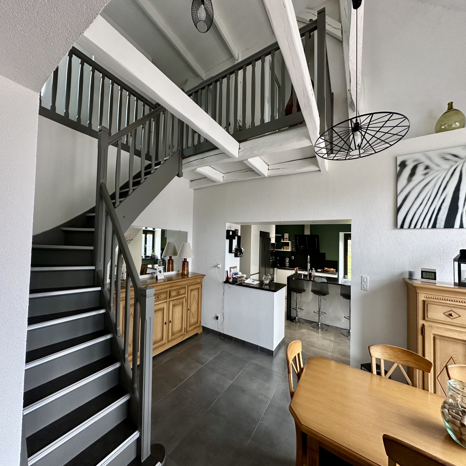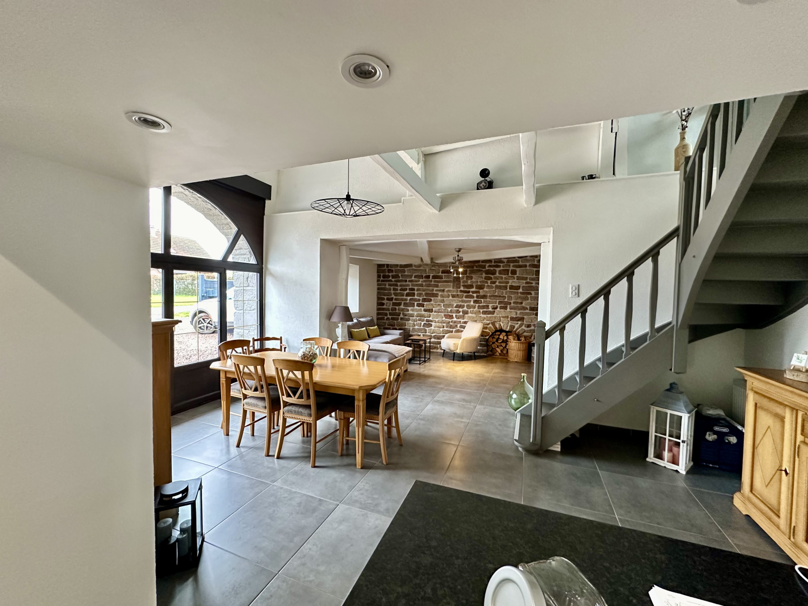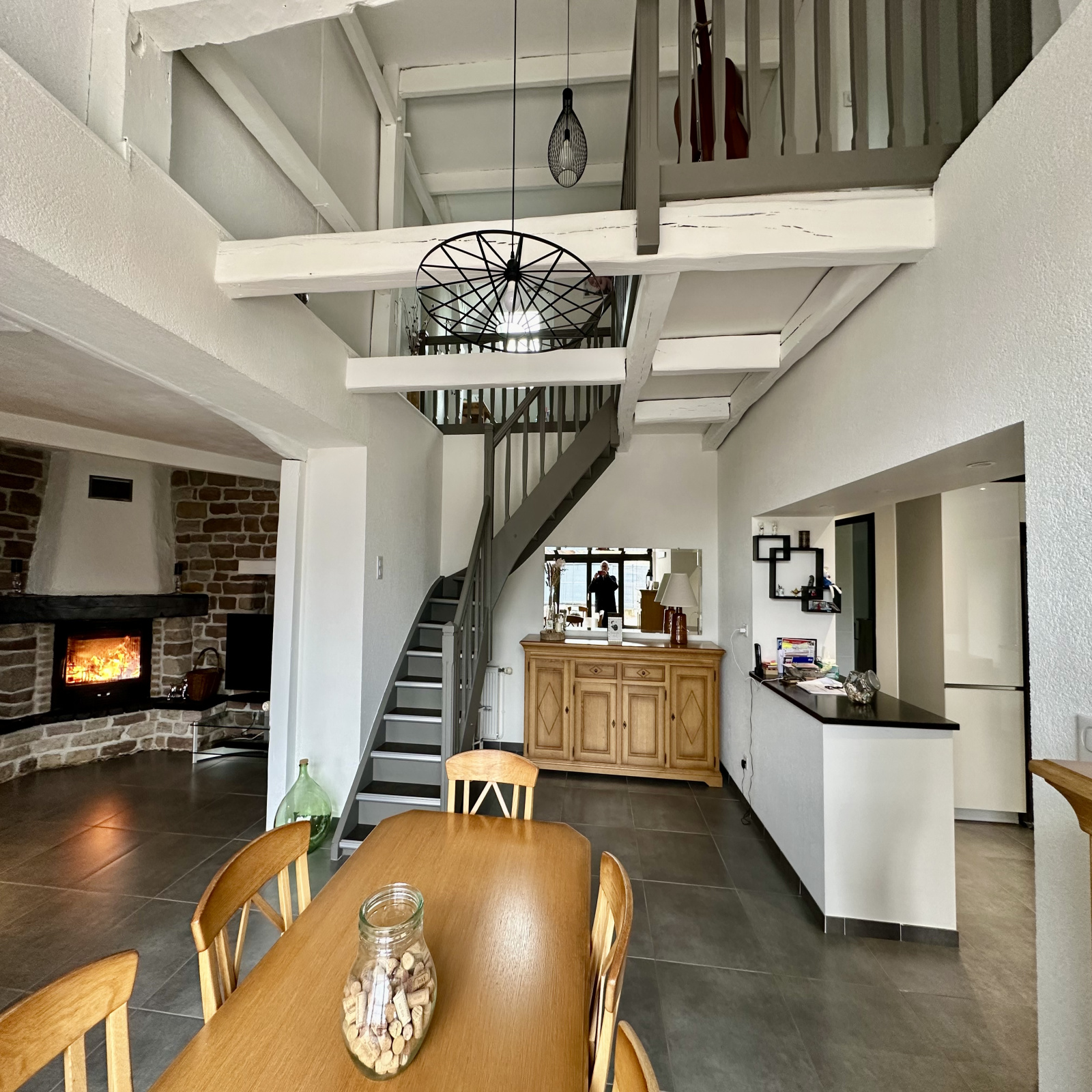 Solène est heureuse de vous présenter cette ancienne ferme joliment rénovée de 118 m² env, mitoyenne par un côté, sur son terrain clos et arboré de 989 m2, elle comprend :
