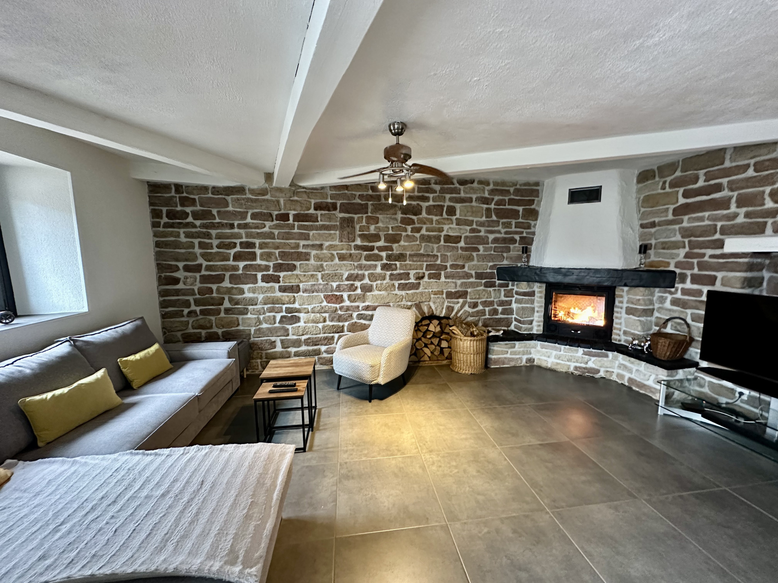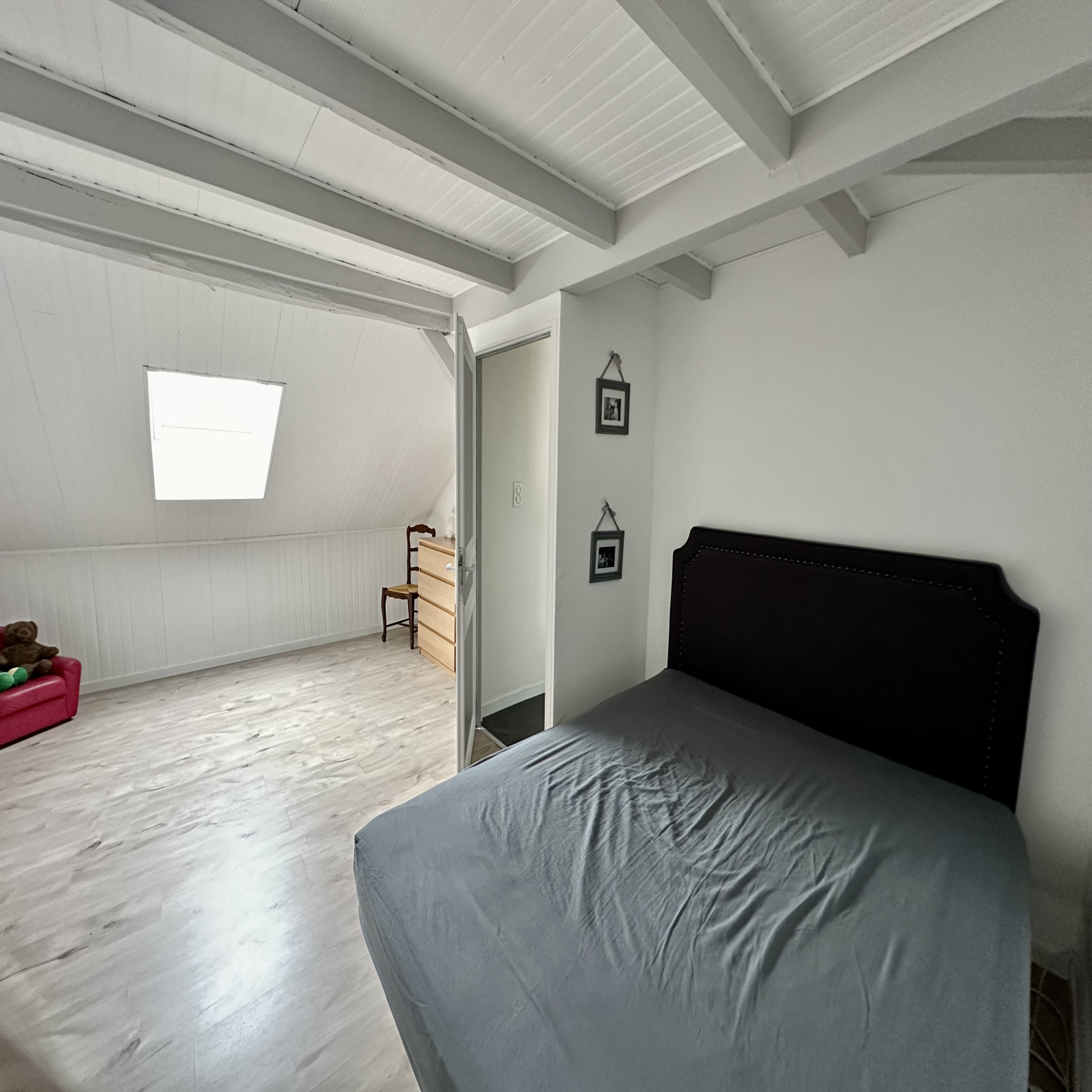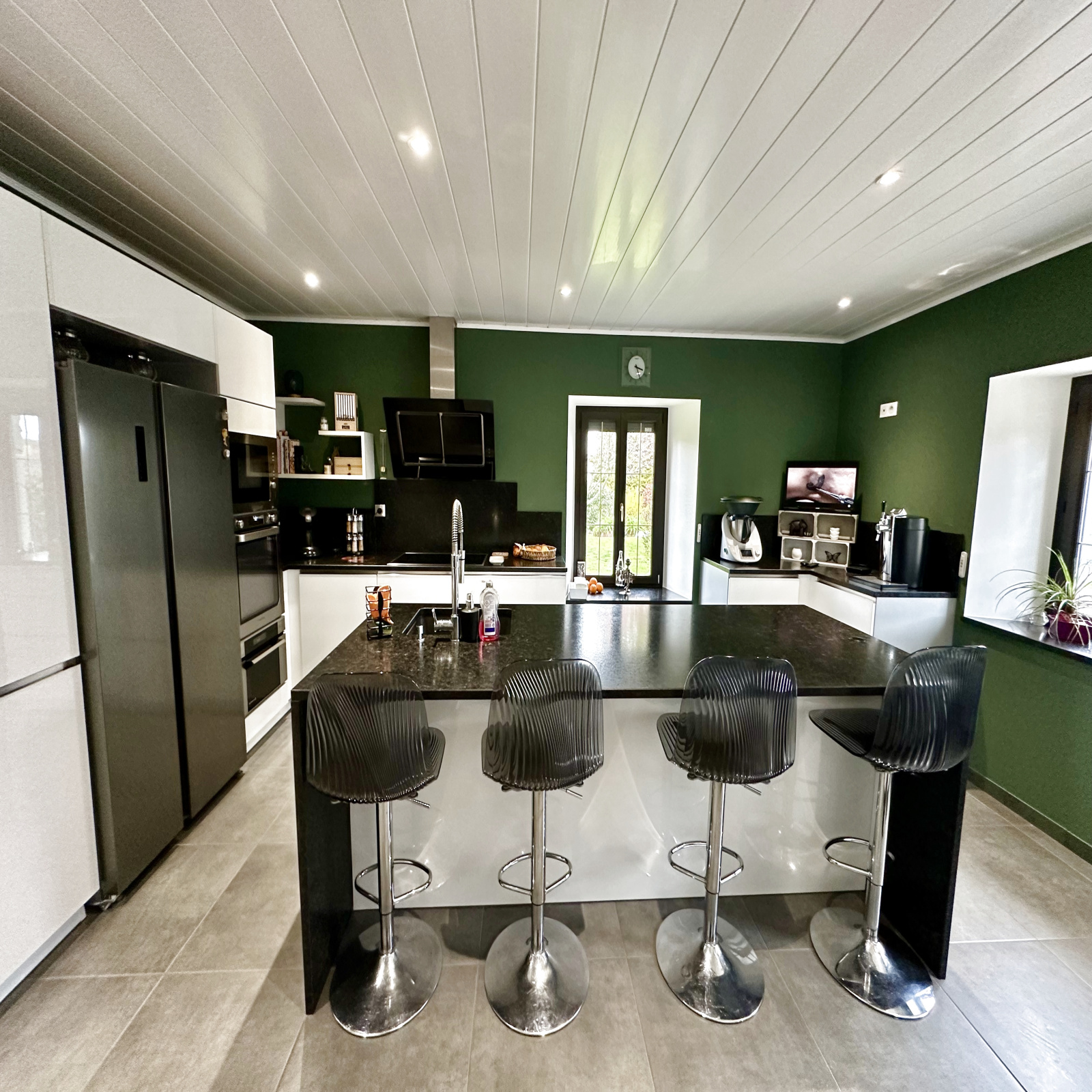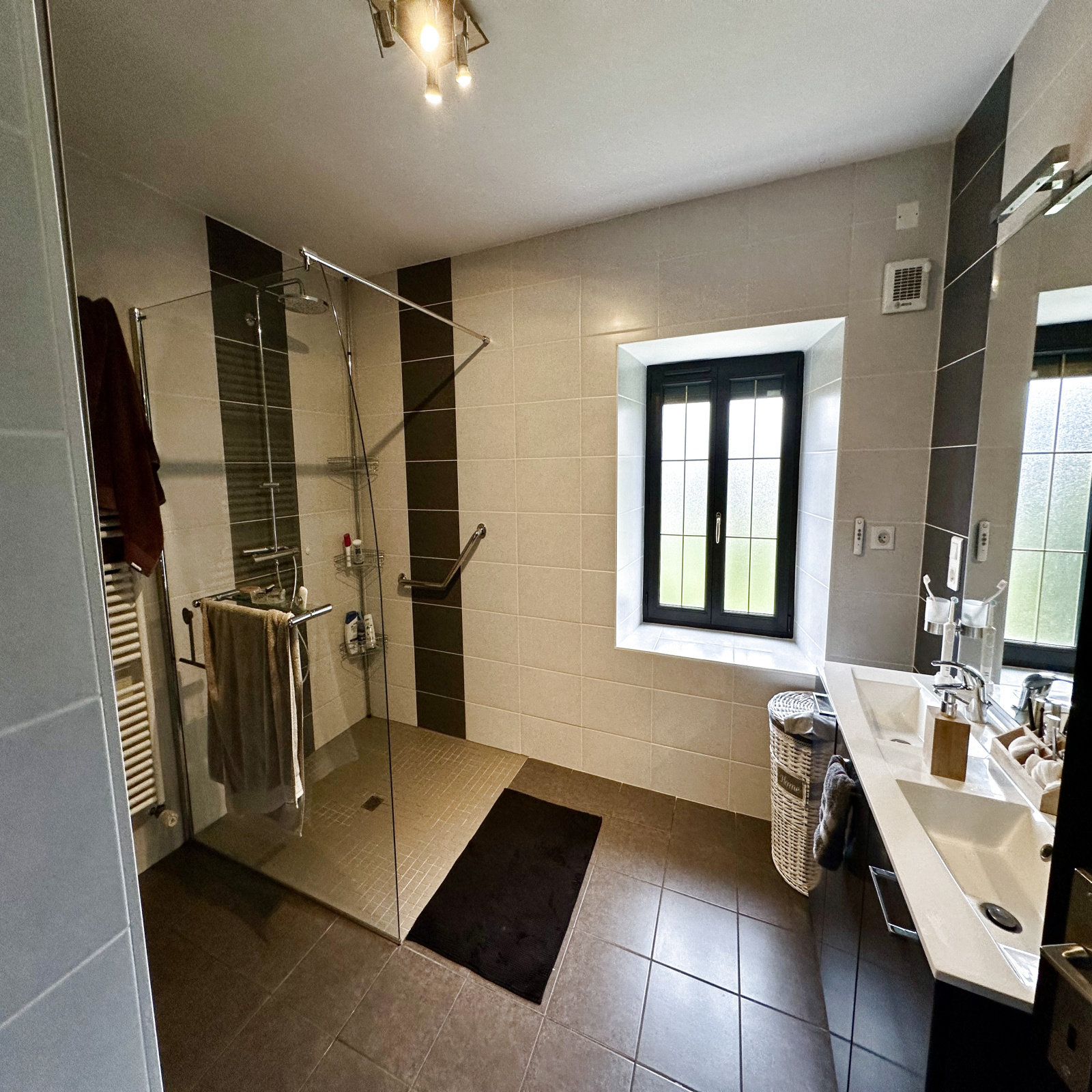 Solène est heureuse de vous présenter cette ancienne ferme joliment rénovée de 118 m² env, mitoyenne par un côté, sur son terrain clos et arboré de 989 m2, elle comprend :