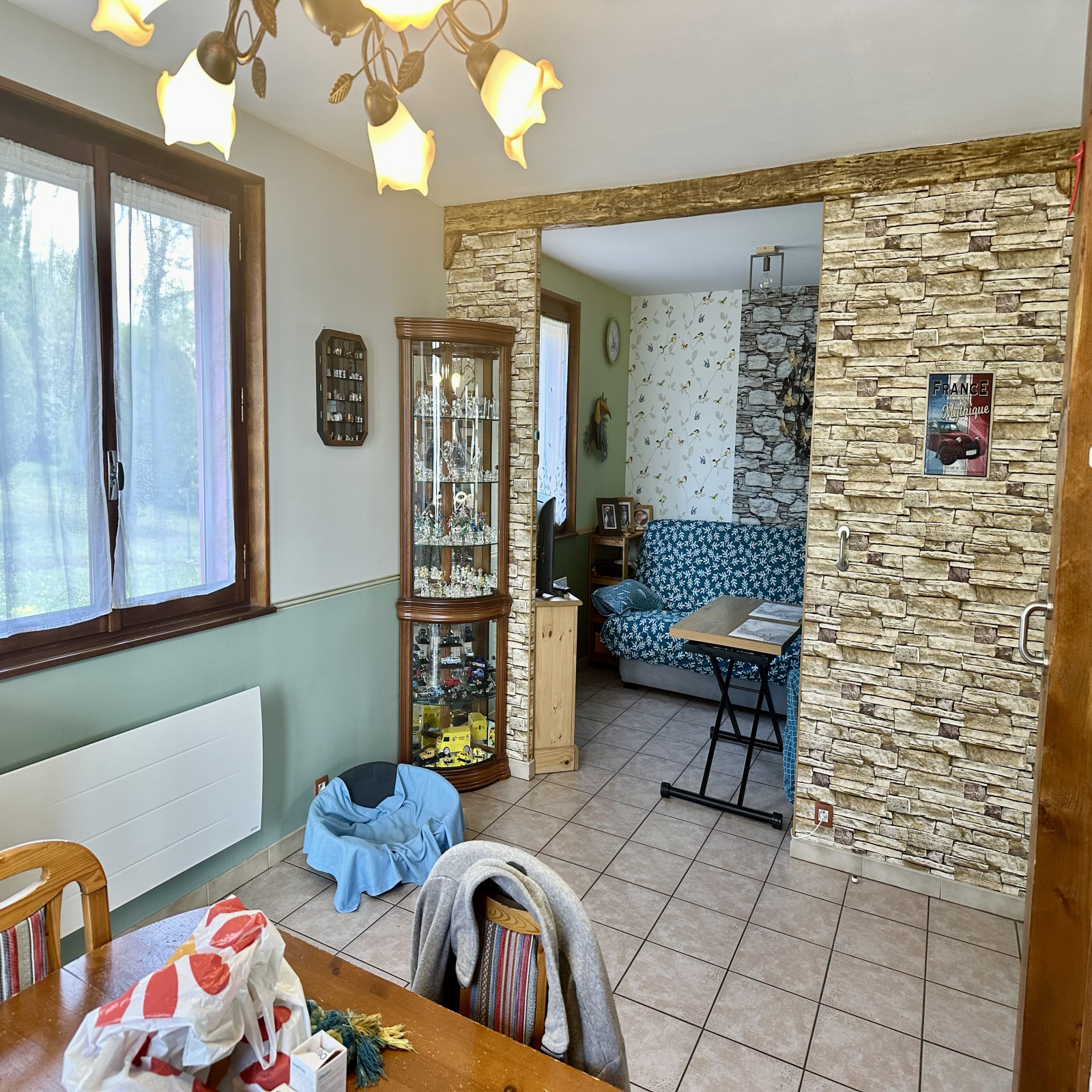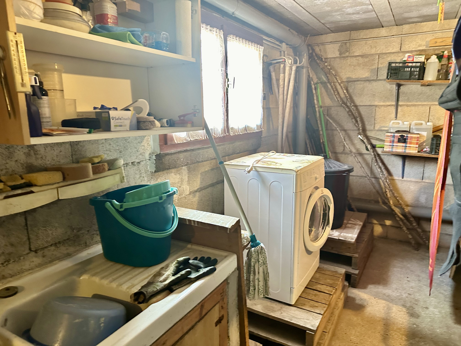Sous sol : cave, garage avec coin buanderie.