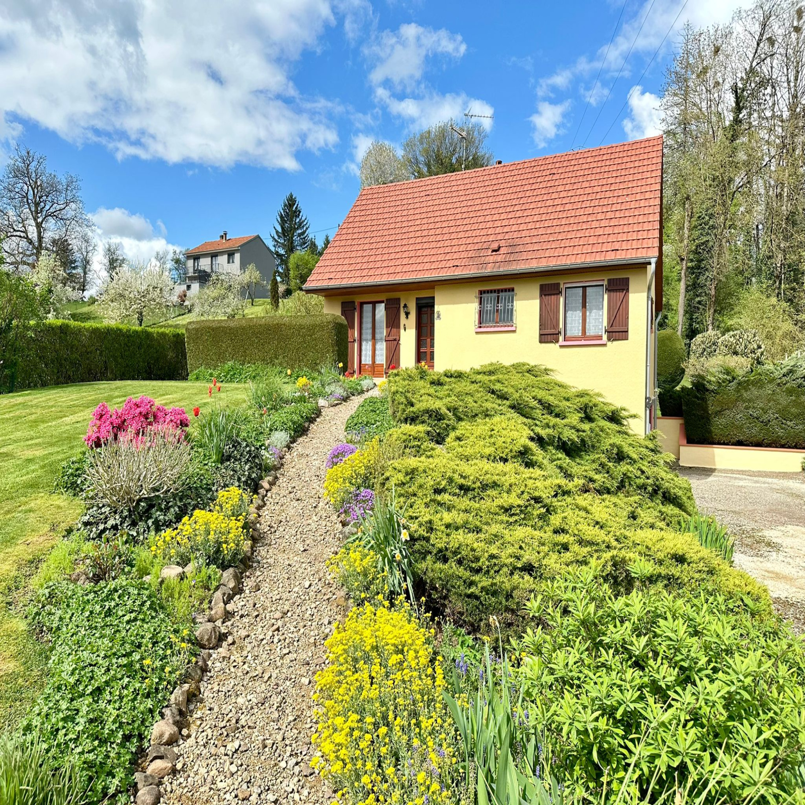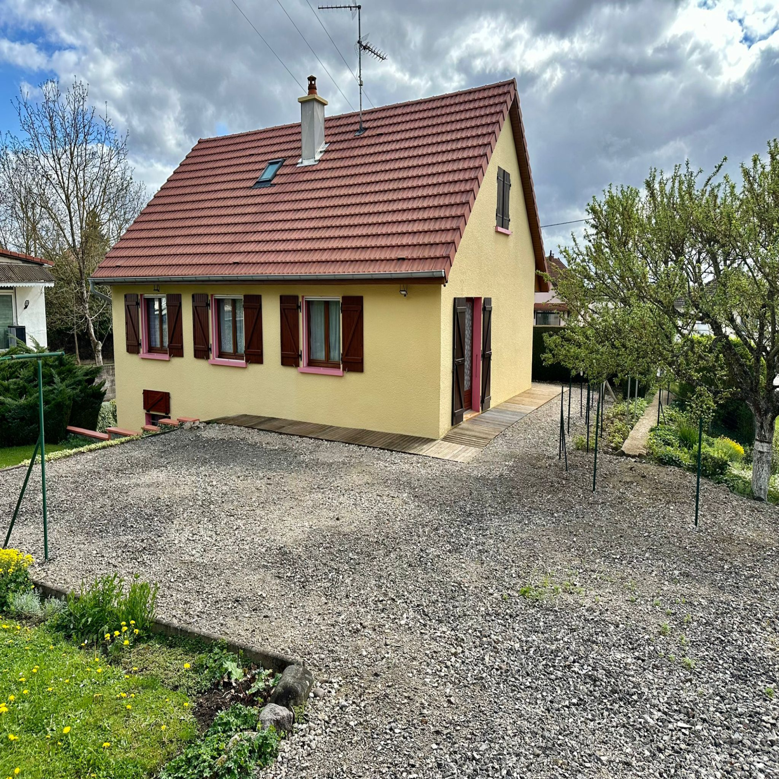 Solène est heureuse de vous présenter en exclusivité cette maison semi plain-pied, sur son terrain clos et arboré de 1000 m2, elle comprend :